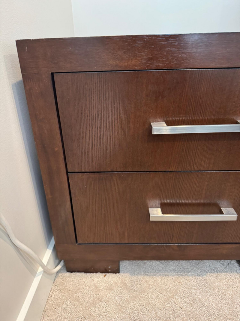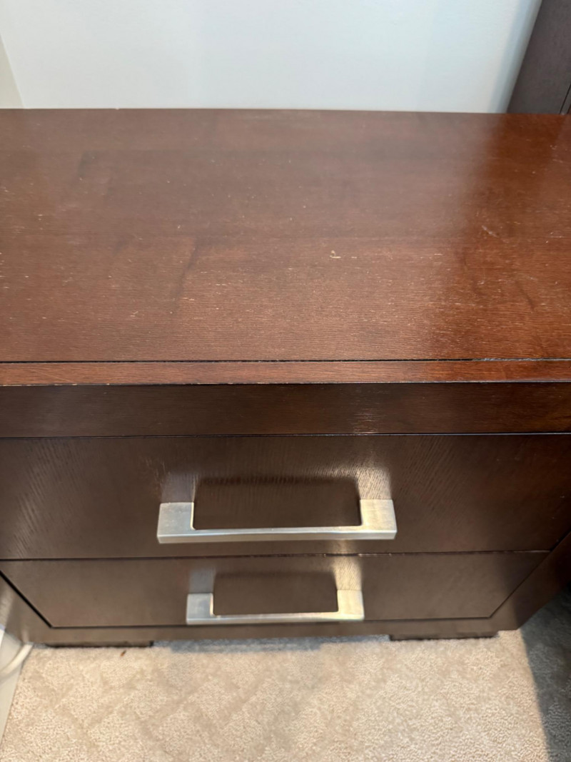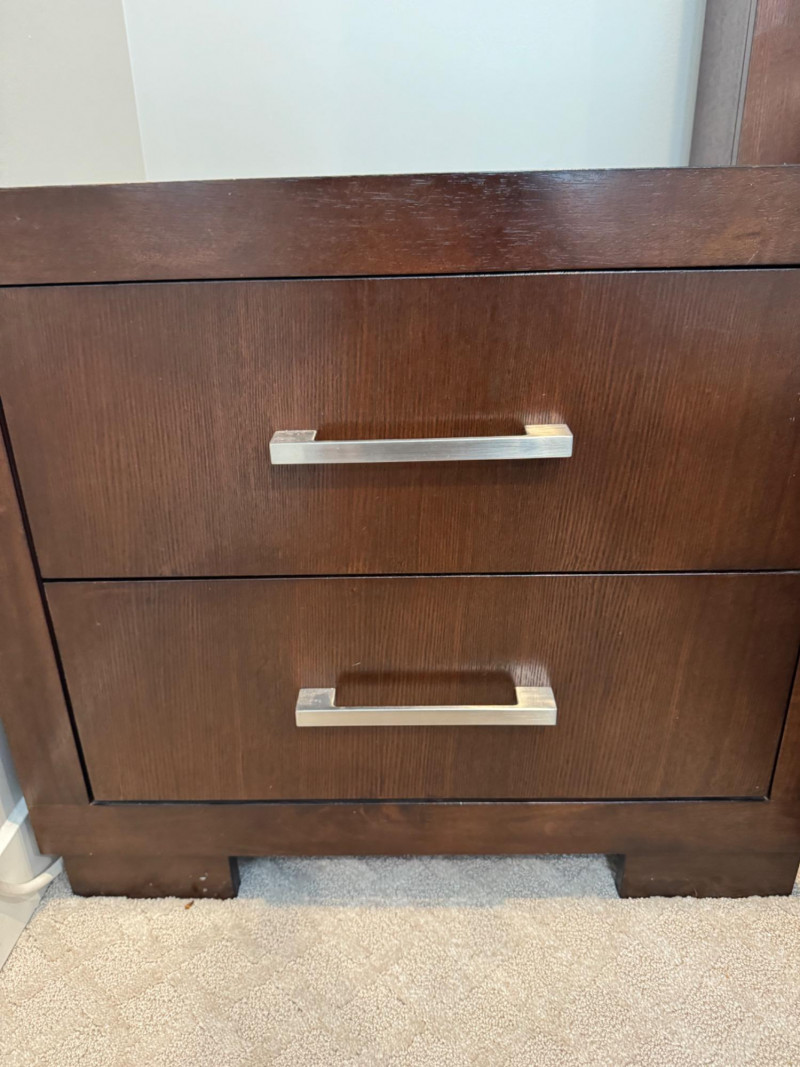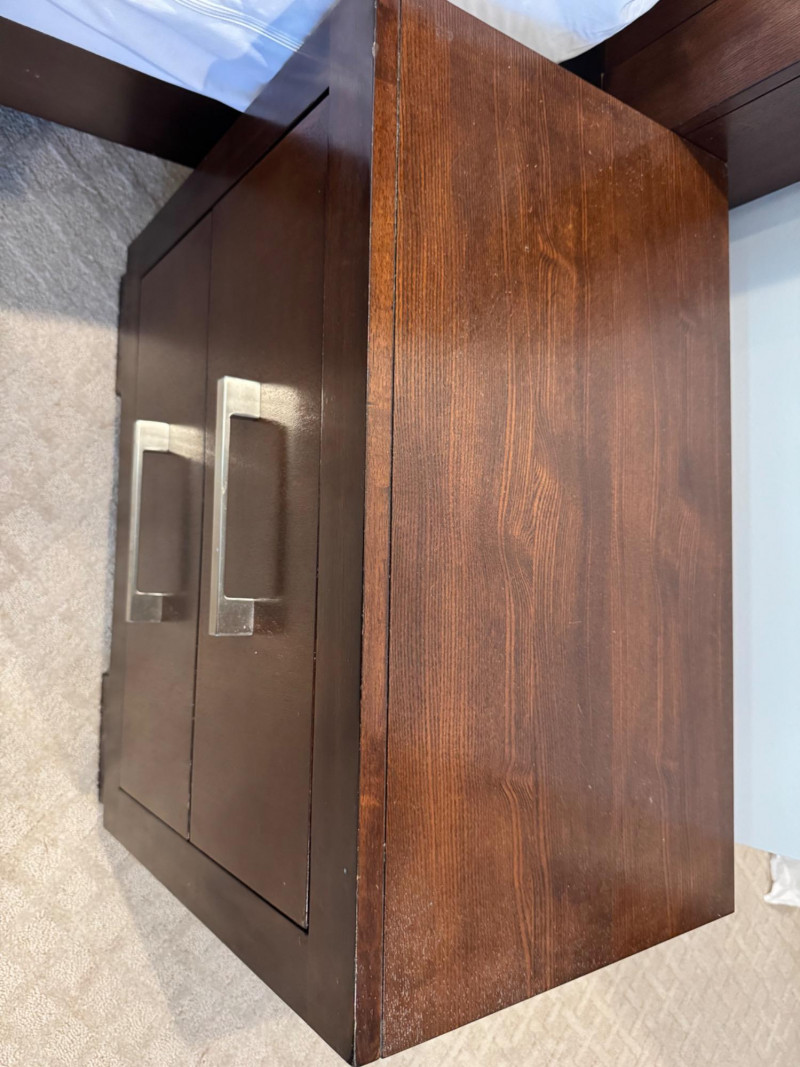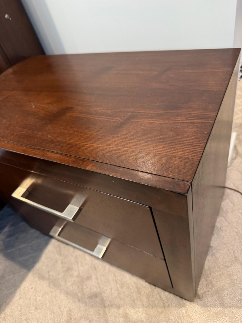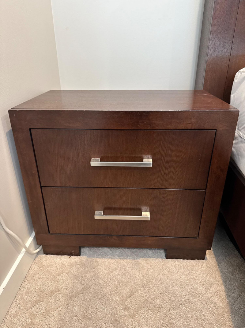 Pair of Coaster 2-Drawer Side Tables – Rich Cappuccino Finish. Dimensions (each): 26" wide 15" deep 23" tall 🚚 Auction Pickup Reminder: