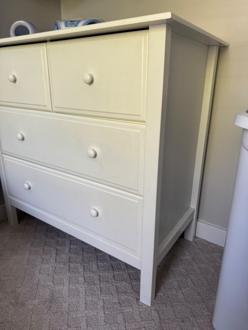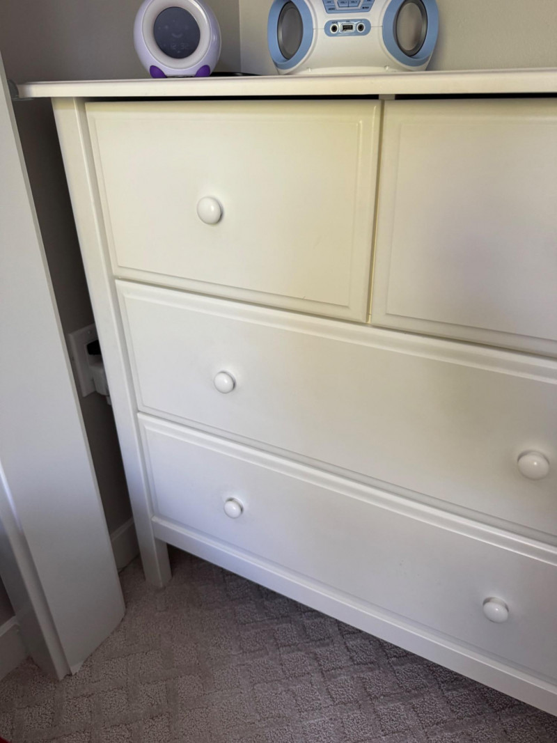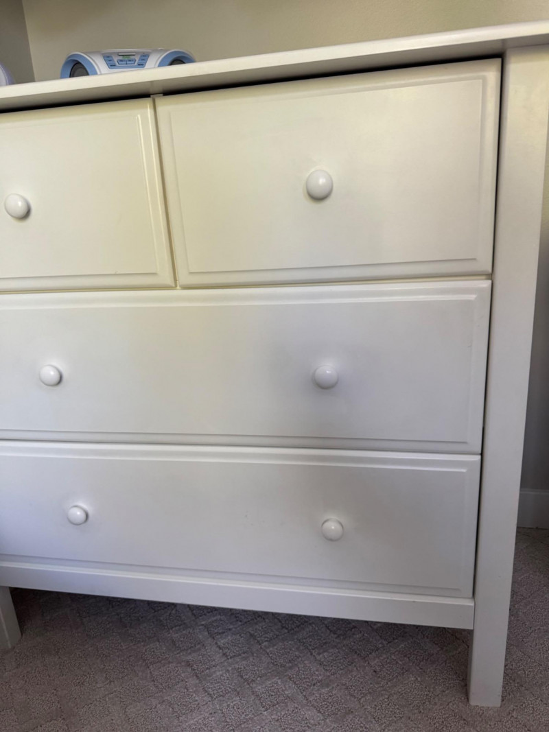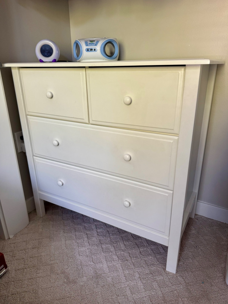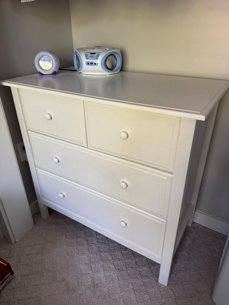 Kids White 4-Drawer Dresser – Clean-Lined & Compact #1. Dimensions: 35" wide 19" deep 33" tall Disclaimer: Surface wear and discoloration visible on the top. See photos for condition. Bidding on this lot is an agreement that: (1.) You will have at least 2 capable, able bodied persons to lift and load at a minimum. (2.) You will bring a hand truck and/or any other tools needed to remove this item. If these steps are not followed your item will be forfeit and no refund given. 🚚 Auction Pickup Reminder: