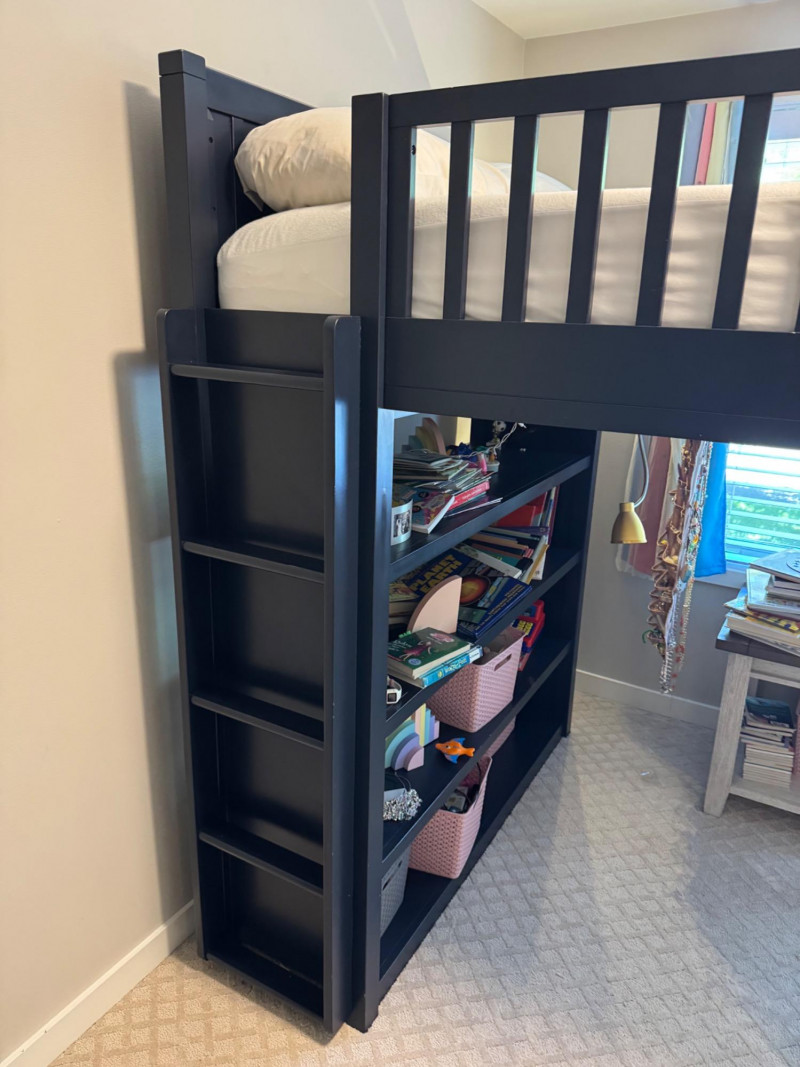 Camp Full Size Dark Blue Loft Bed w/ Ladder & Mattress Included. Dimensions: Bidding on this lot is an agreement that: (1.) You will have at least 2 capable, able bodied persons to lift and load at a minimum. (2.) You will bring a hand truck and/or any other tools needed to remove this item. If these steps are not followed your item will be forfeit and no refund given. 🚚 Auction Pickup Reminder: