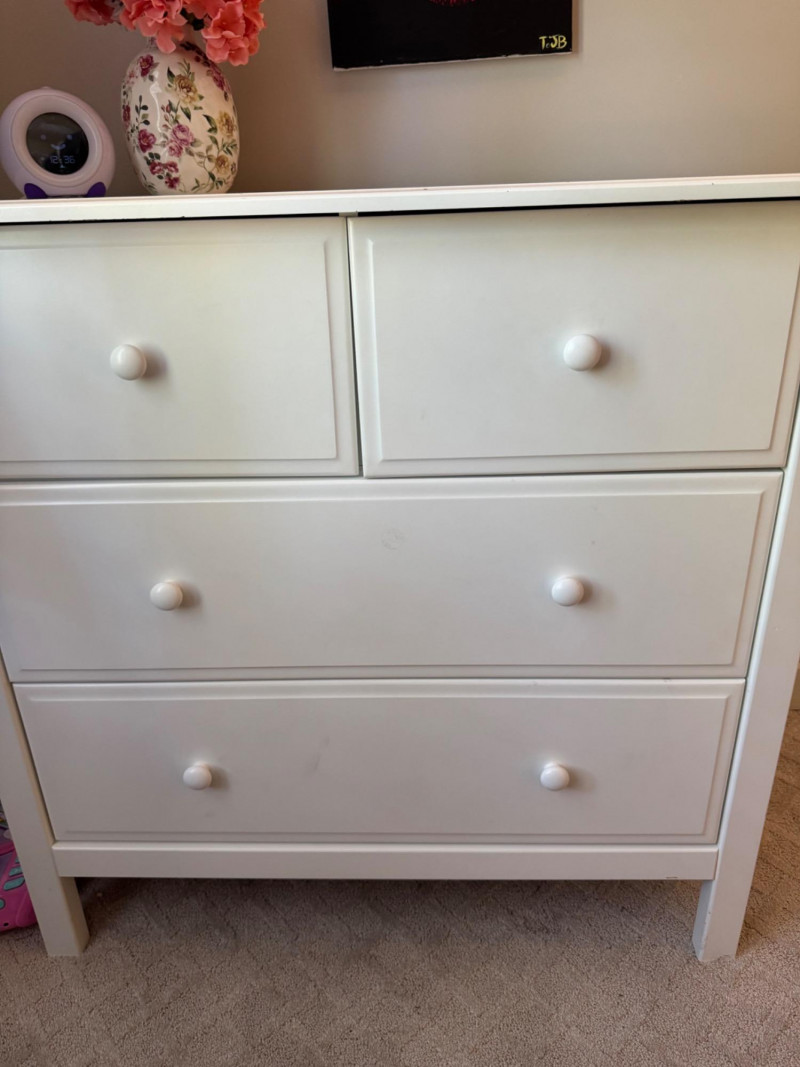 Kids White 4-Drawer Dresser – Clean-Lined & Compact #2. Dimensions: 35" wide 19" deep 33" tall 🚚 Auction Pickup Reminder: