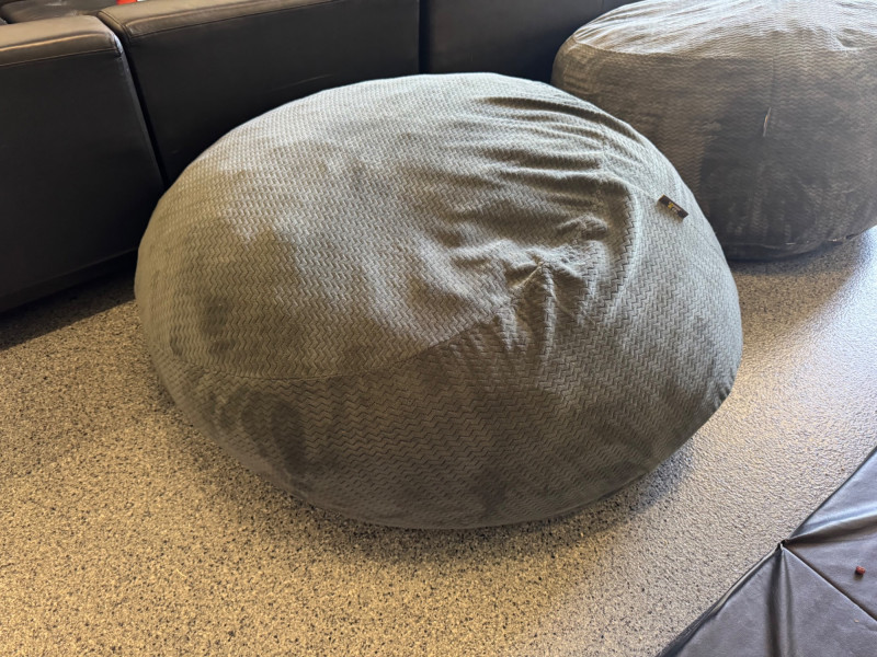 Lounge & Co. Huge Grey Beanbag Chair #1. Dimensions: Height: 29 inches tall Diameter: 48 inches 🚚 Auction Pickup Reminder: