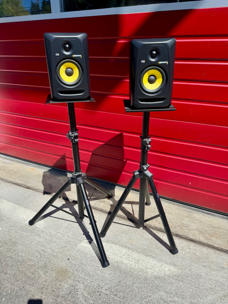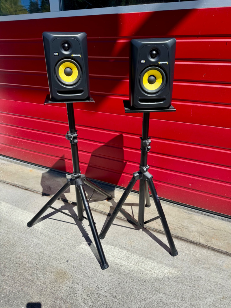 Pair of KRK ROKIT 5 Speakers & Pyle Tripod Stands. Max Height: 46 inches tall (with speakers). 🚚 Auction Pickup Reminder: