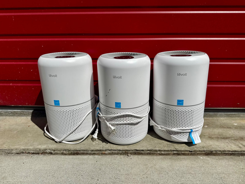 Set of 3 Levoit Core 300 True HEPA Air Purifiers. Dimensions: 14 inches tall (each). 🚚 Auction Pickup Reminder: