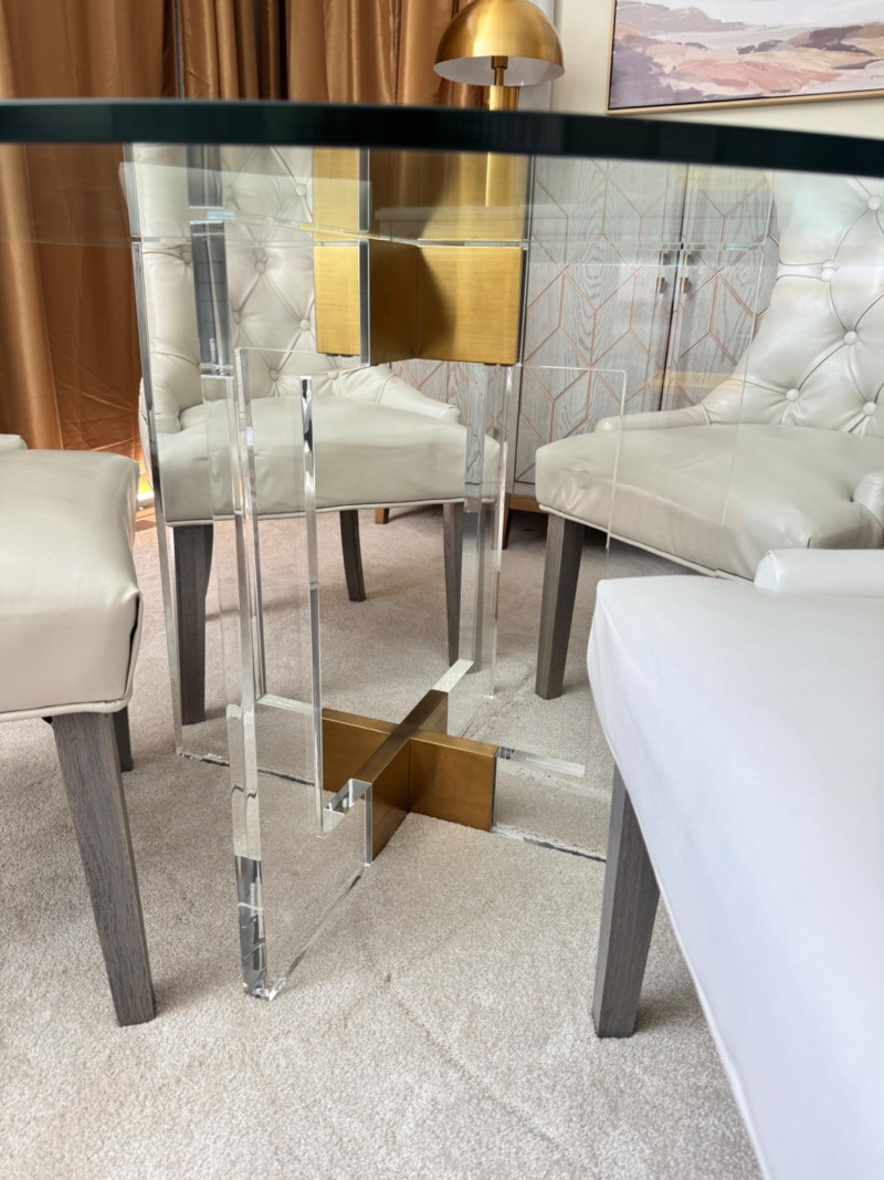 Lot # 58 - Glass Round Dining Table w/ 4 White Tufted Vinyl Chairs