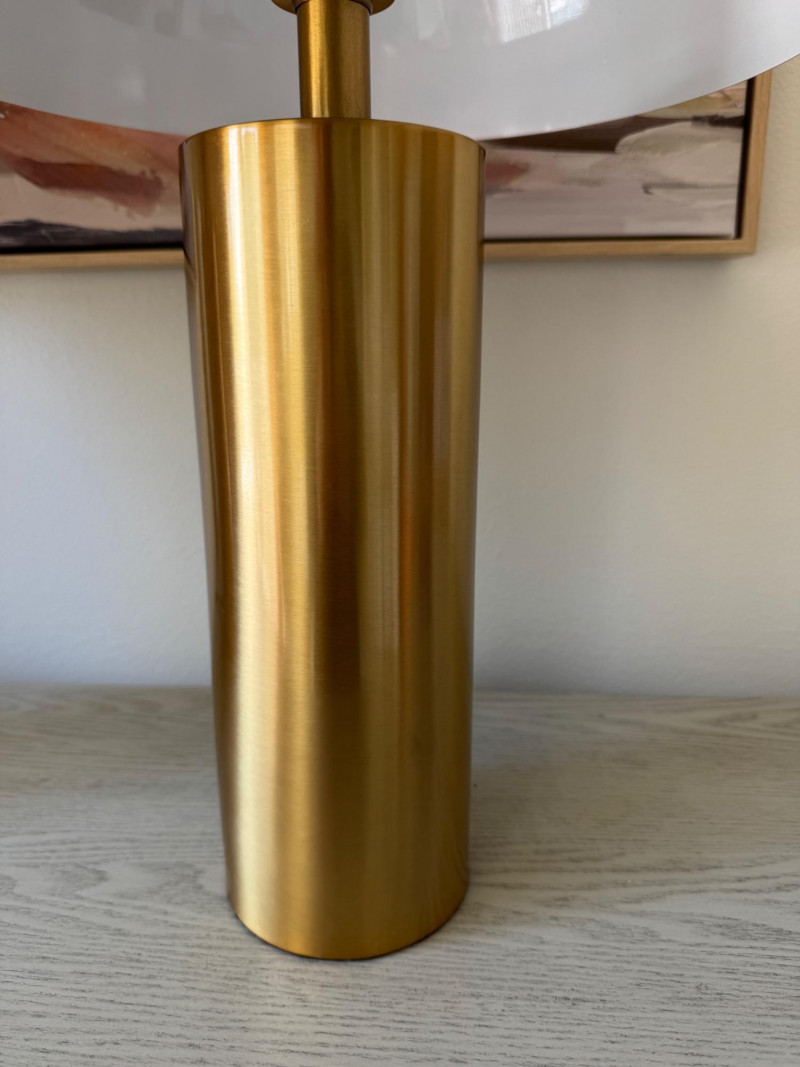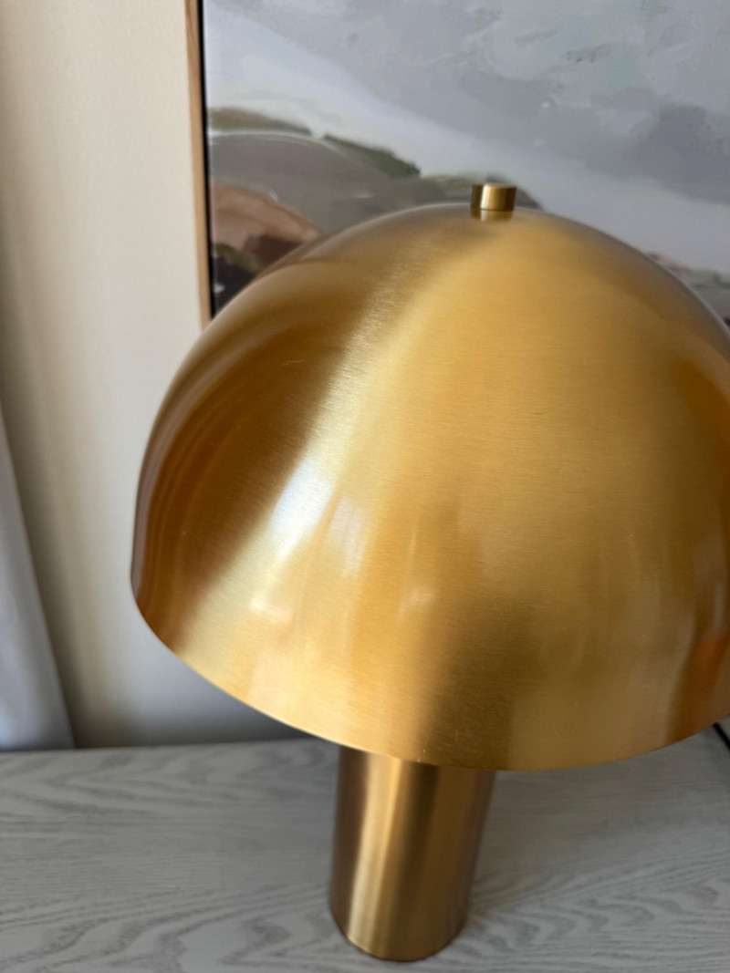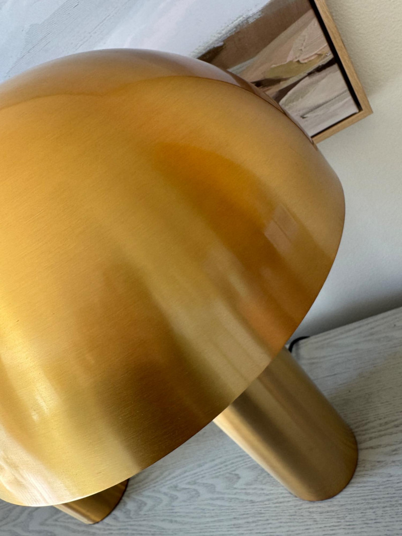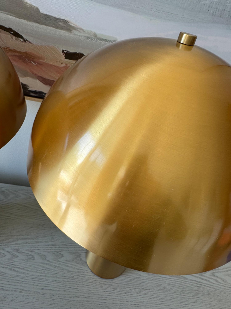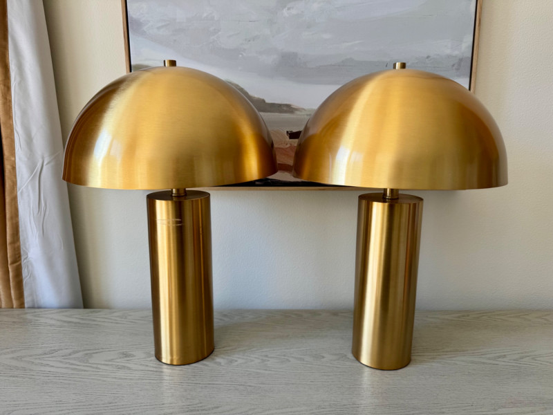 Pair of Gold-Tone Mushroom Table Lamps, Safavieh Iria Style. Dimensions (each): Height: 21" Diameter: 13" Disclaimer: 🚚 Auction Pickup Reminder: