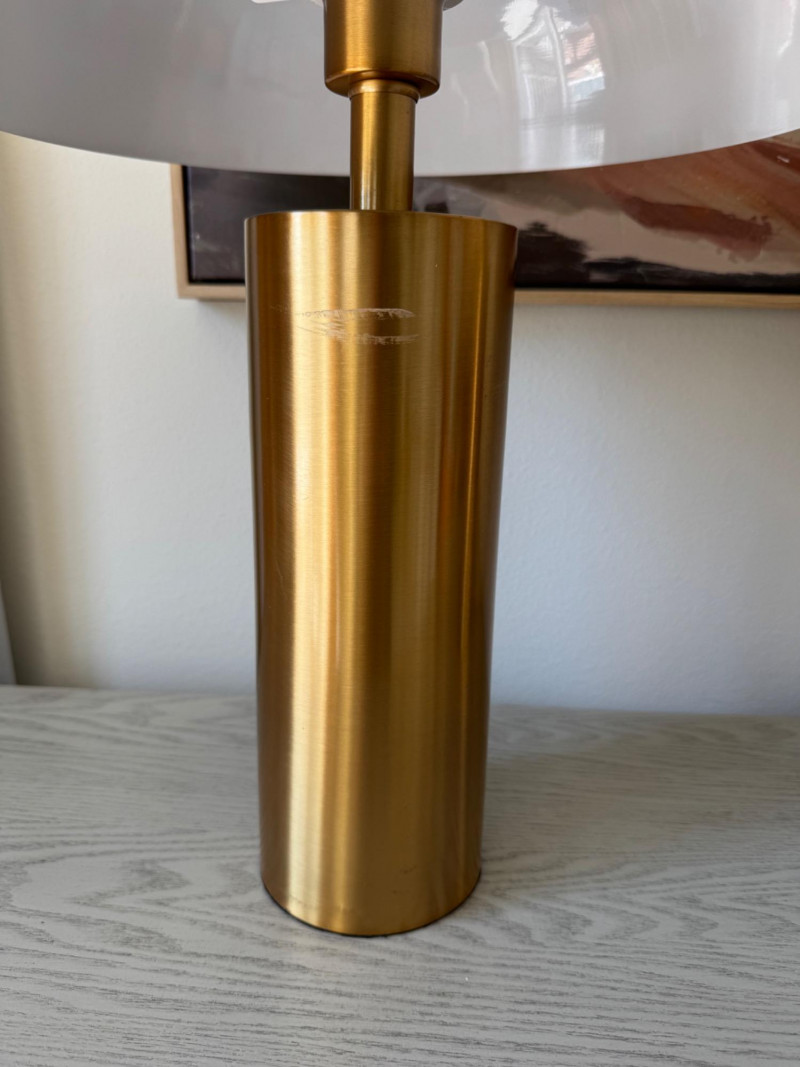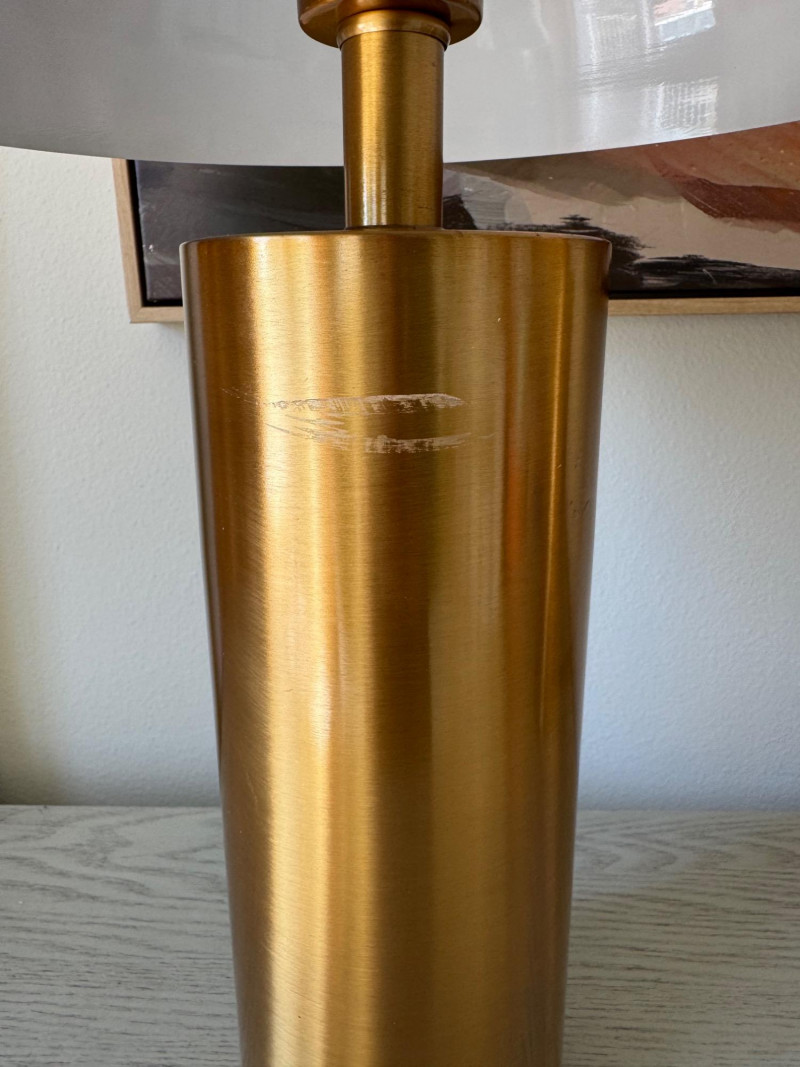 One lamp has a small area of wear/scratch. Style resembles the Safavieh Iria Table Lamp (TBL4319A), but brand is unconfirmed.