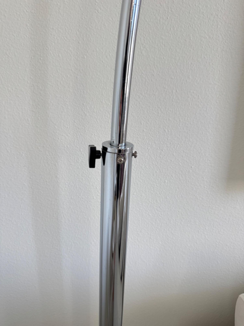 Chrome Arc Floor Lamp w/ Dome-Shaped Shade Marble-Like Base. Dimensions: Width: 63" Height: 74" 🚚 Auction Pickup Reminder: