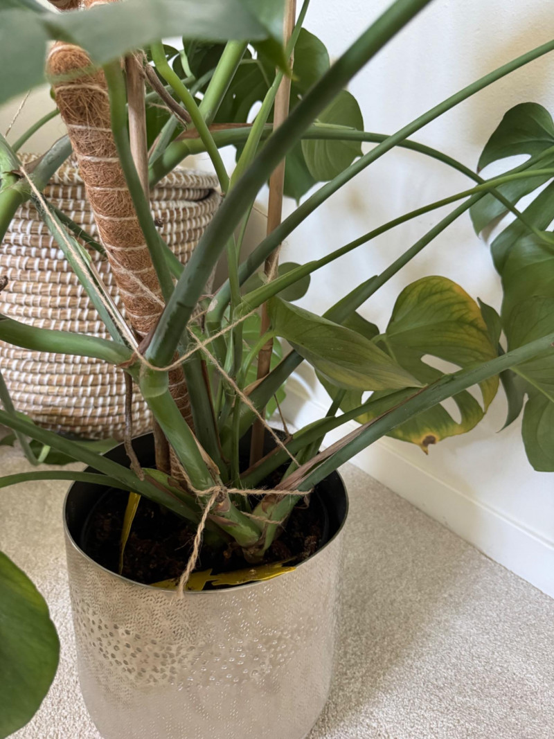 Large Indoor Plant in Silver-Tone Textured Pot. Approx. 55" Tall 🚚 Auction Pickup Reminder: