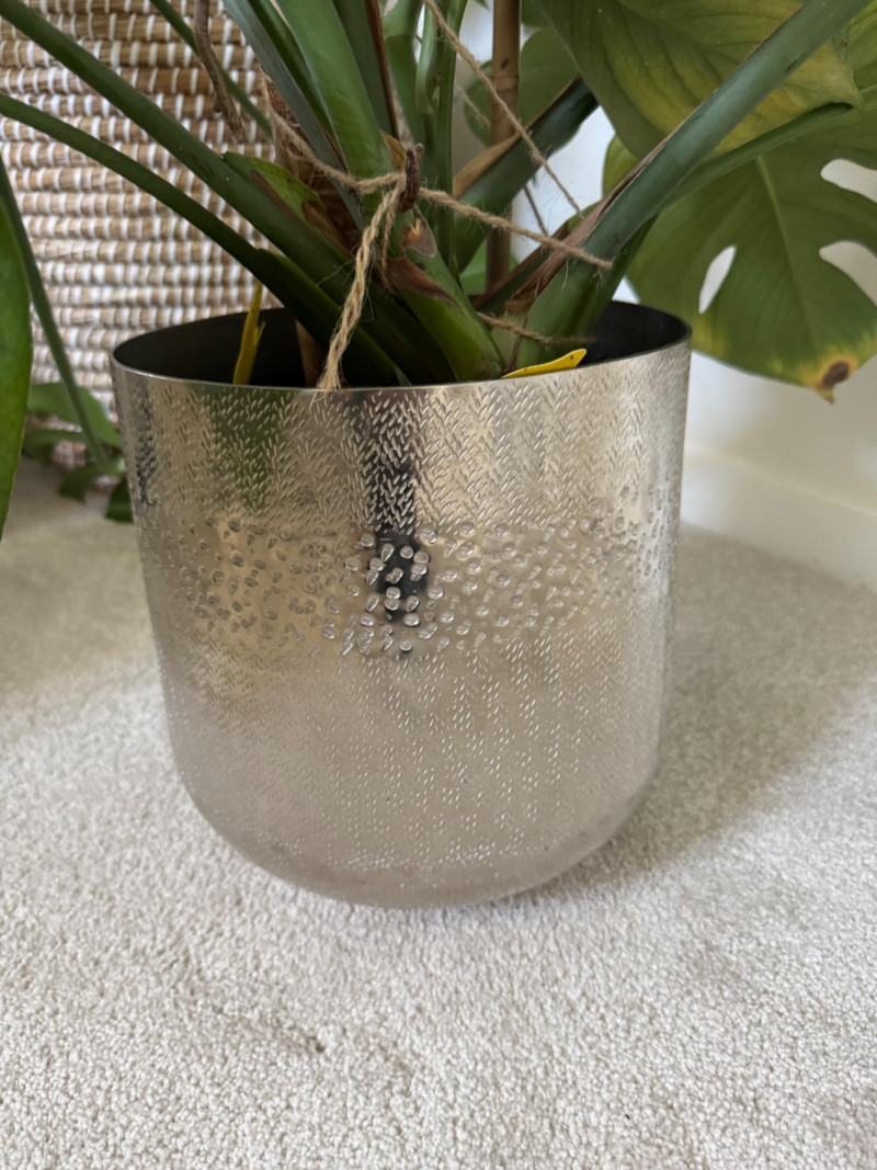 Lot # 71 - Large Indoor Plant in Silver-Tone Textured Pot