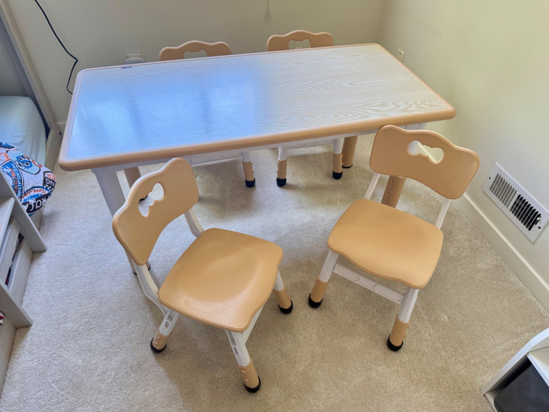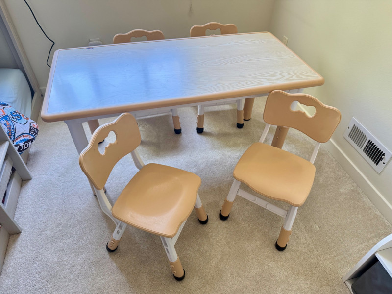 Kids Table Set w/ Woodgrain Top & 4 Matching Chairs. Approx. Dimensions: Table: 47” L x 24” D x 22” H 🚚 Auction Pickup Reminder: