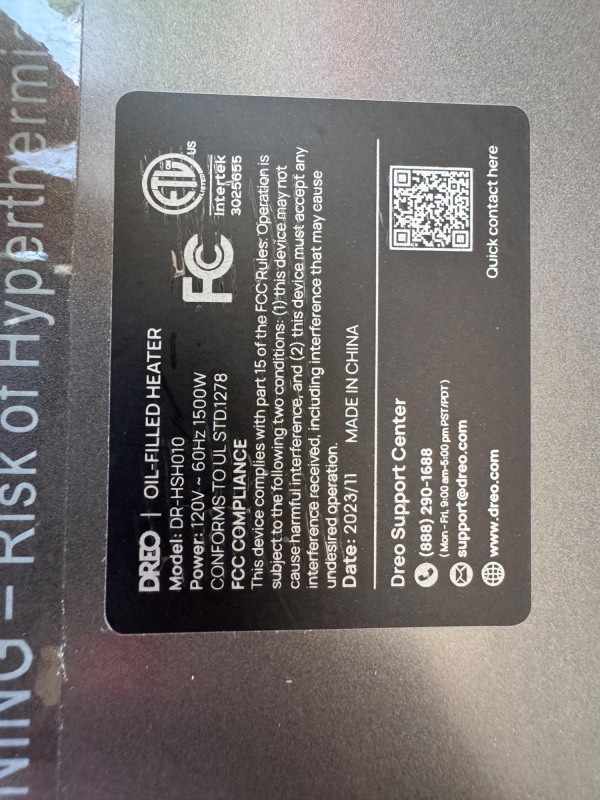 Dreo Oil-Filled Radiator Heater – Model DR-HSH010, 1500W. 26” Tall 🚚 Auction Pickup Reminder: