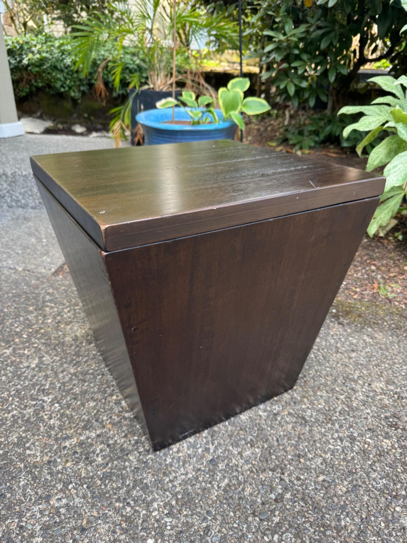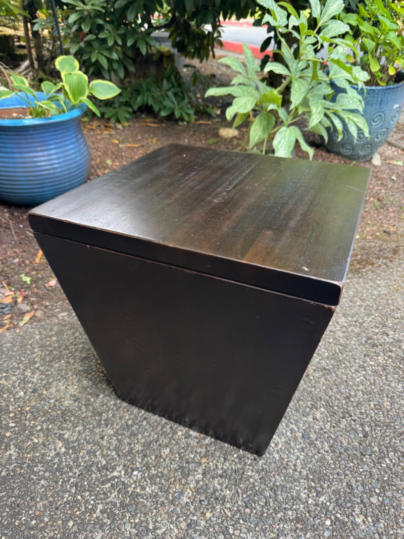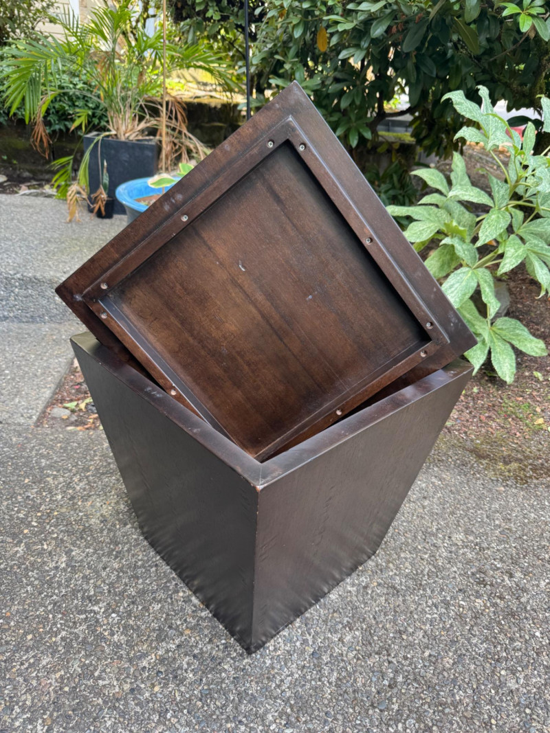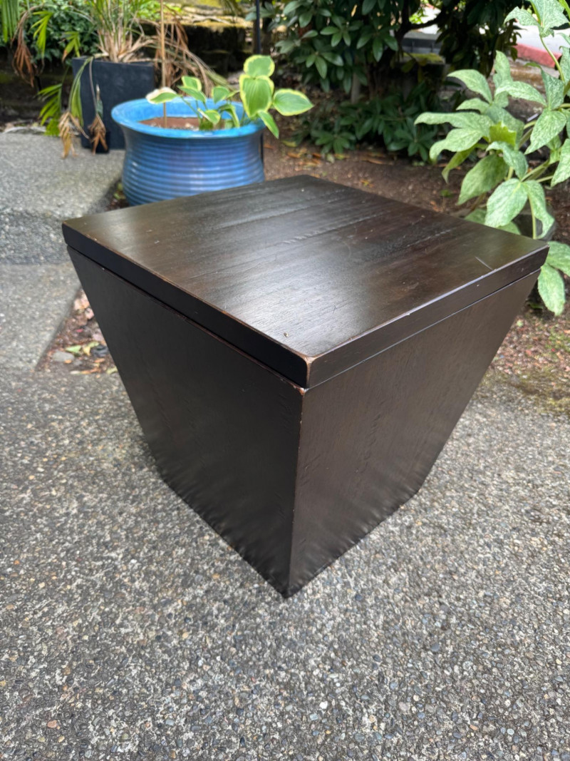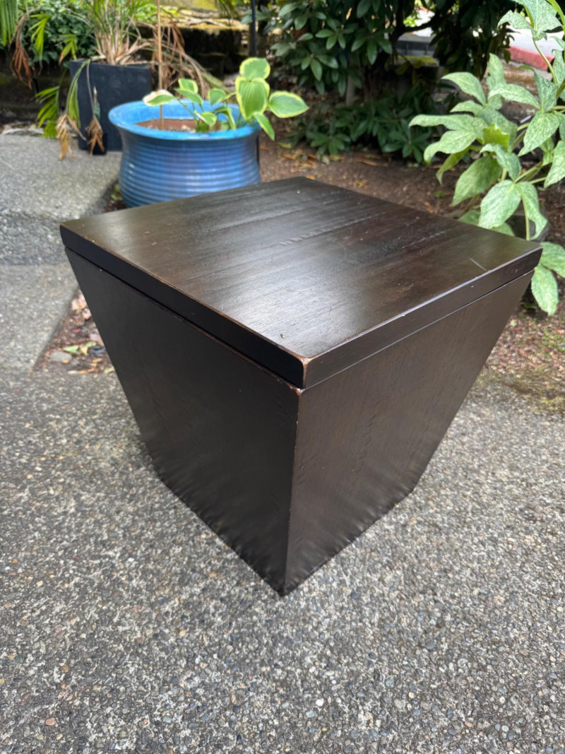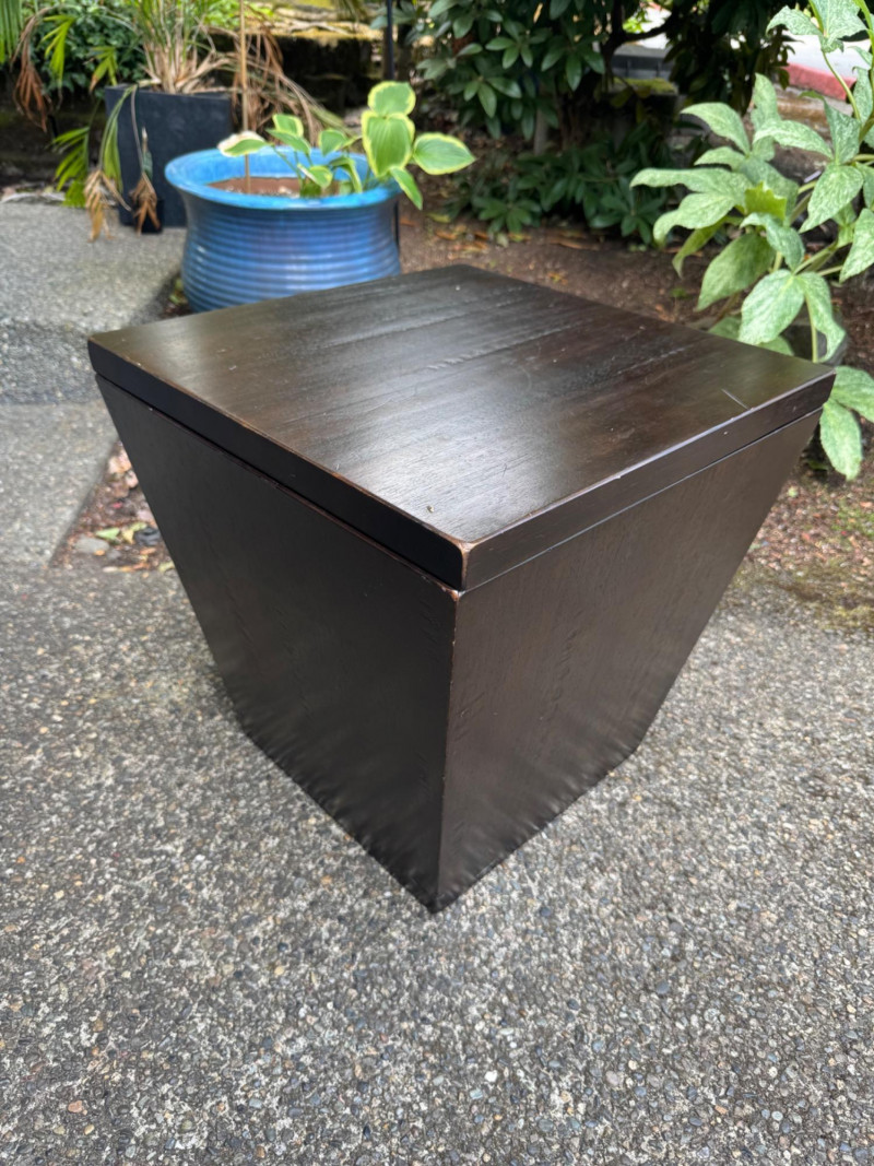 Solid Wood Storage Cube or Plant Stand w/ Removable Lid #1. Dimensions: Height: 19" Width: 19" Depth: 19" 🚚 Auction Pickup Reminder: