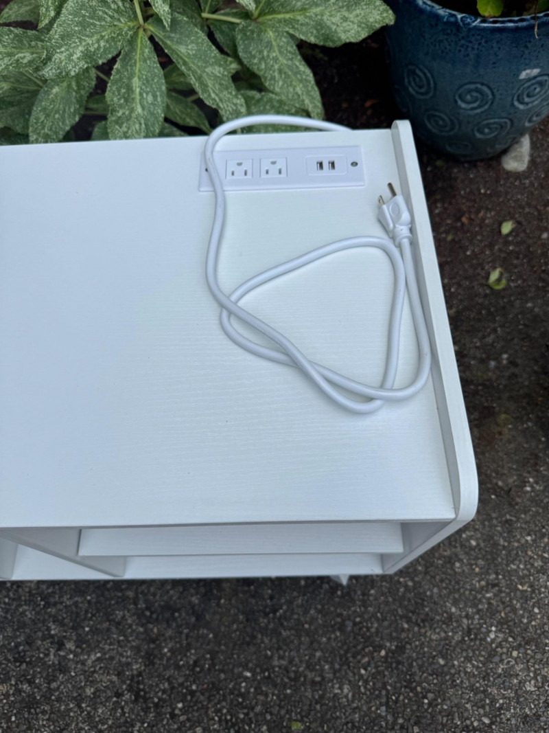 Lot # 84 - White Turntable Stand w/ Vinyl Record Storage & Power Outlets