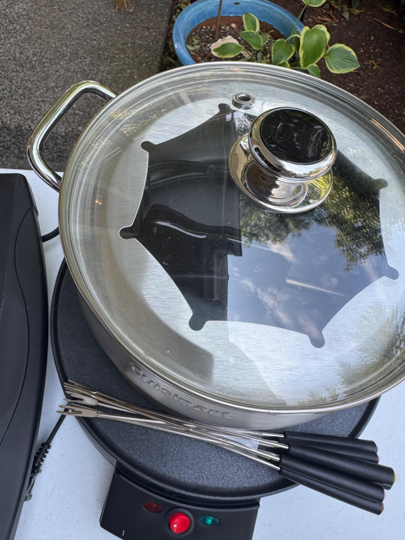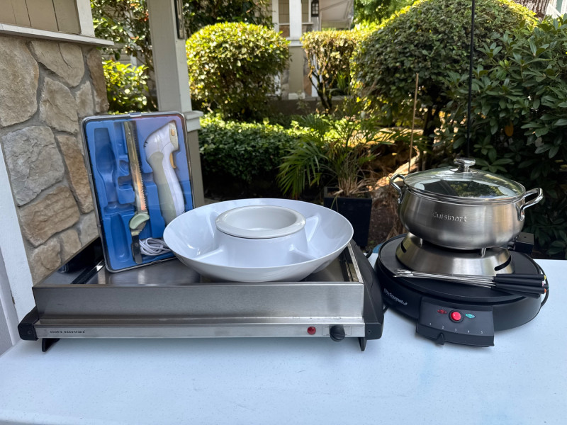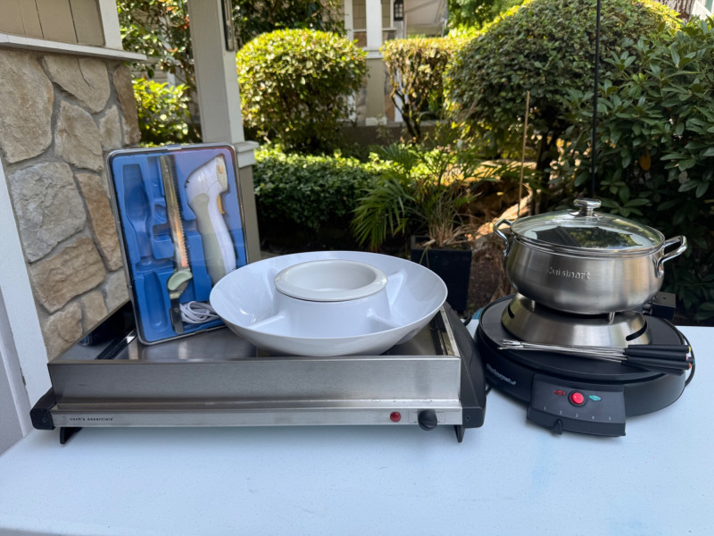 Hot Plate, Cuisinart Fondue, Deni Warmer & Carving Knife Set. 🚚 Auction Pickup Reminder: