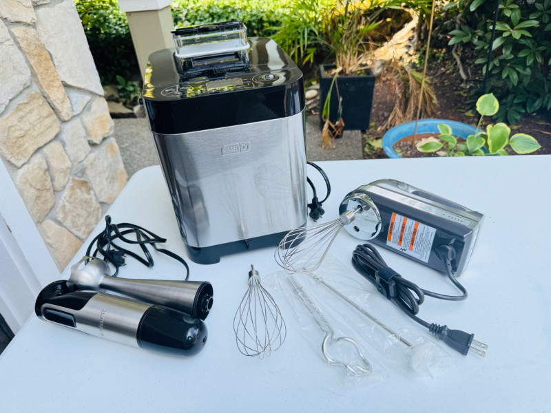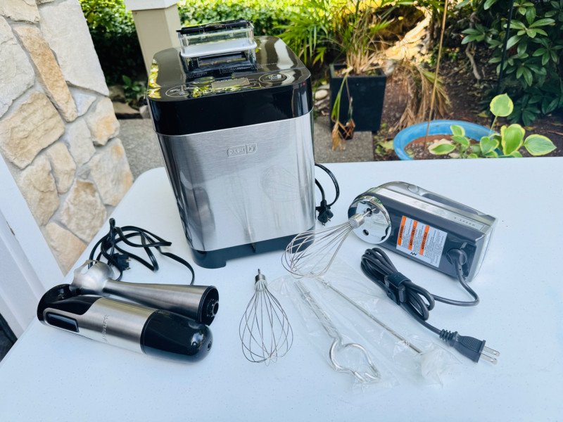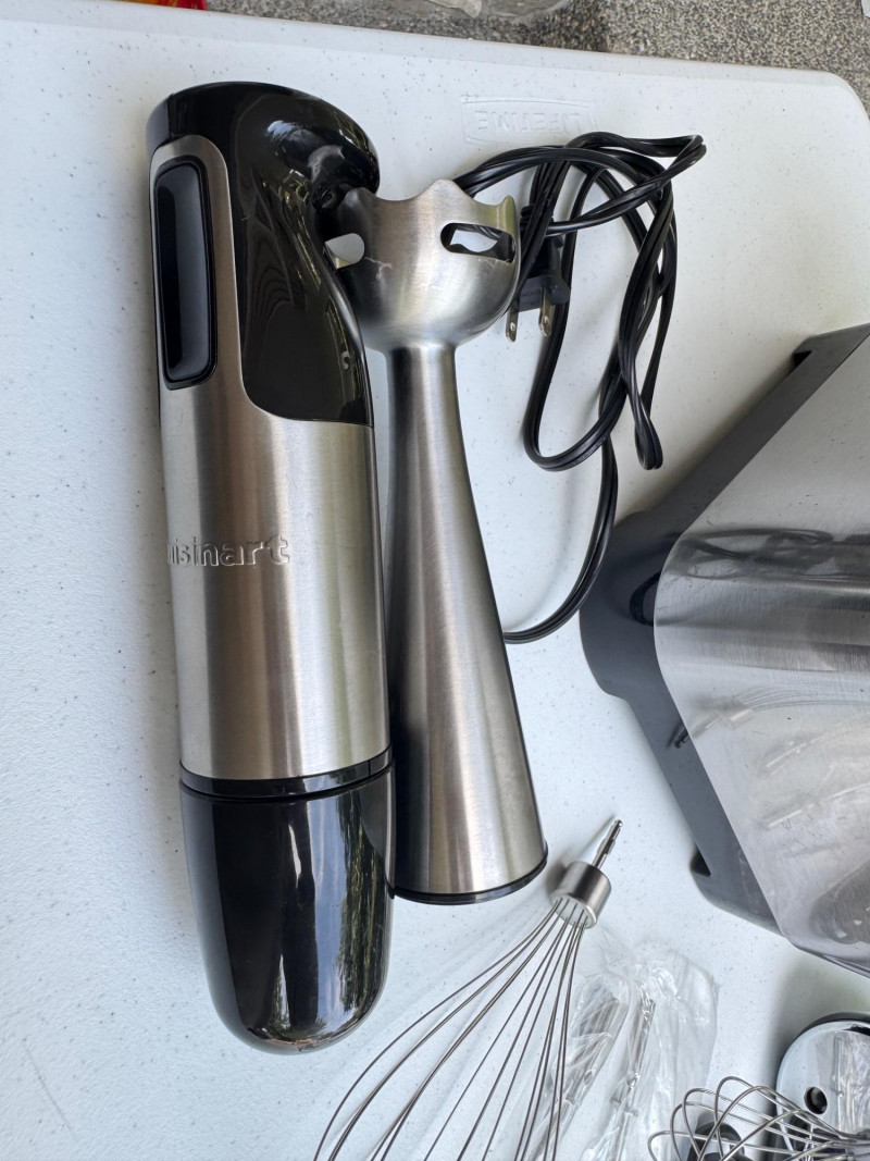 Dash Bread Maker, KitchenAid Hand Mixer & Cuisinart Stick Blender. Dash Everyday 1.5lb bread maker with manual KitchenAid 9-speed hand mixer with whisk and beaters Cuisinart stick blender with detachable blending arm Additional attachments included as shown 🚚 Auction Pickup Reminder: