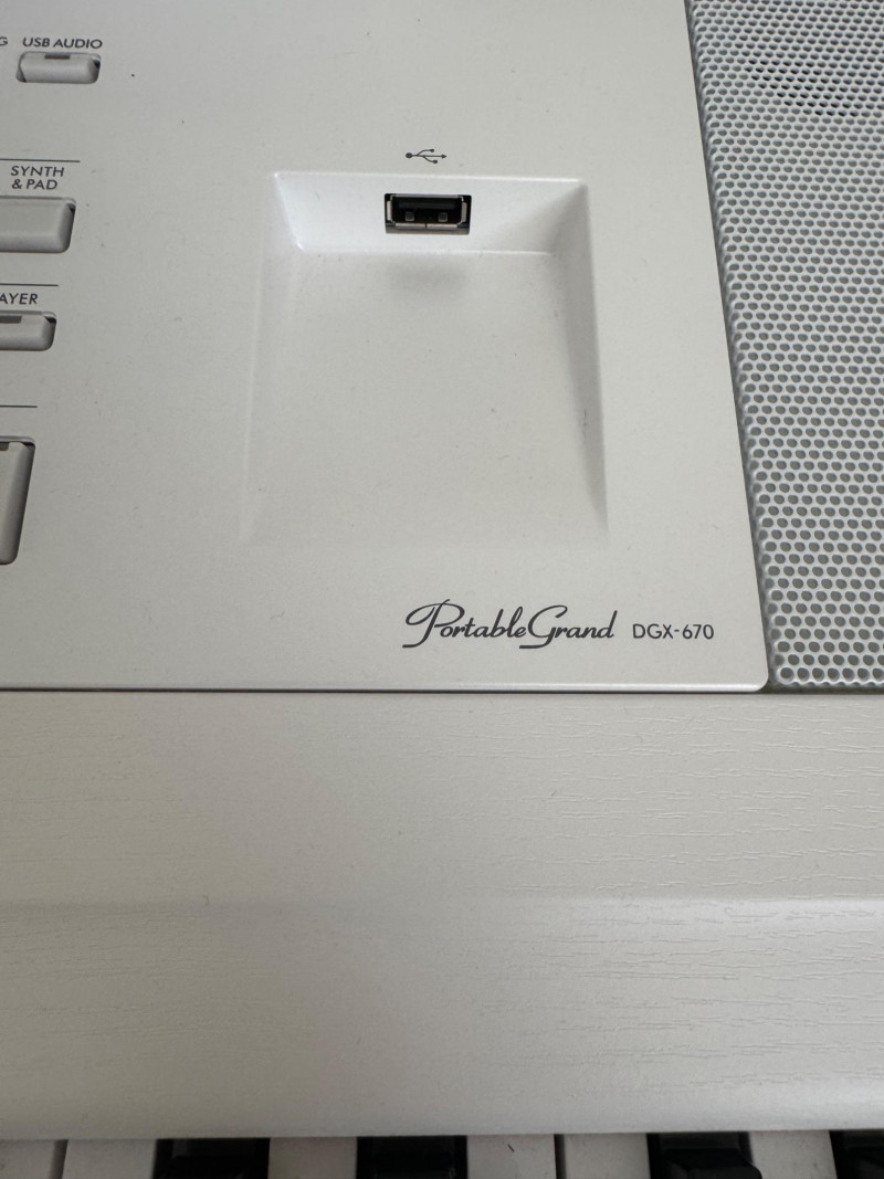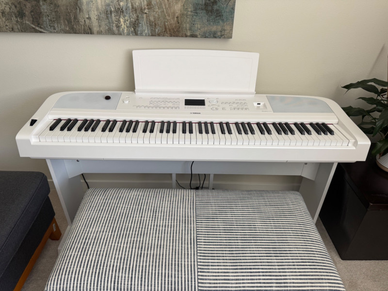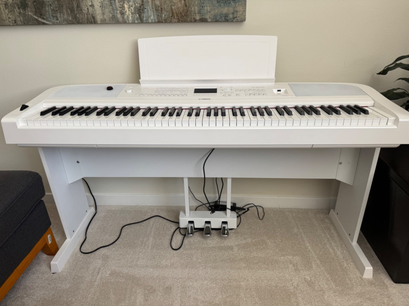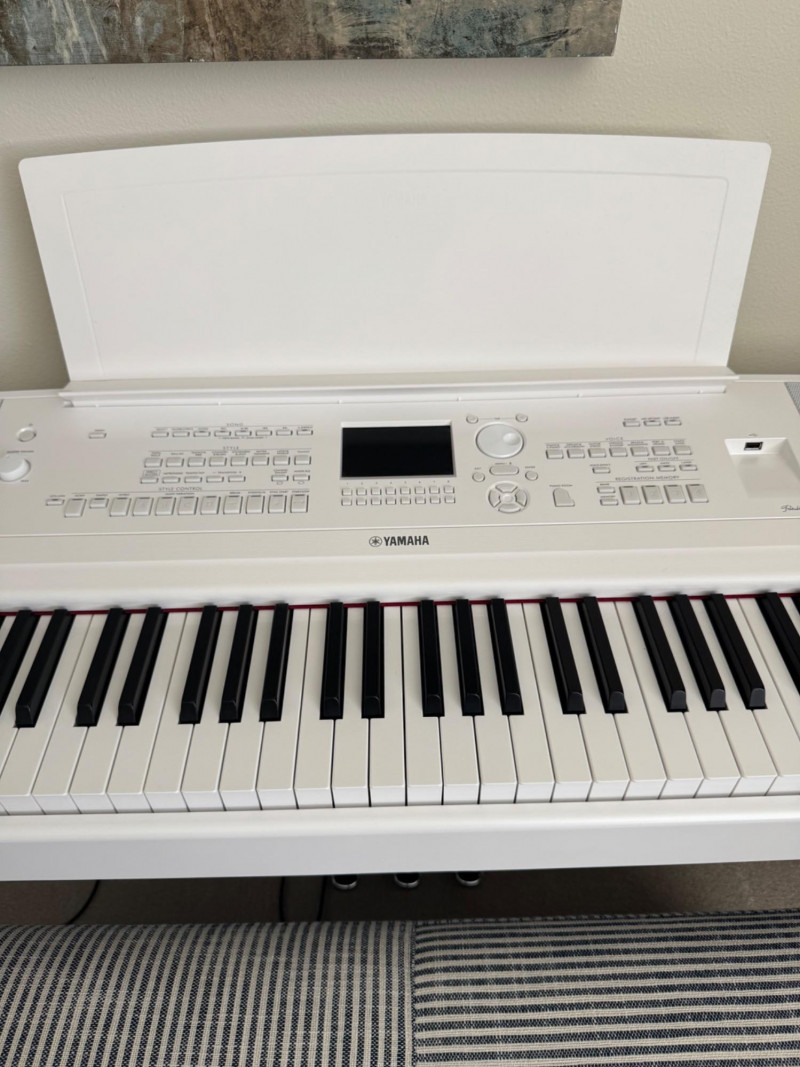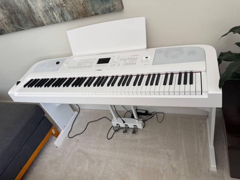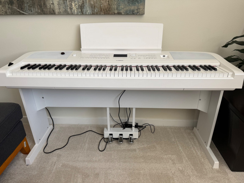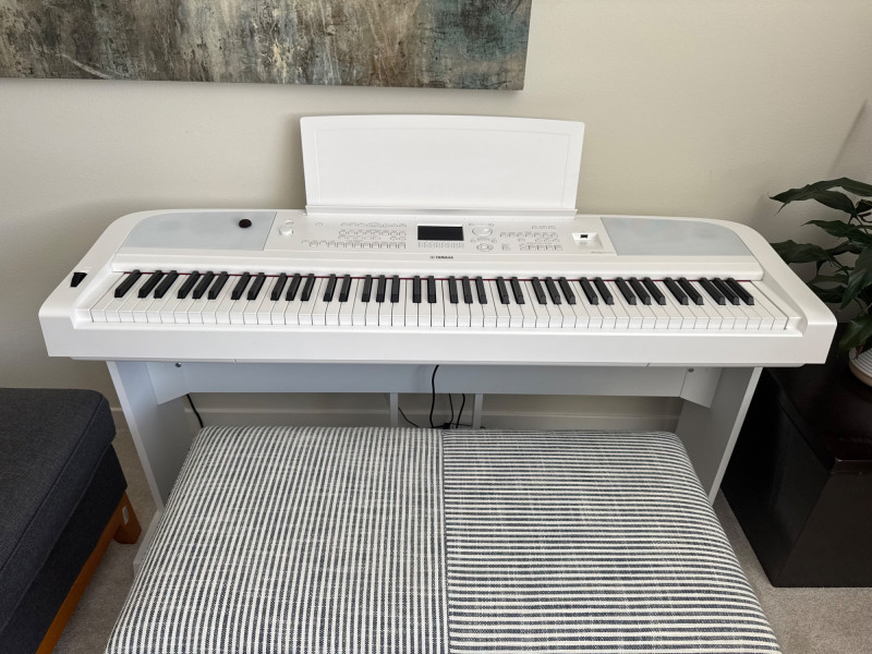 Yamaha DGX-670 White Digital Piano w/ Stand & Pedal Unit. Approx. 55” W x 29” H 🚚 Auction Pickup Reminder:
