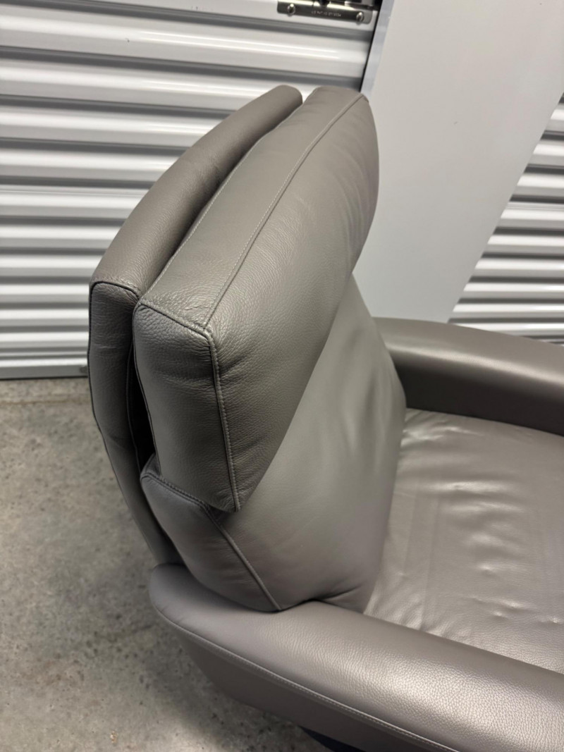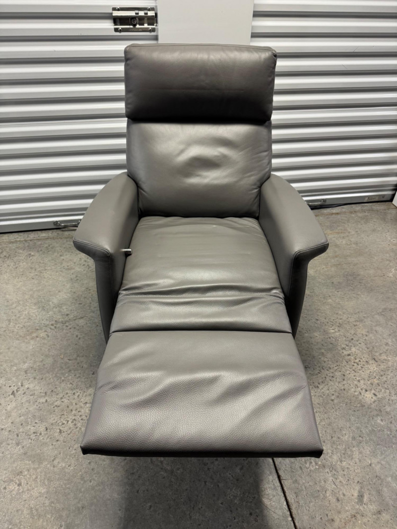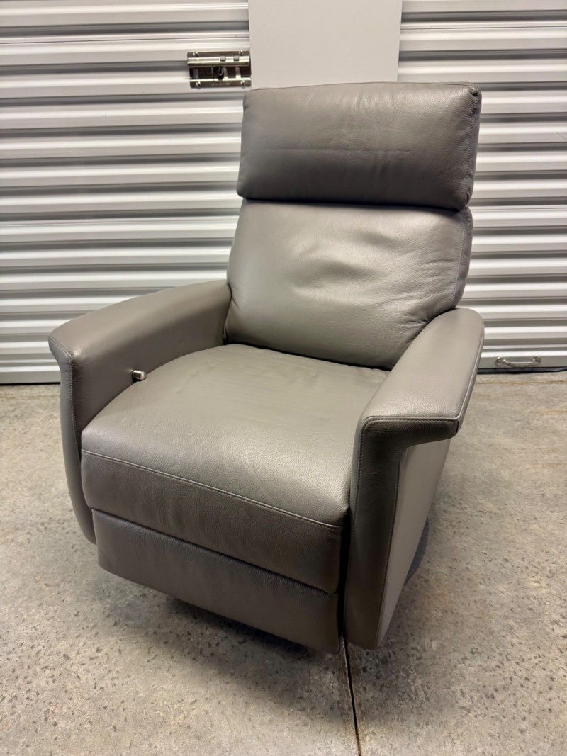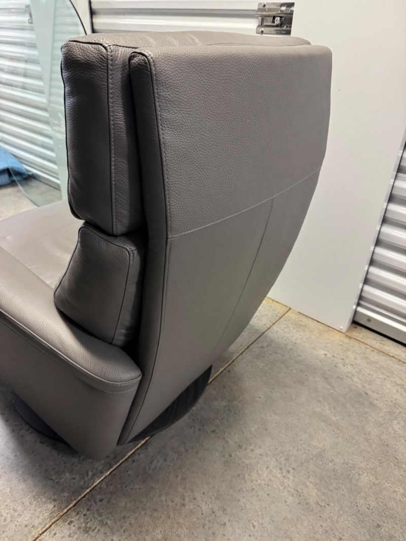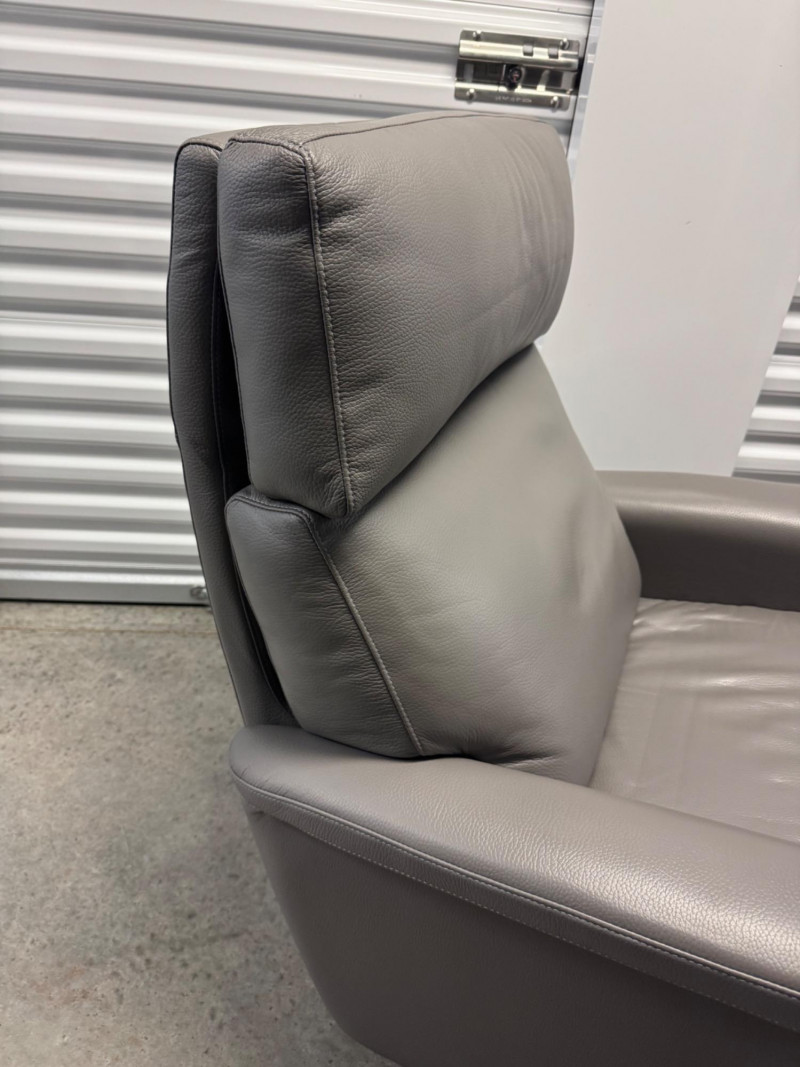 Lot # 3 - Gray Leather Recliner Chair w/ Padded Headrest & Armrests - Like New!