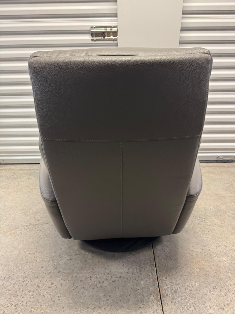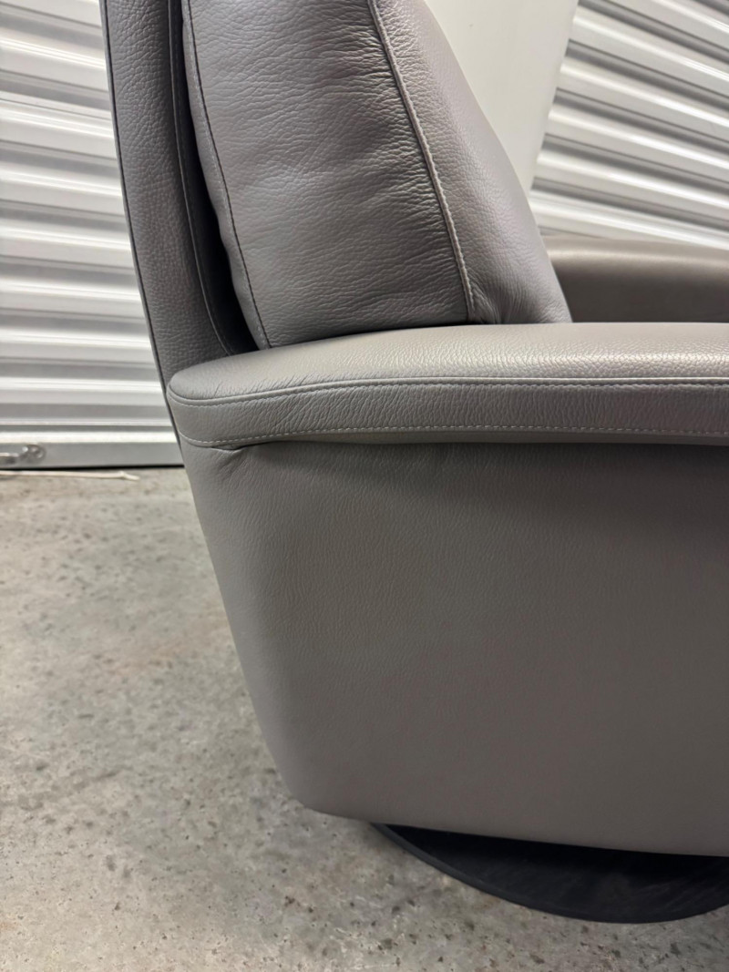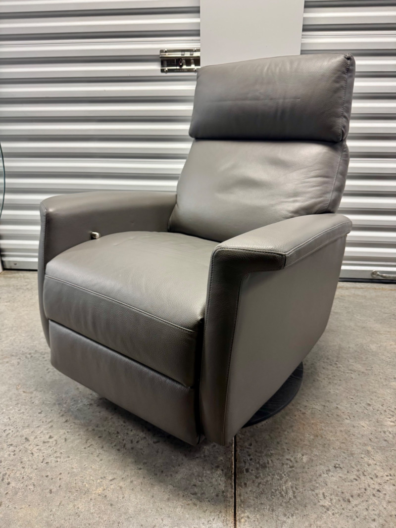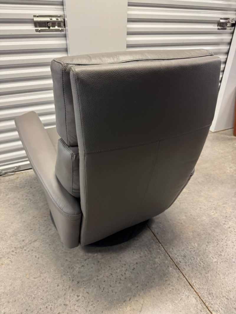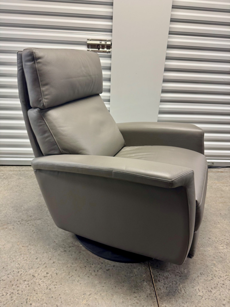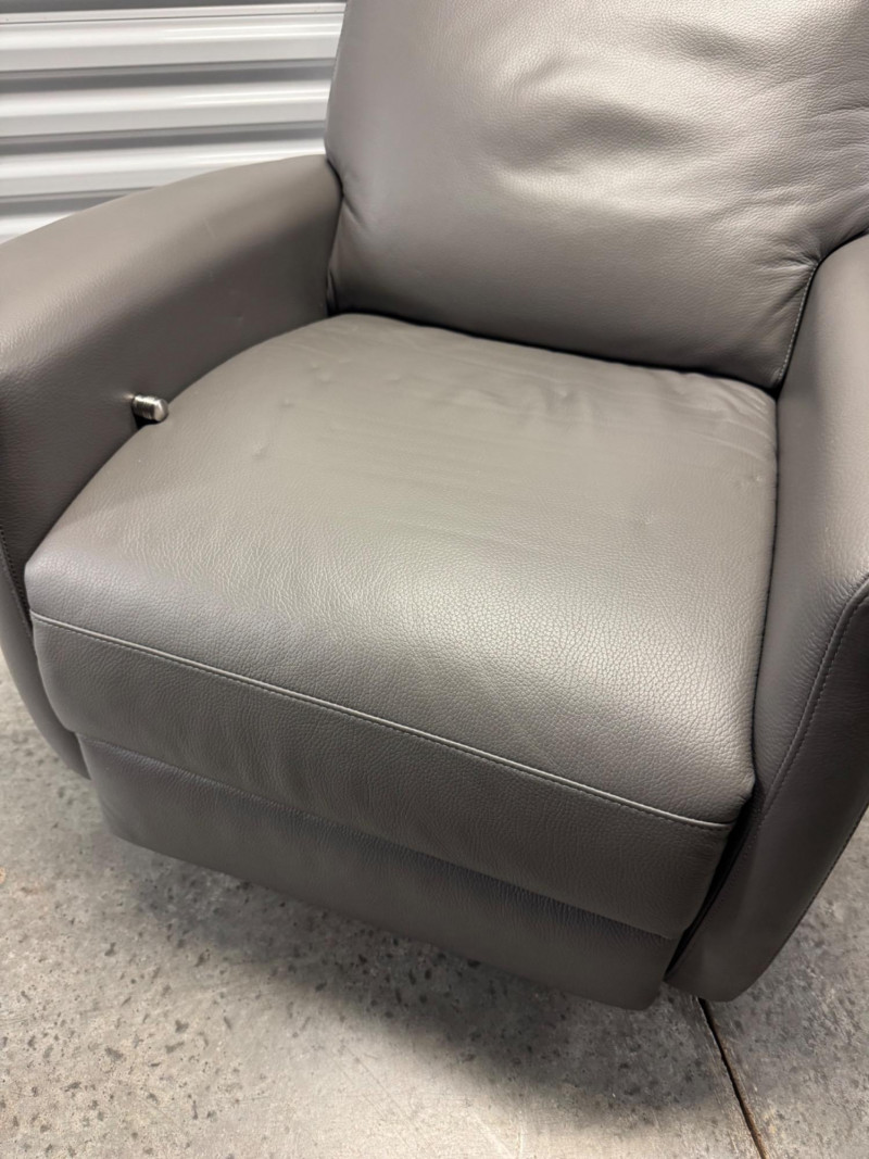 Lot # 3 - Gray Leather Recliner Chair w/ Padded Headrest & Armrests - Like New!