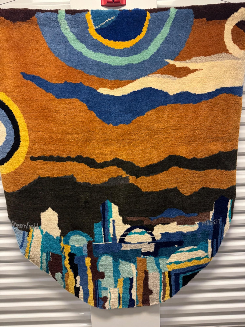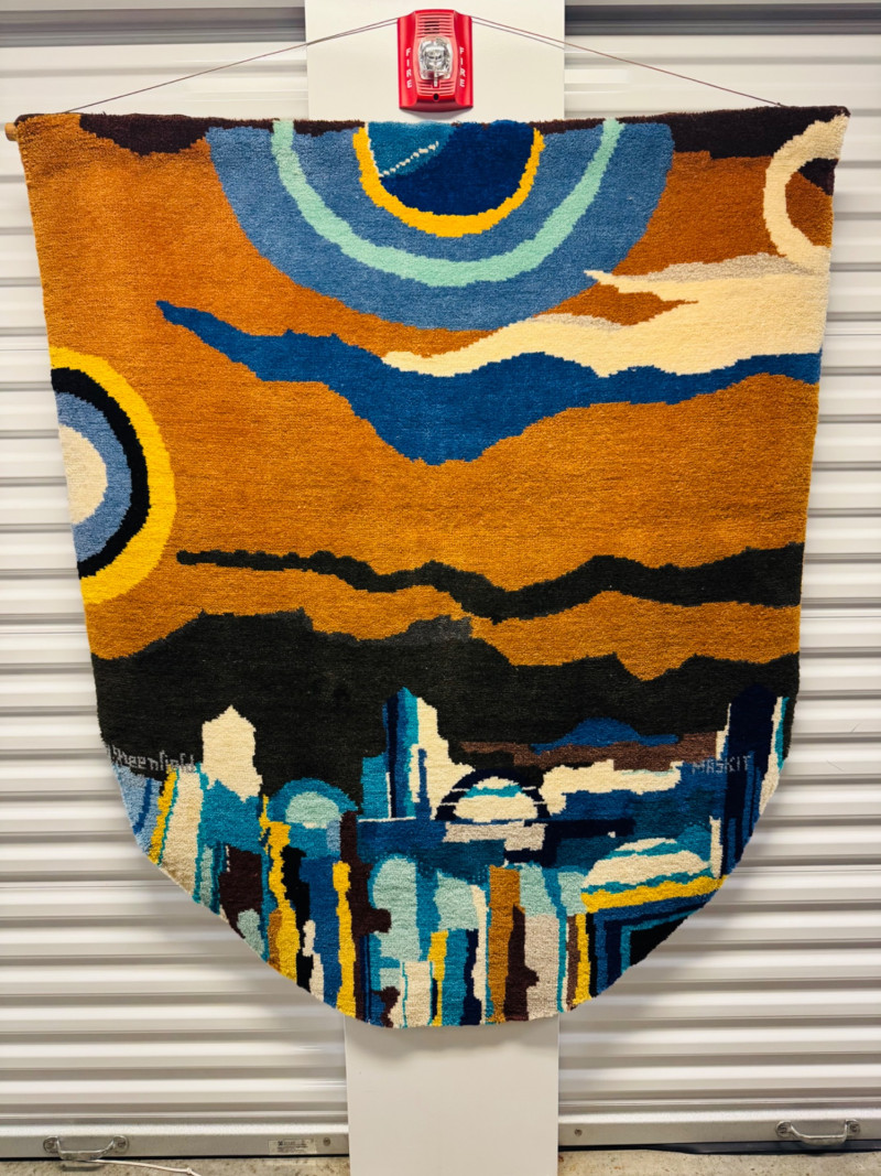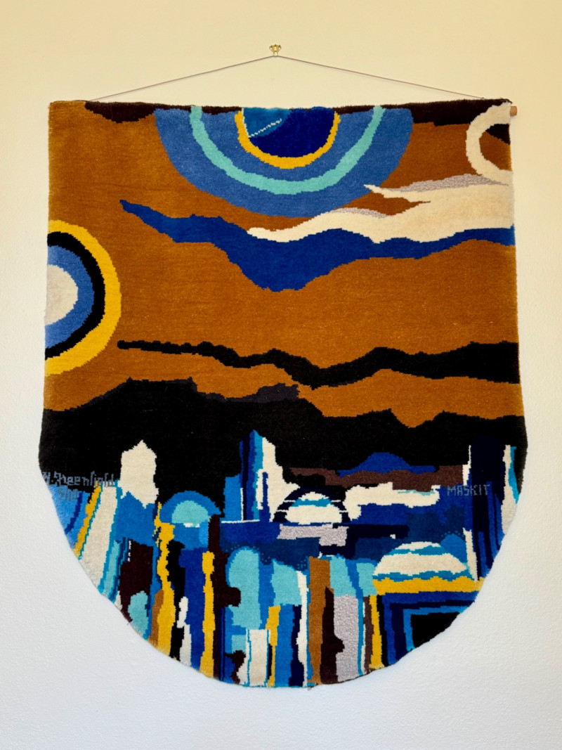 Lot # 6 - XL Maskit Israel Wool Wall Hanging Tapestry – Abstract Skyline, Signed