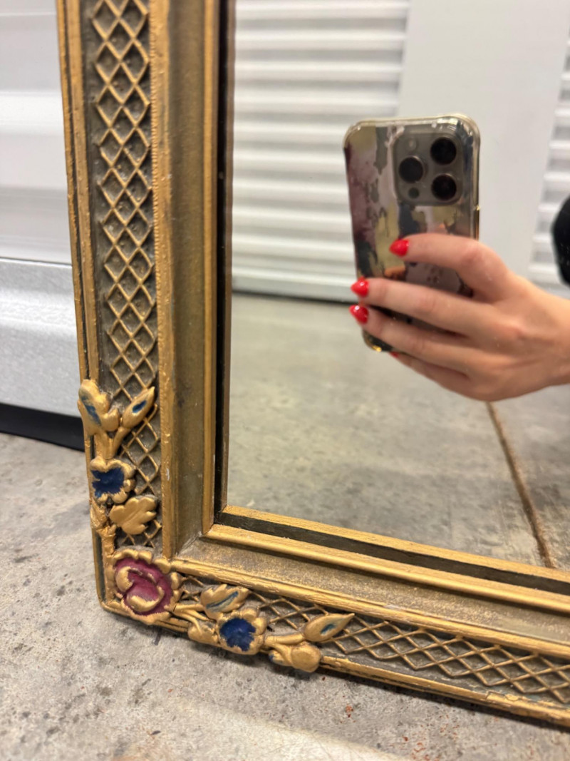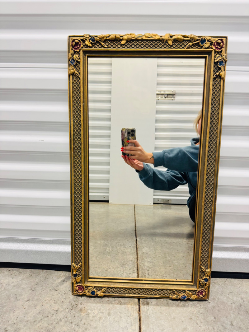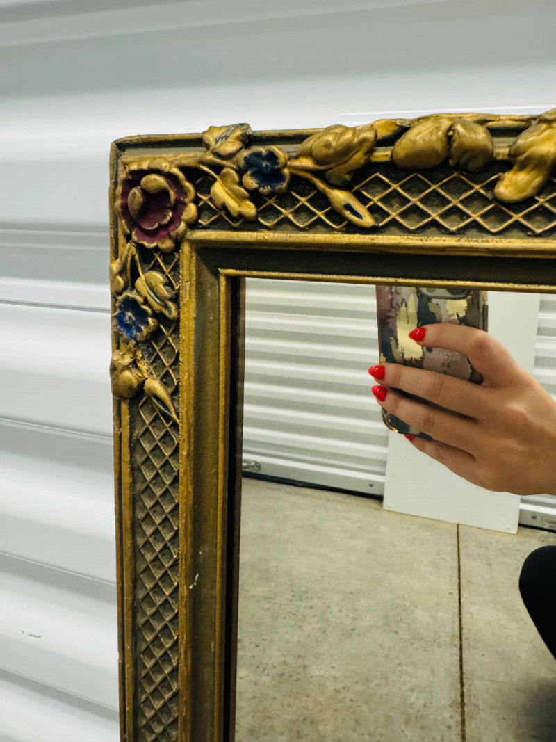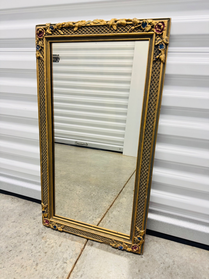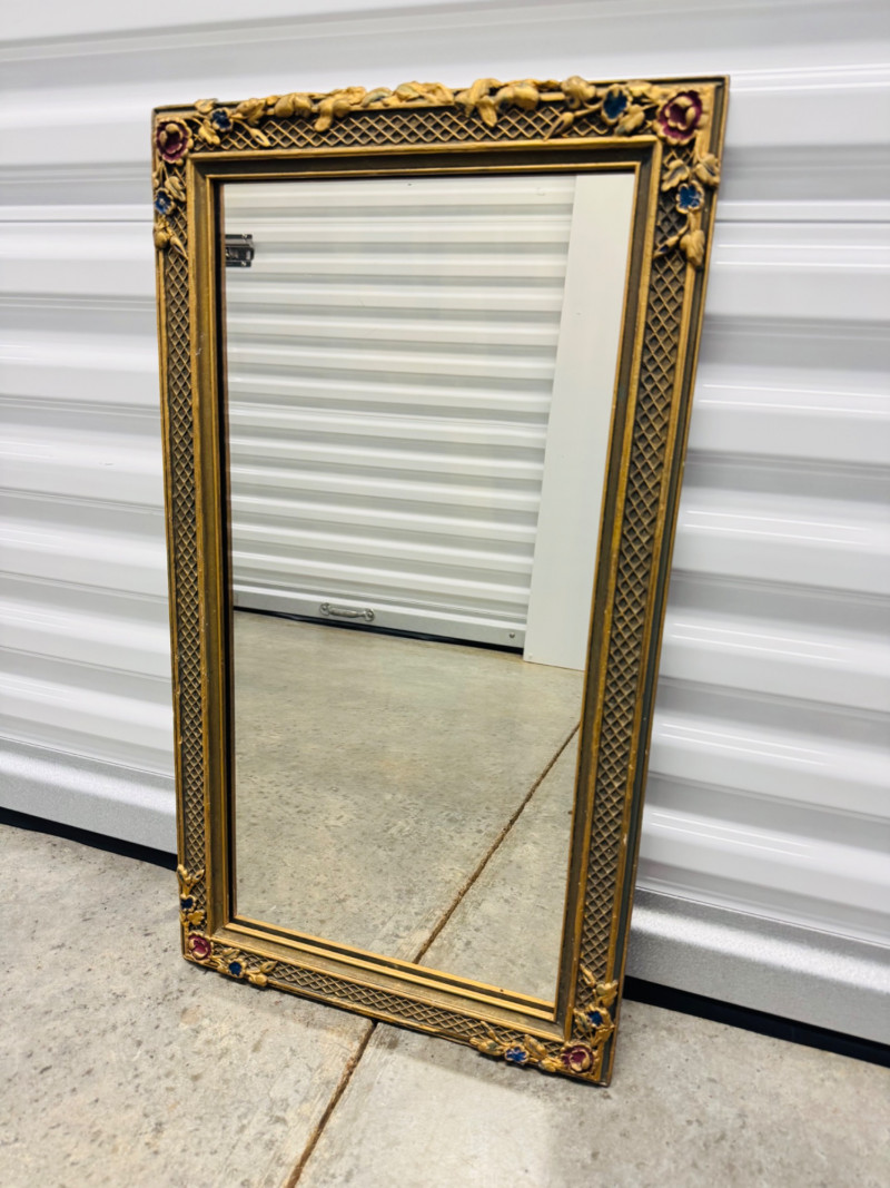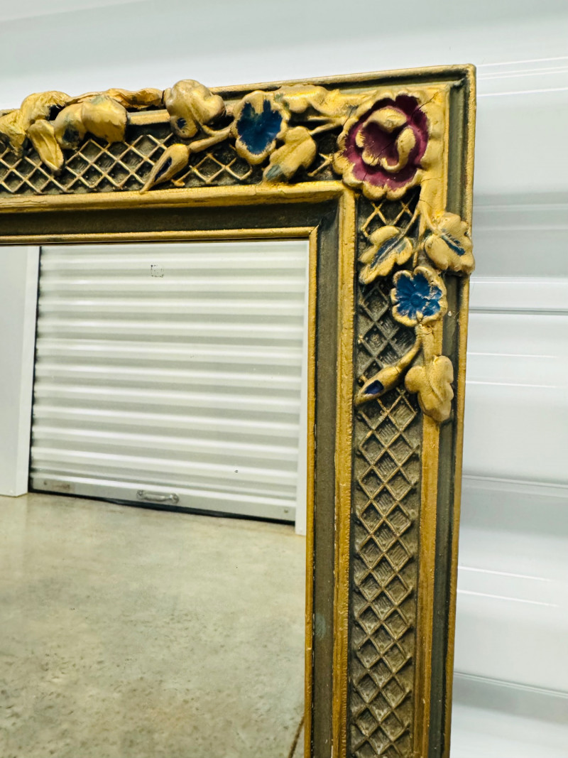 Antique Wall Mirror – Gold Frame w/ Painted Floral Accents. 15" x 27"
