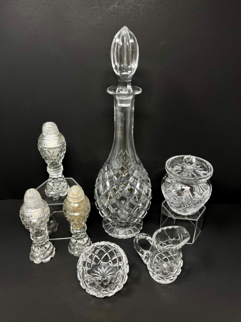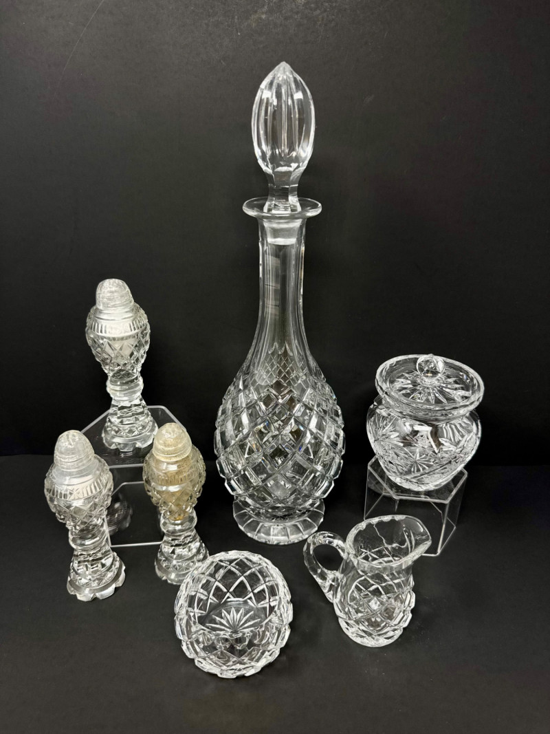 Lot # 13 - 1967 Kusak Crystal Decanter, Crystal Shakers, Creamer, & More