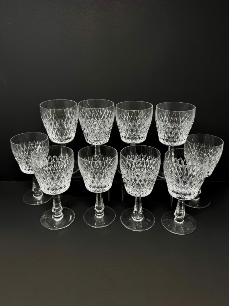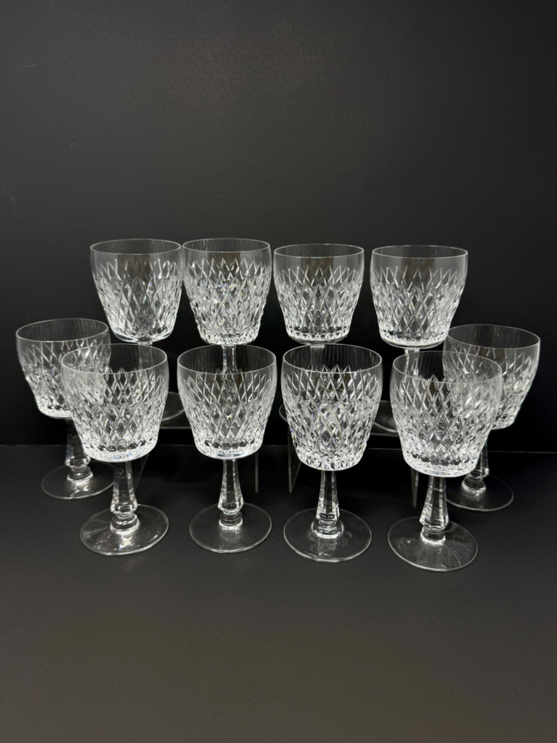 Lot # 16 - 1967 Kusak Crystal Red Wine Glasses, Diamond Cut, Set of 10
