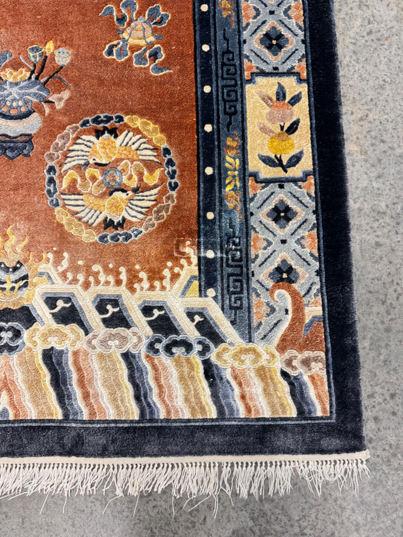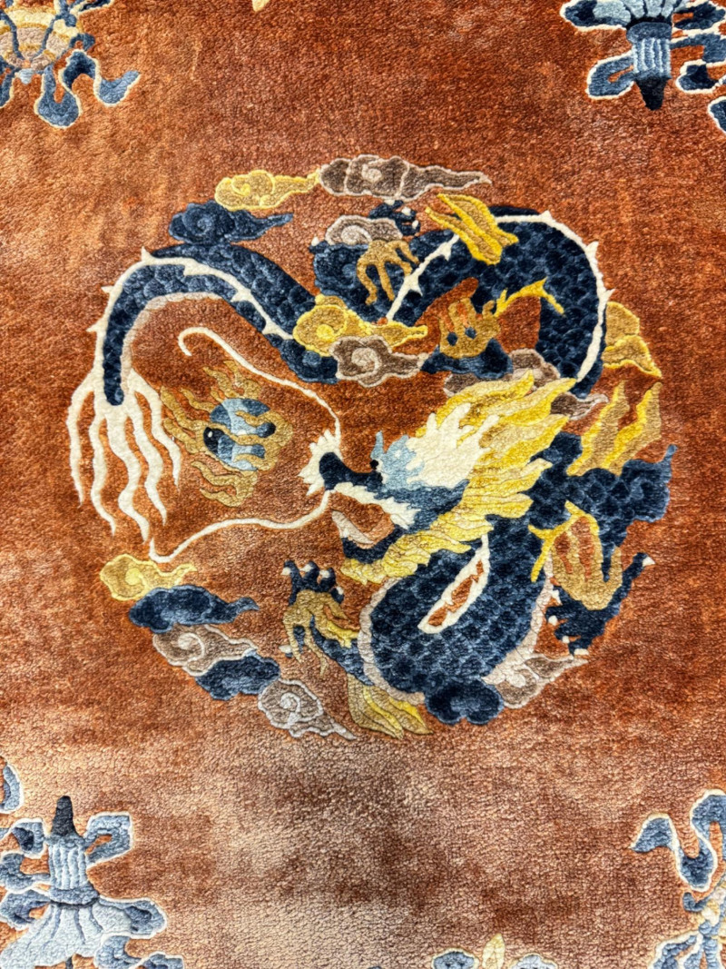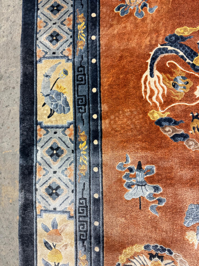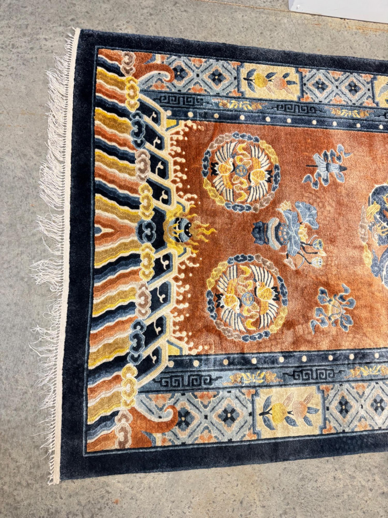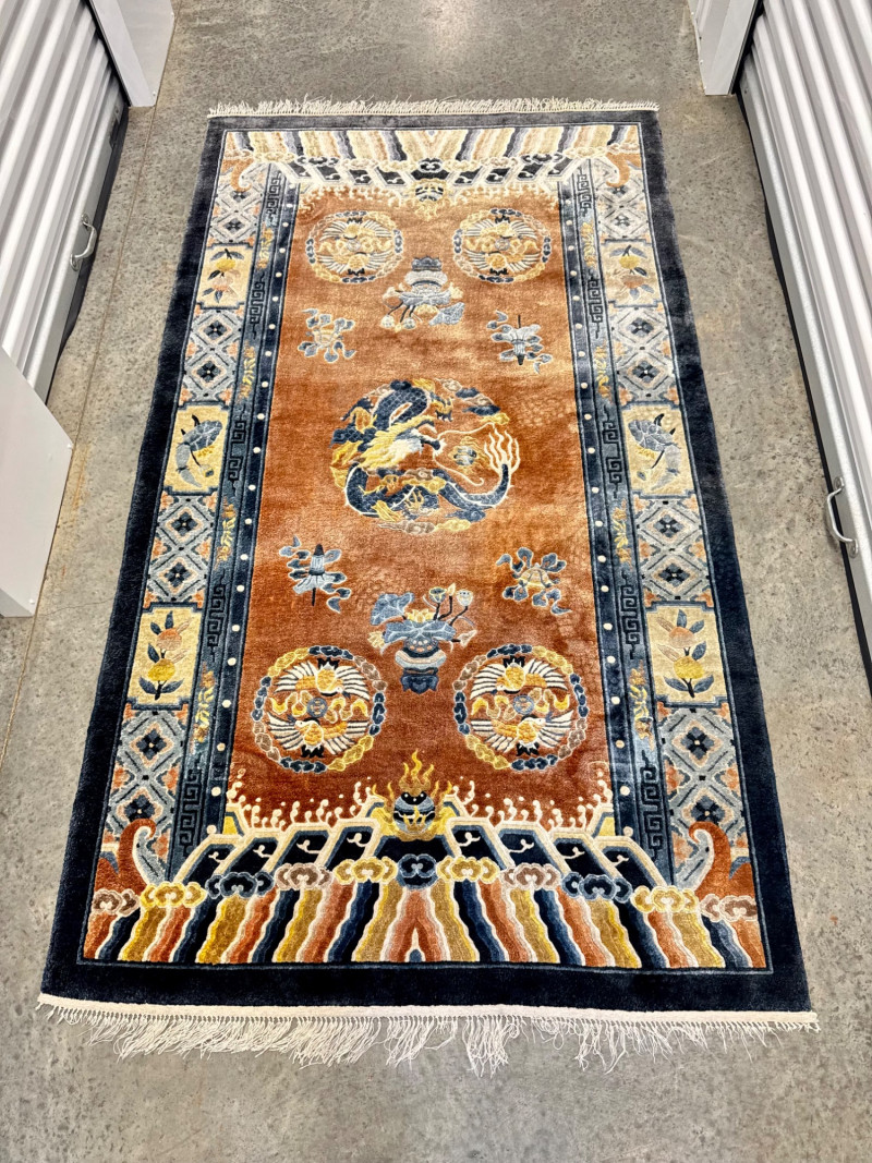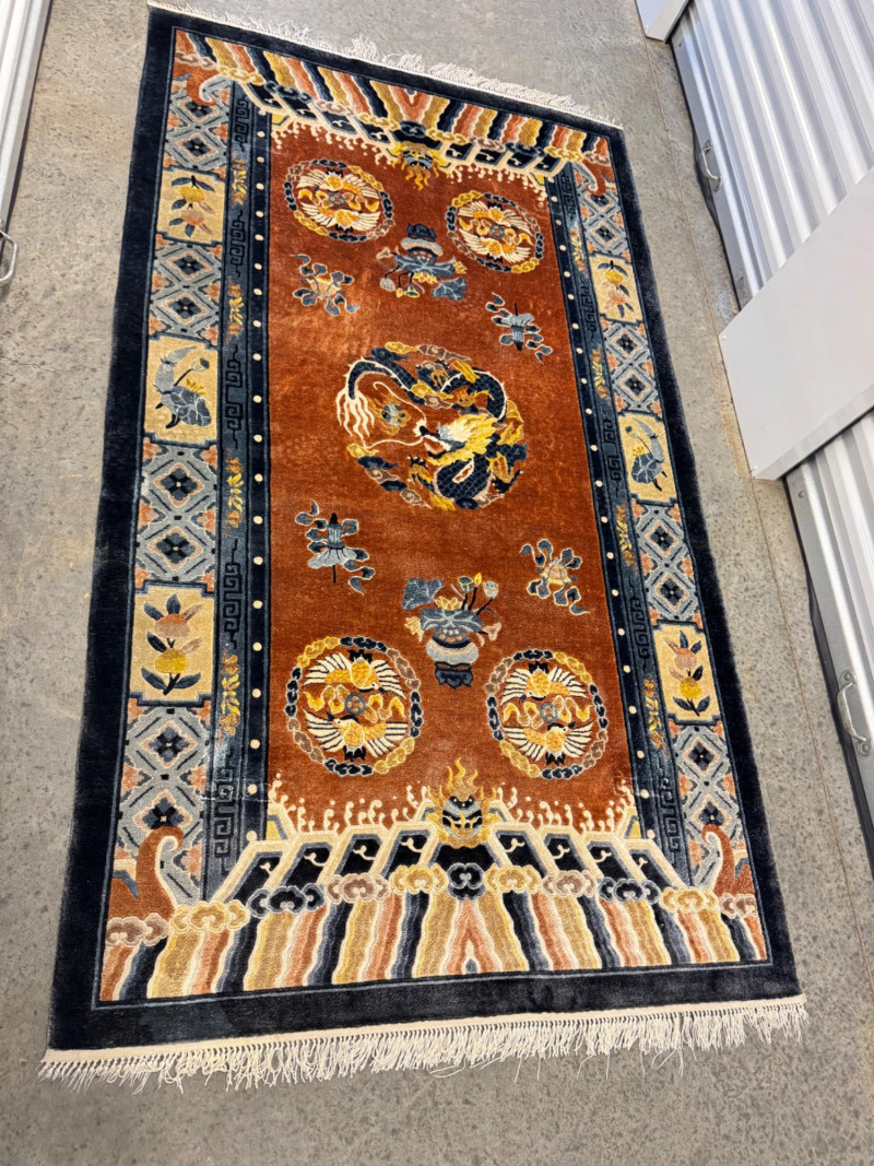 Lot # 21 - Vintage 100% Wool Hand-Knotted Dragon Rug, Rust/Blue - Great Condition