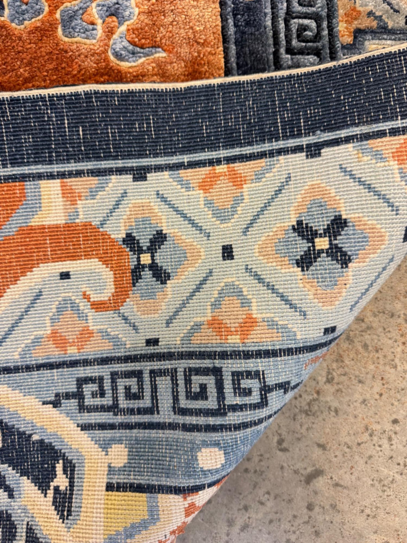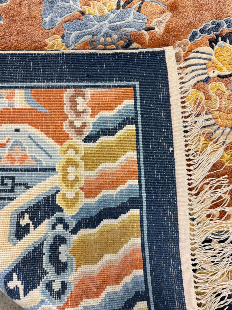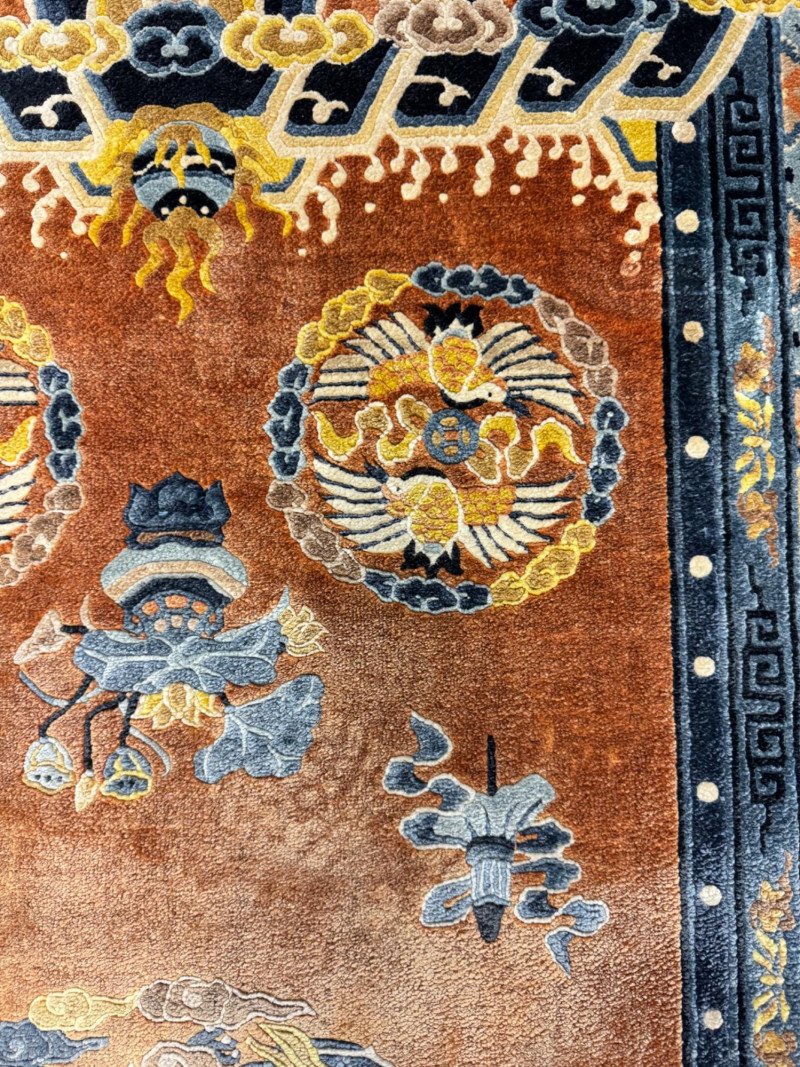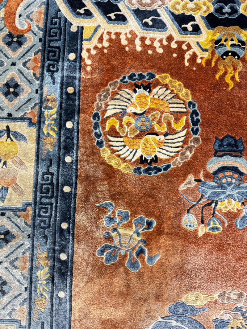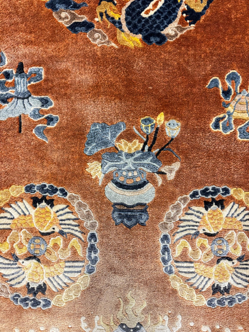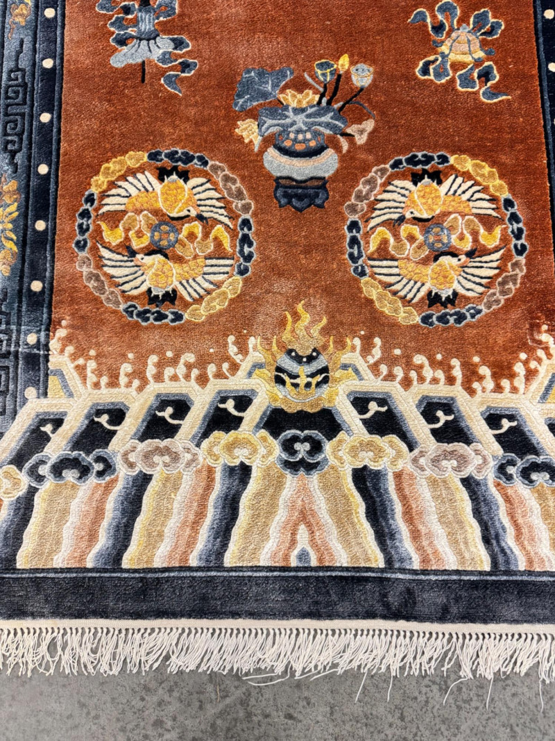 Lot # 21 - Vintage 100% Wool Hand-Knotted Dragon Rug, Rust/Blue - Great Condition
