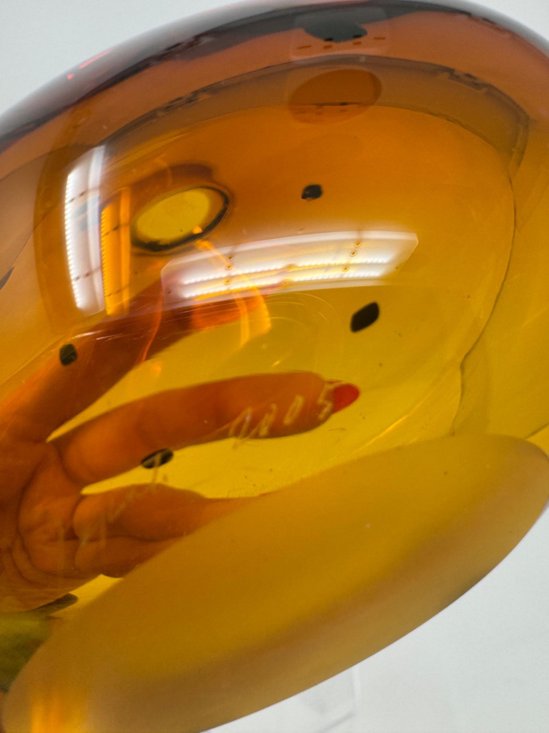 Lot # 23 - Sharon Fujimoto Amber Blown Glass Vase w/ Dichroic Accents - Signed