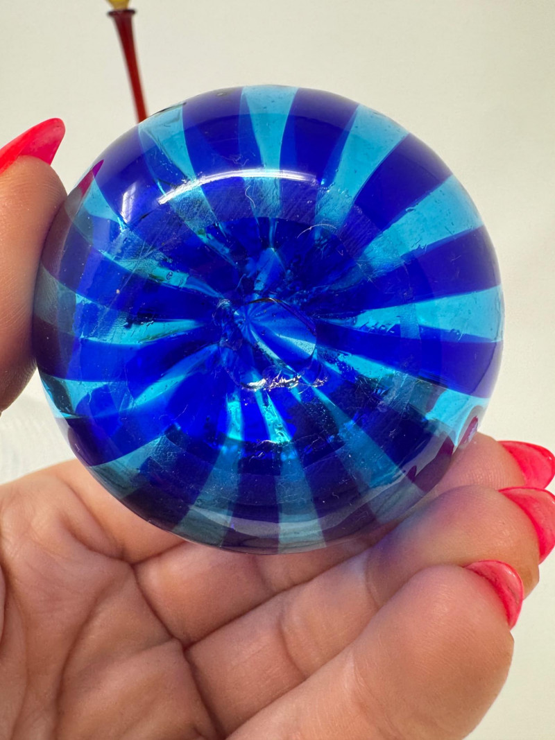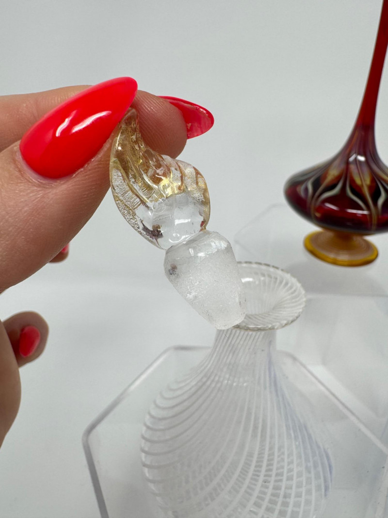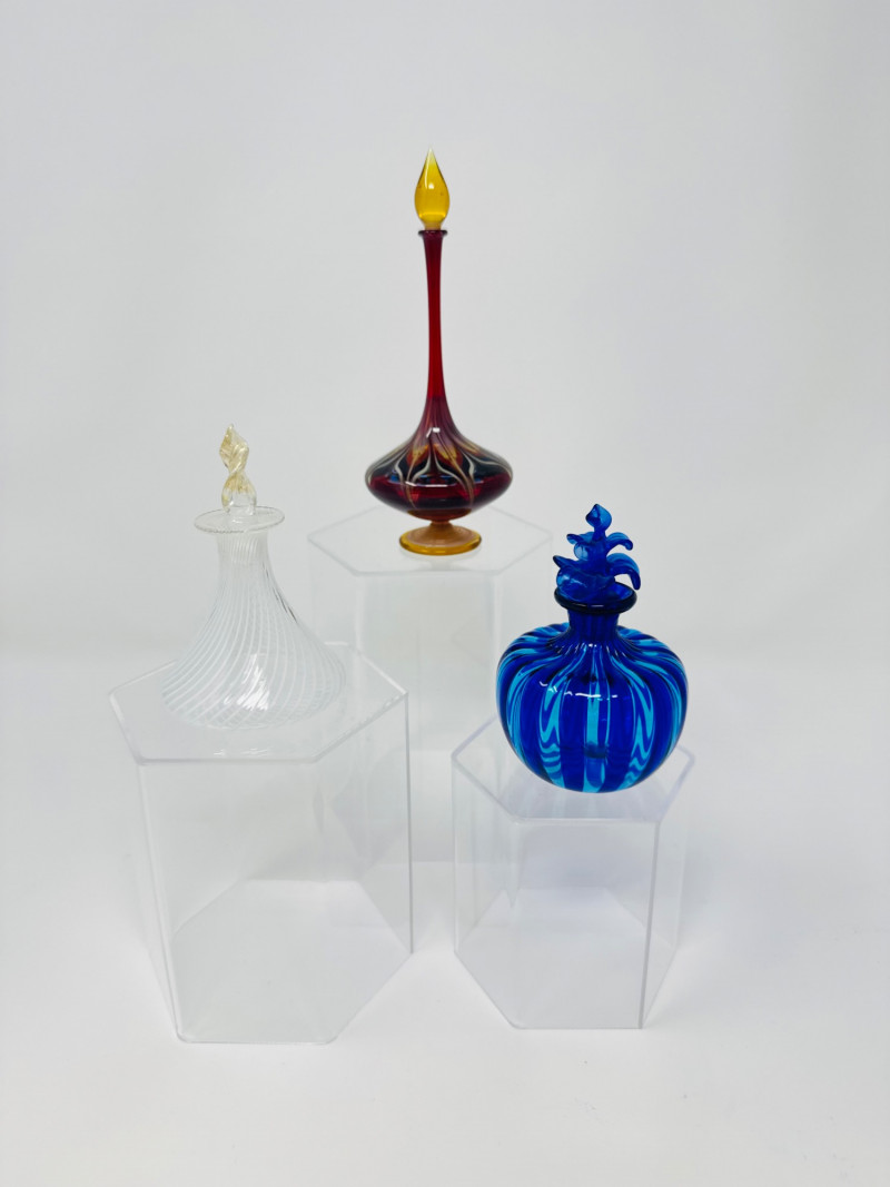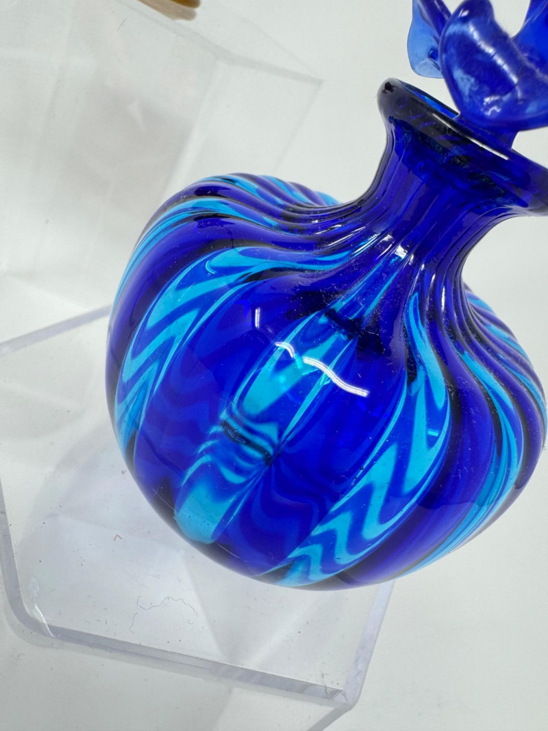 Lot # 25 - Murano-Style Blown Glass Perfume Bottles – Blue Swirl, Amber Flame +