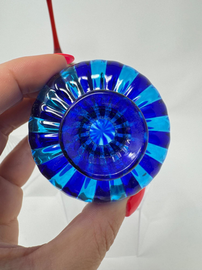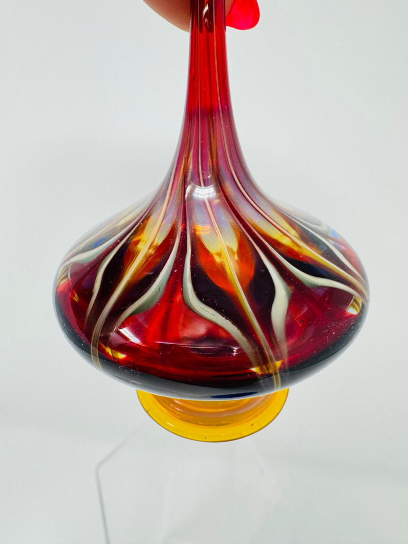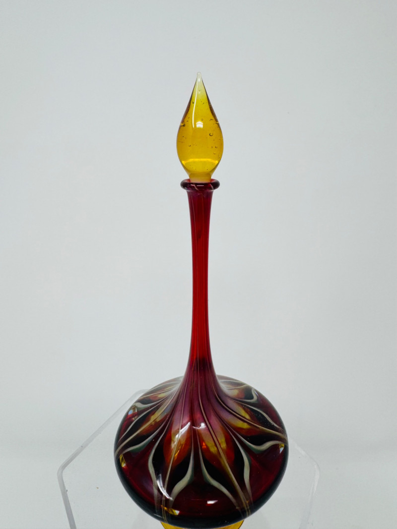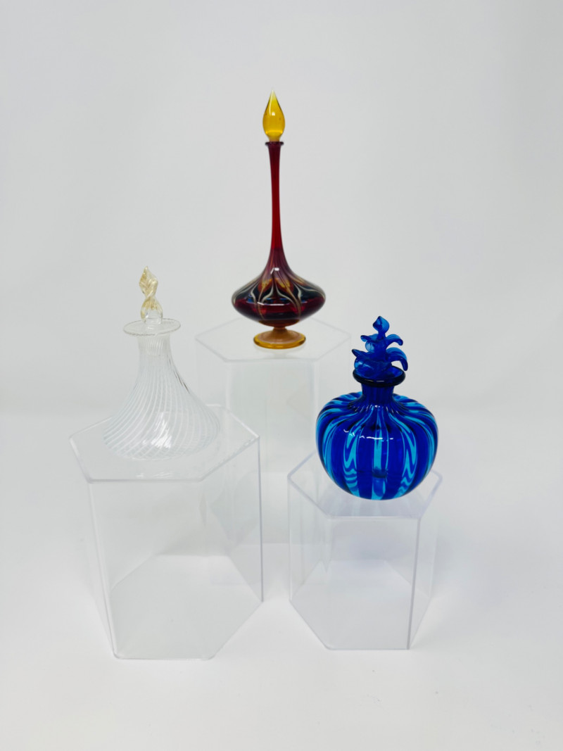 Murano-Style Blown Glass Perfume Bottles – Blue Swirl, Amber Flame + Sizes: Approx. 3.5" to 6" tall