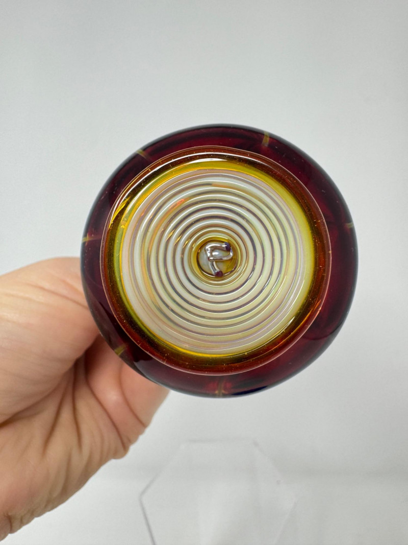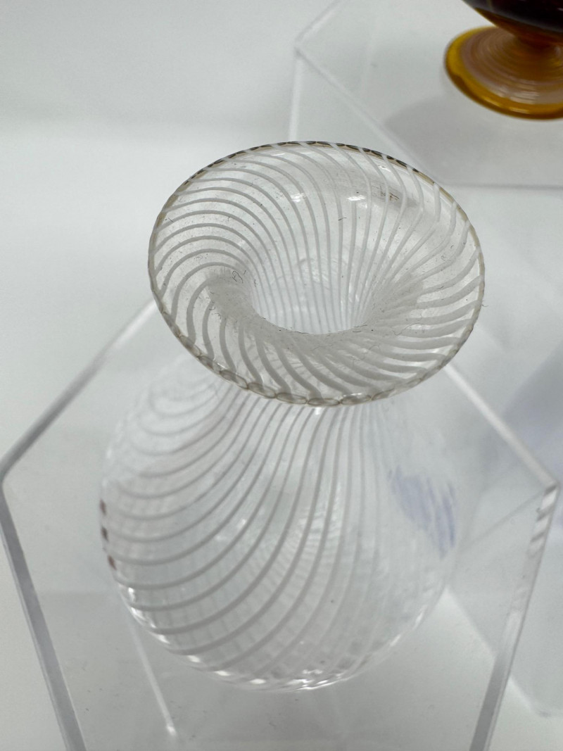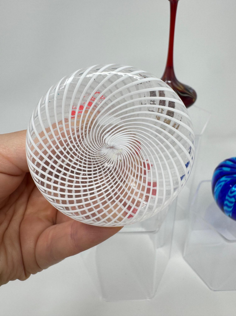 White: Clear/white spiral ribbed pattern with gold-flecked flame stopper