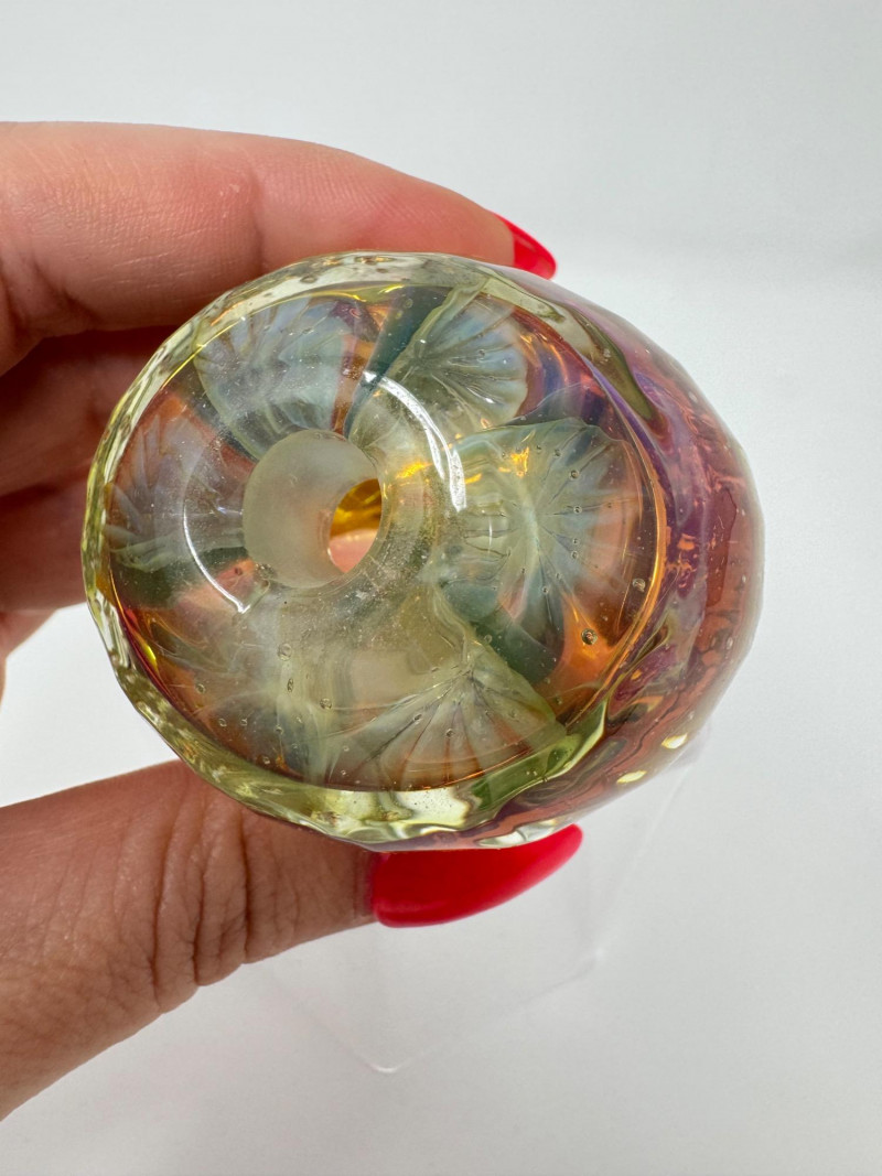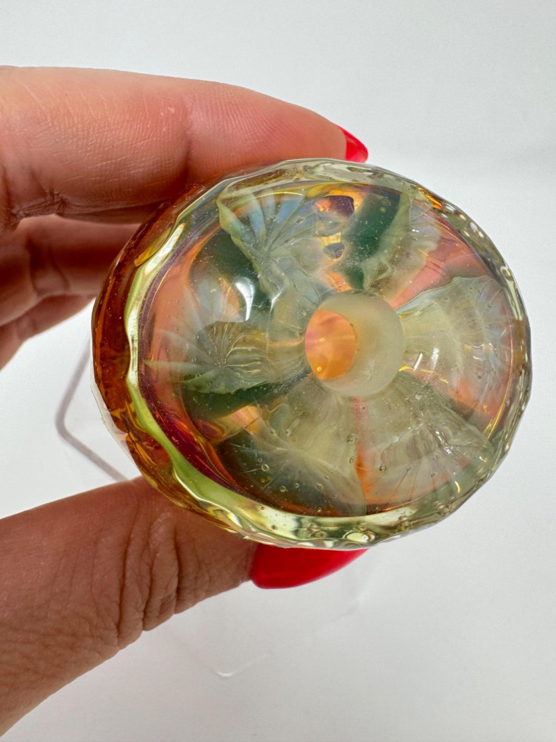 Lot # 27 - Hand-Blown Art Glass Perfume Bottle – Orange, Pink & Green Swirl