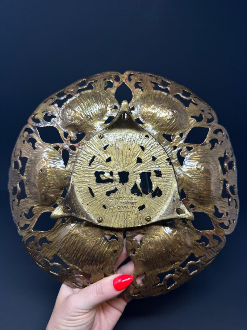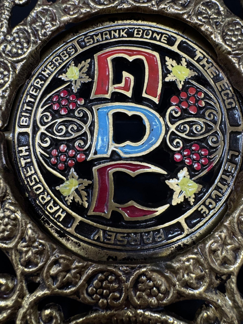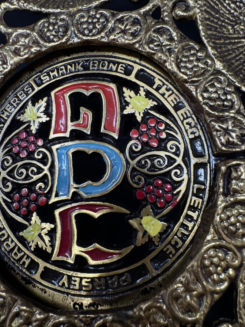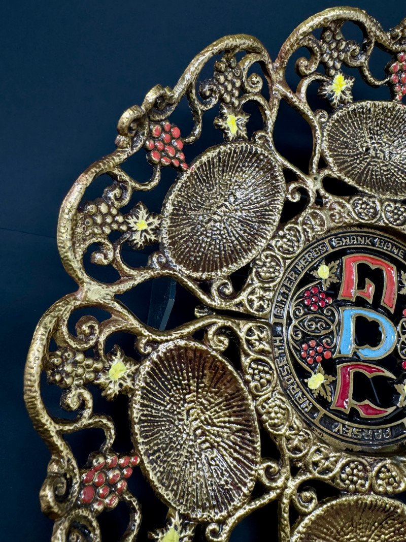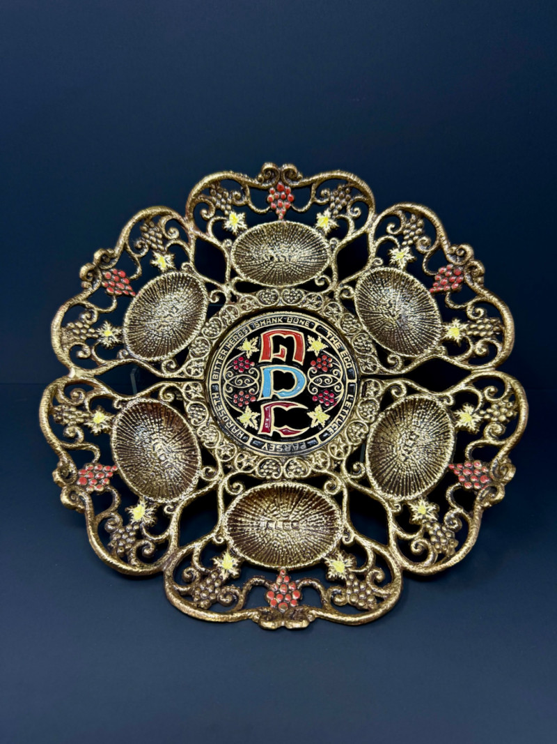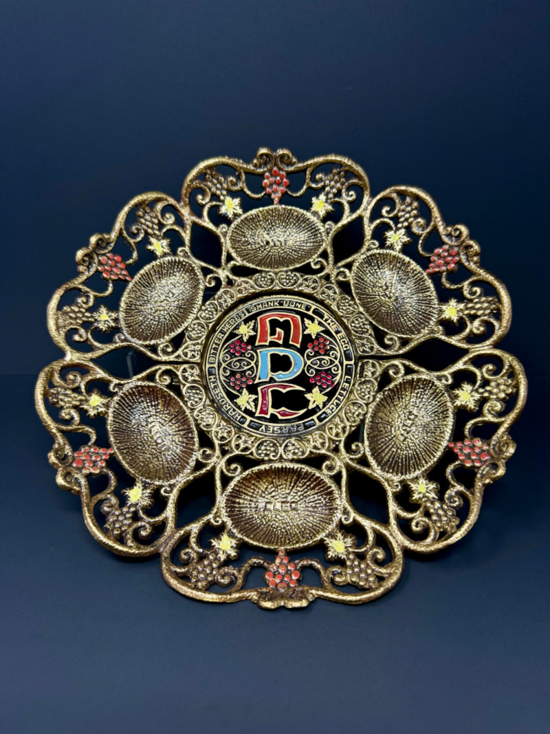 Cast Metal Decorative Hebrew Seder Plate w/ Grapevine Design.