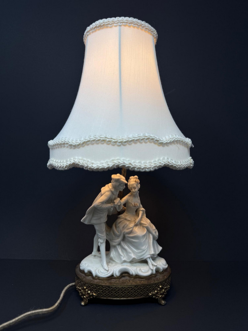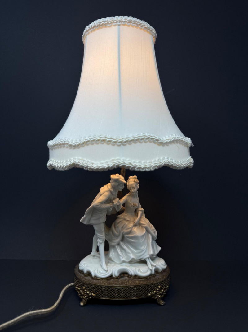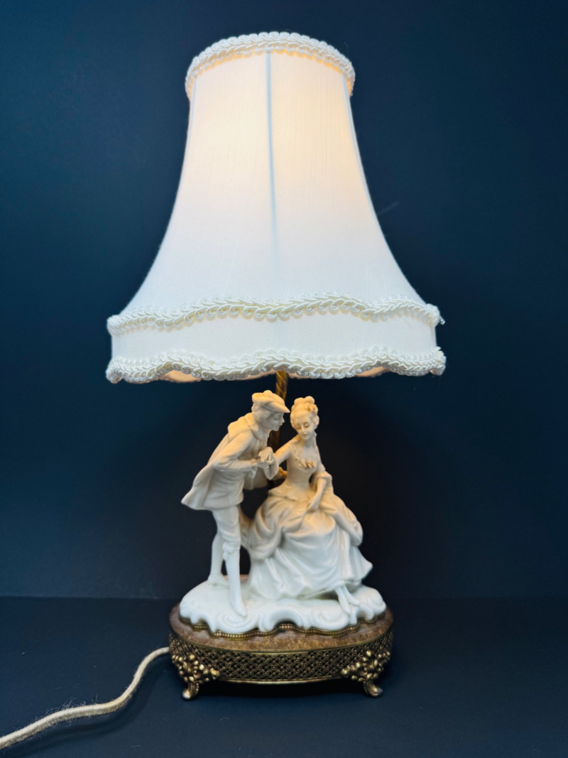 Lot # 38 - Vintage Victorian-Style Porcelain Man & Woman Figurine Table Lamp