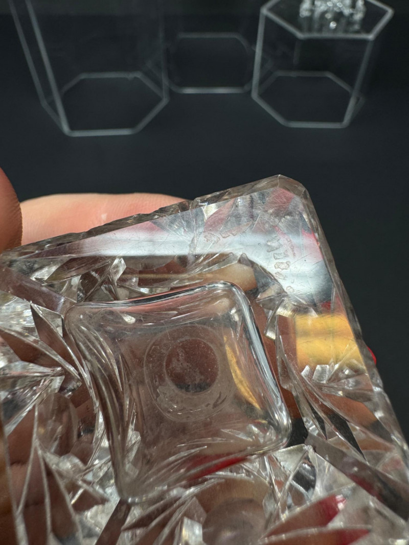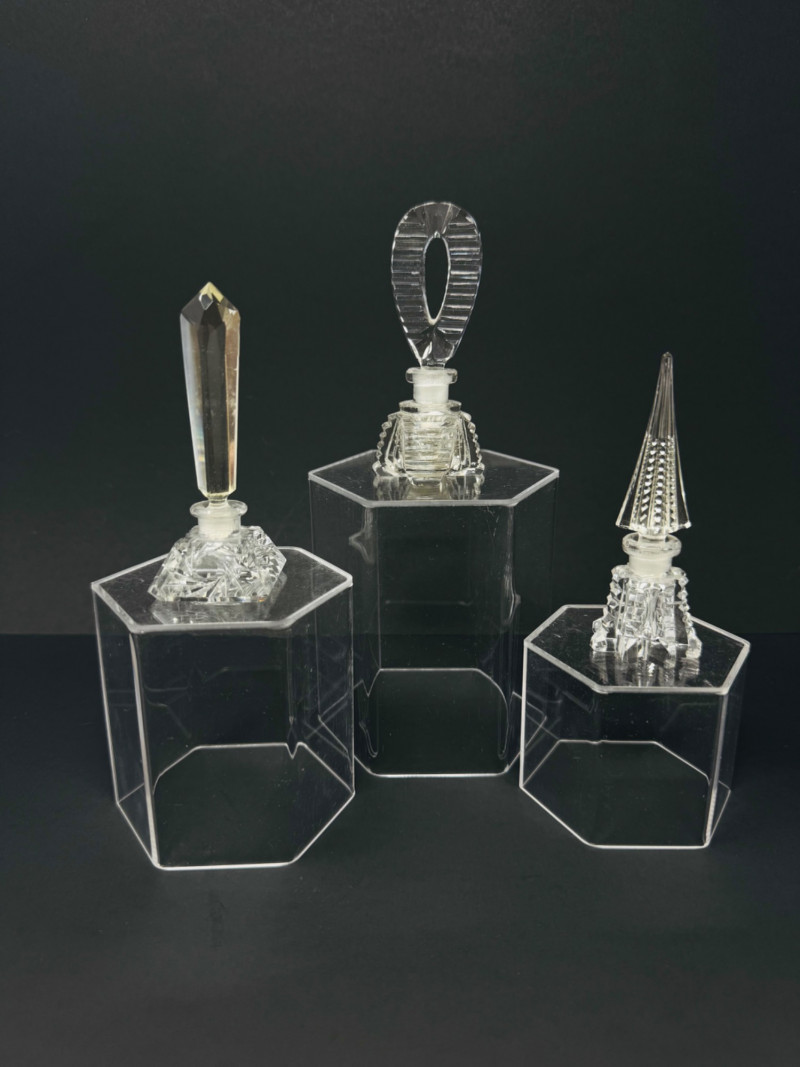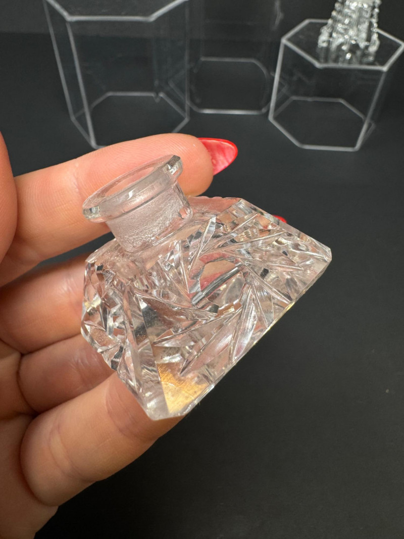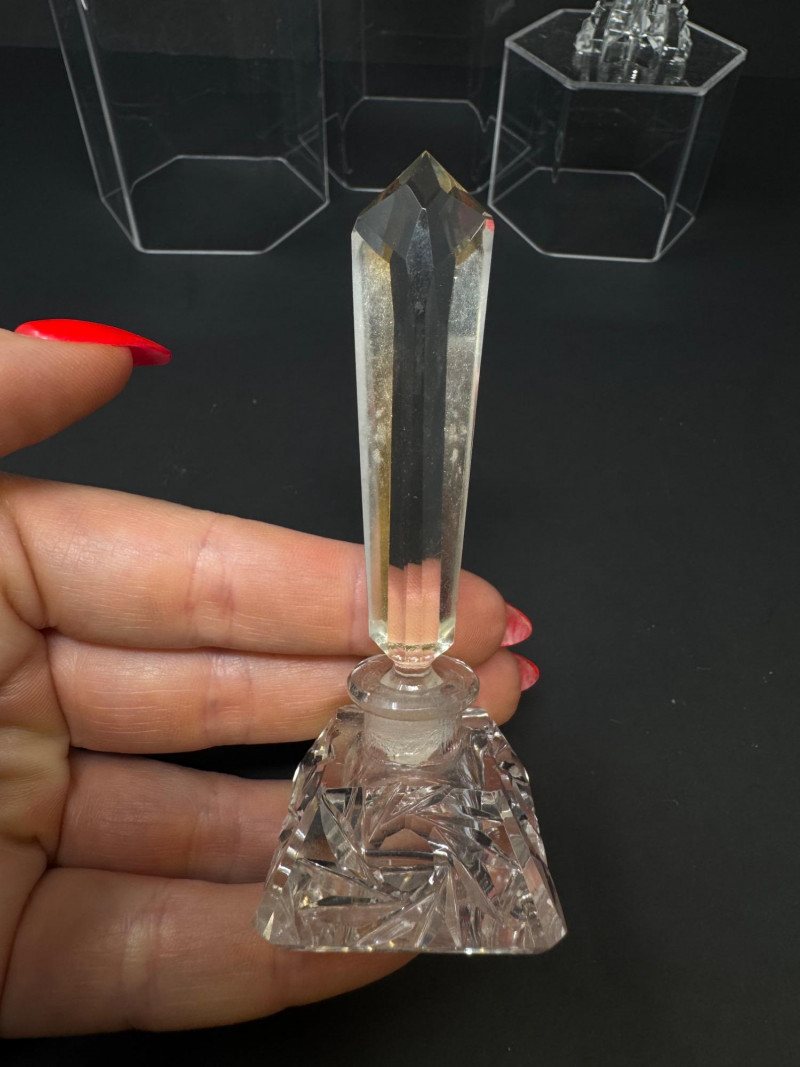 Miniature Czech Crystal Perfume Bottles, Pagoda & Faceted Designs.