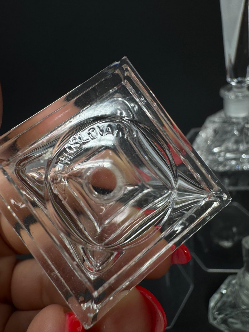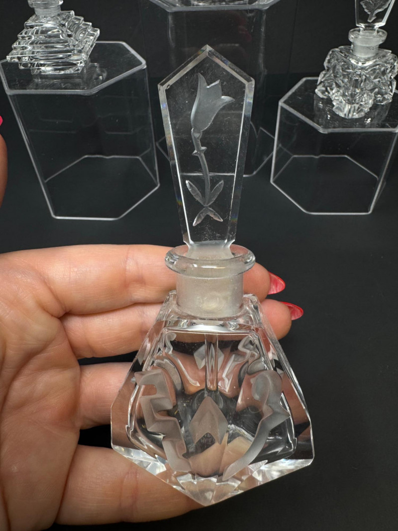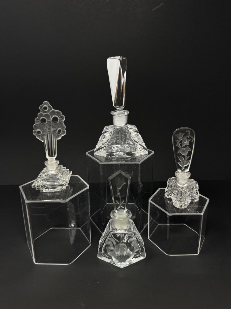 4 Vintage Cut Glass Perfume Bottles – 3 Czech, 1 Japan.