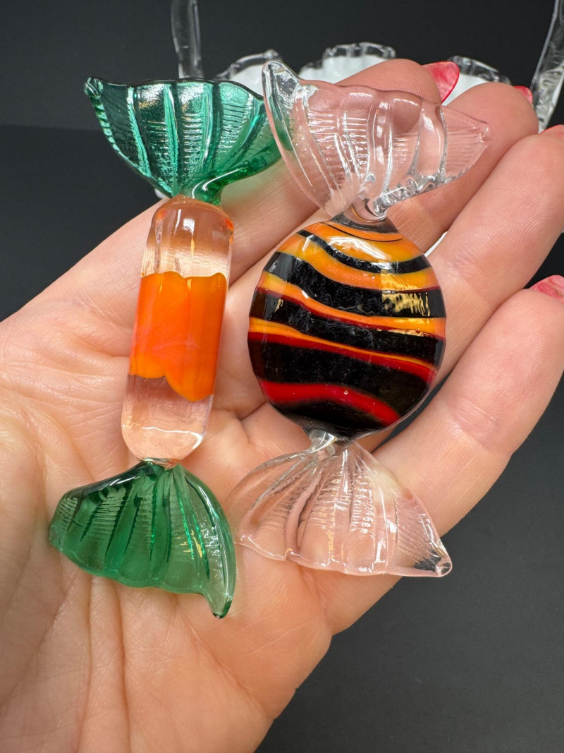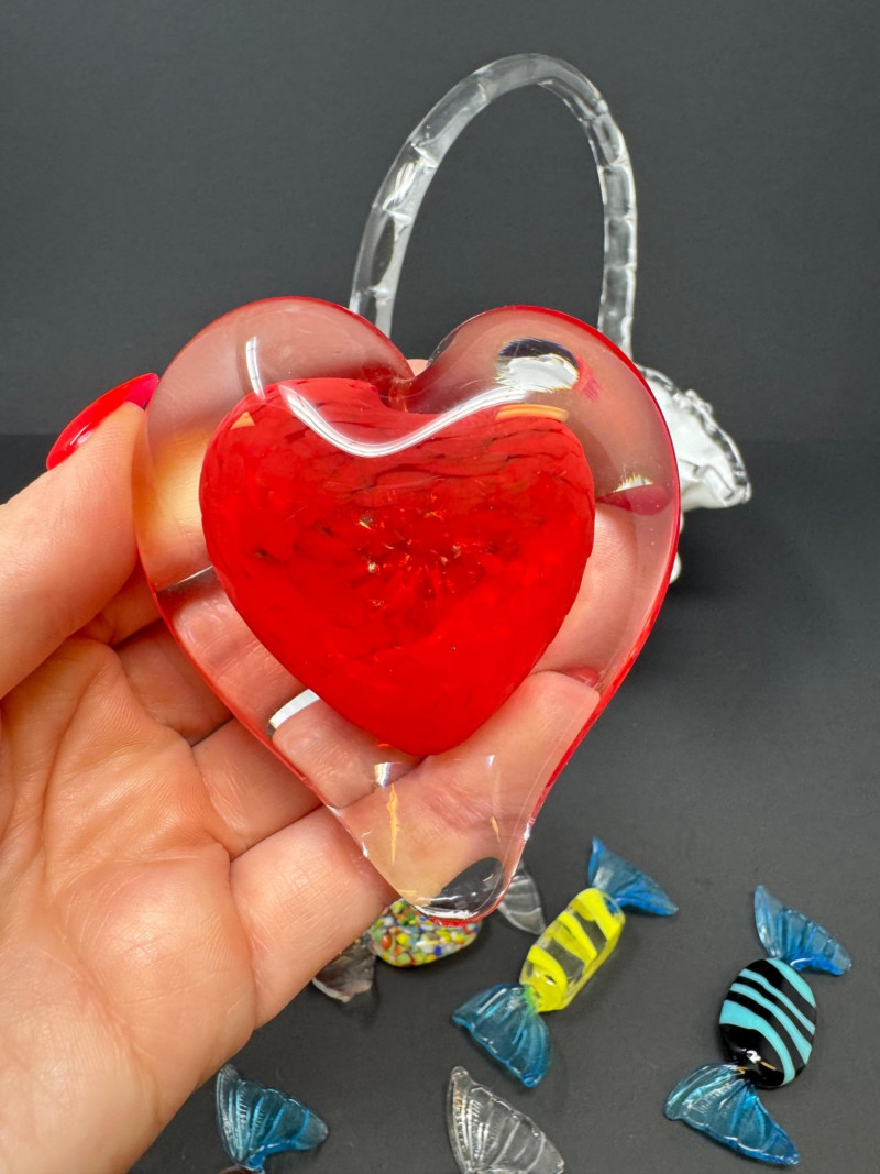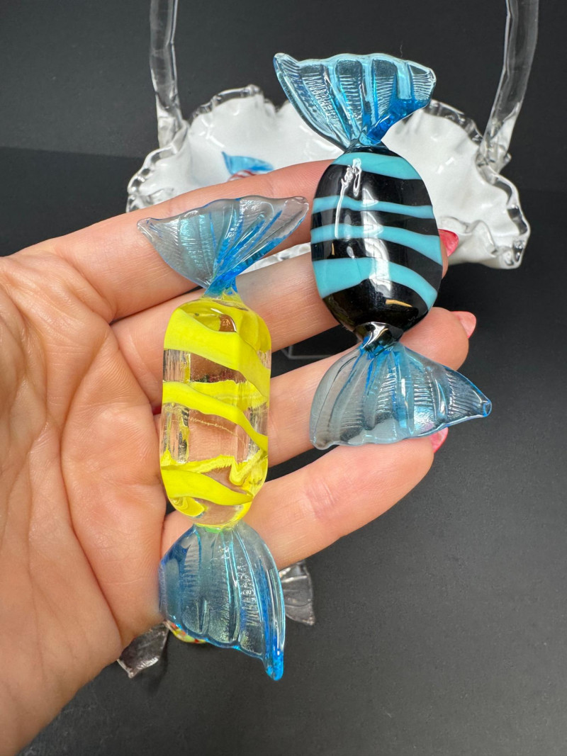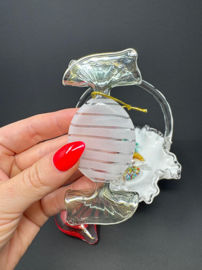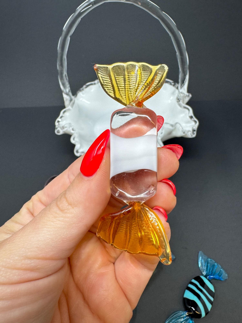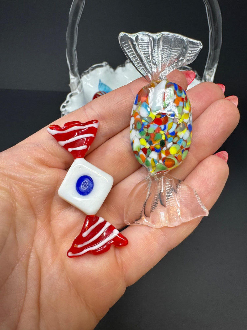 Fenton-Style Silver Crest White Milk Glass Basket + Art Glass Candies. Basket: approx. 7" H x 7" across