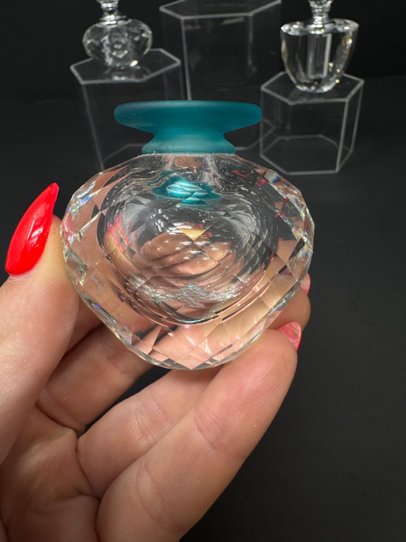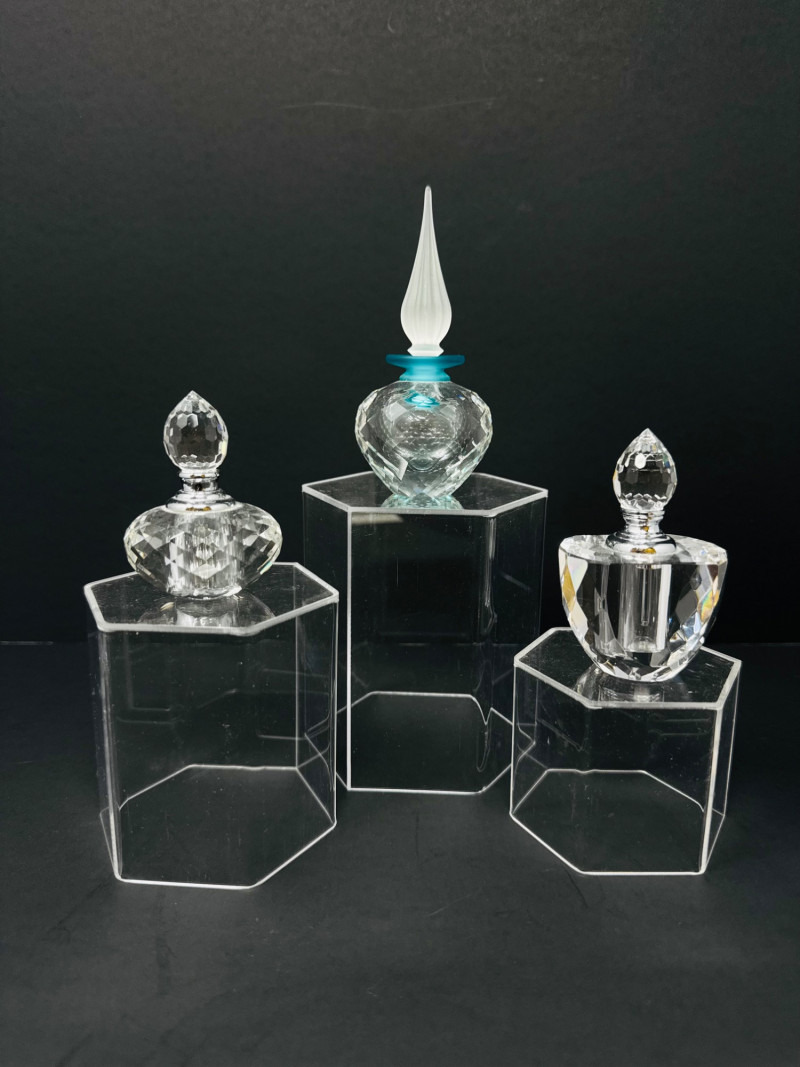 Lot # 50 - Swarovski Crystal Flacon + 2 Etched Faceted Crystal Perfume Bottles