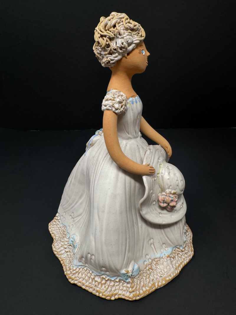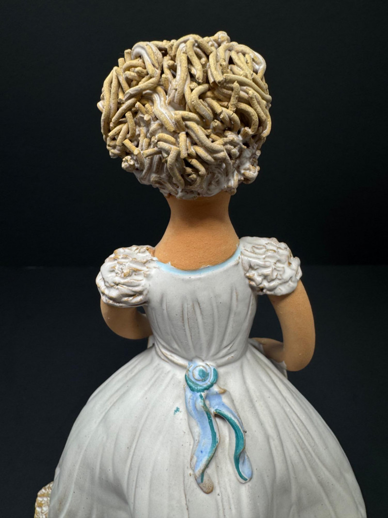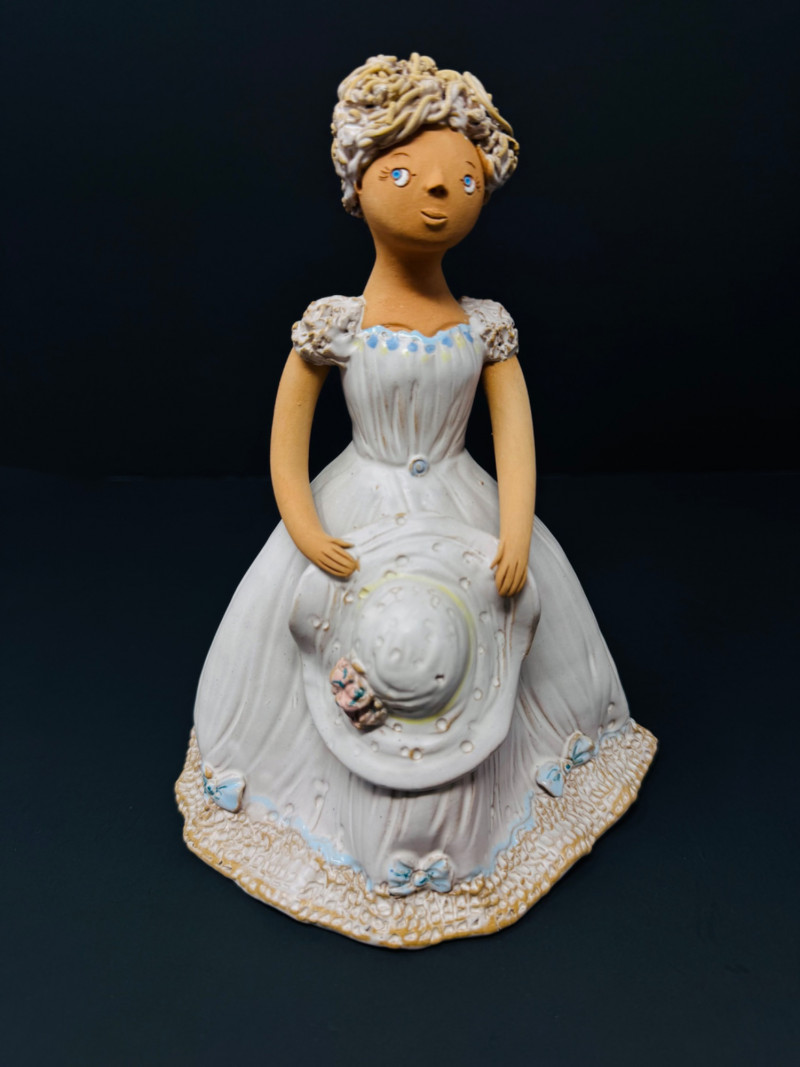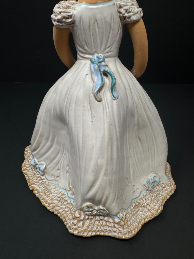 Hungarian Pottery Girl Figurine by Györbíró Enikő - Signed. 8.5” Tall