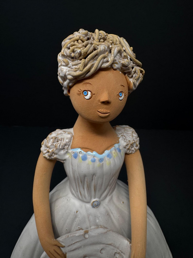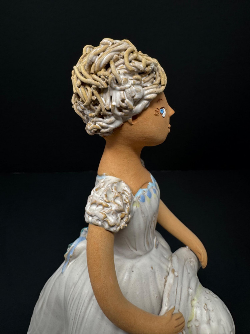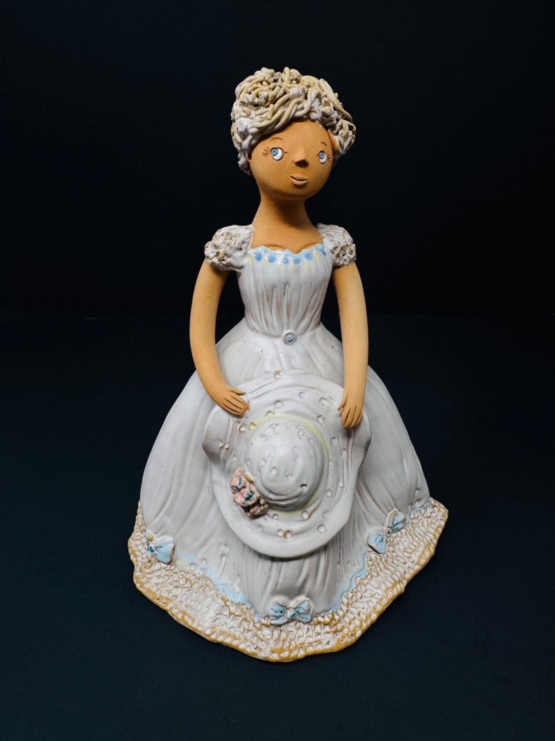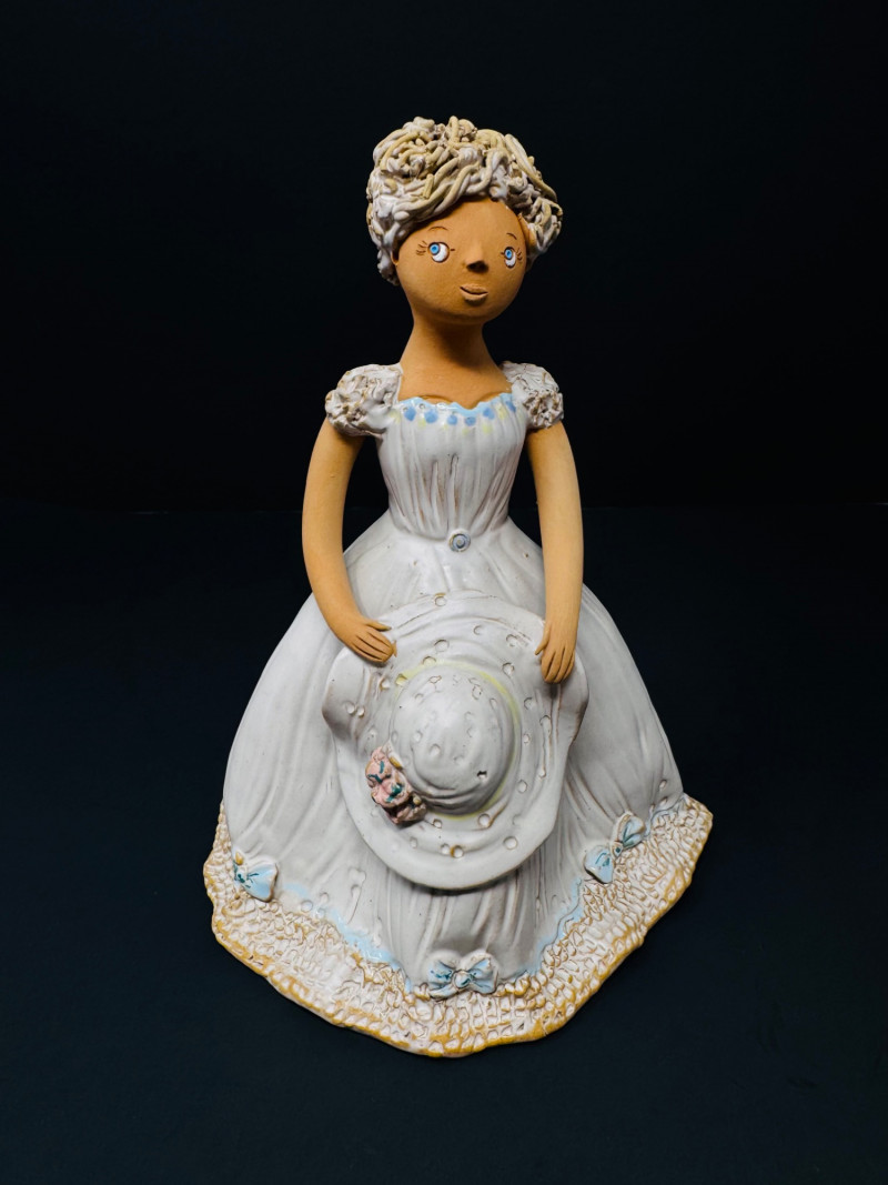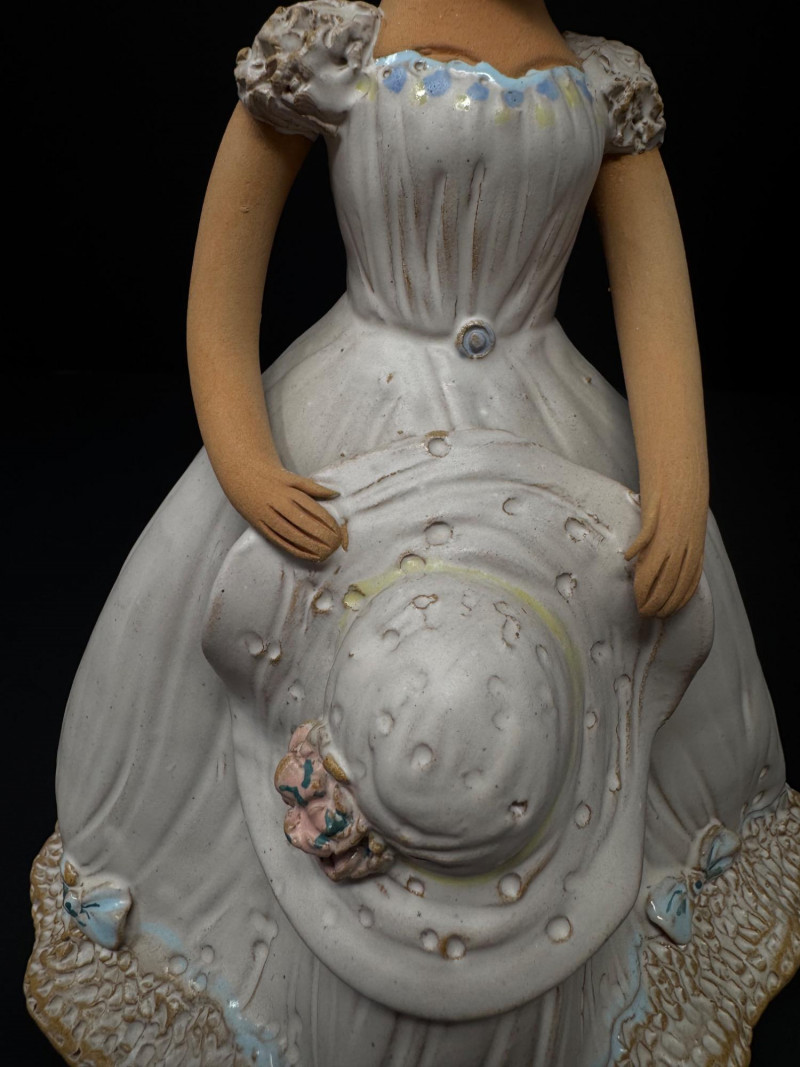 Hungarian Pottery Girl Figurine by Györbíró Enikő - Signed. 8.5” Tall