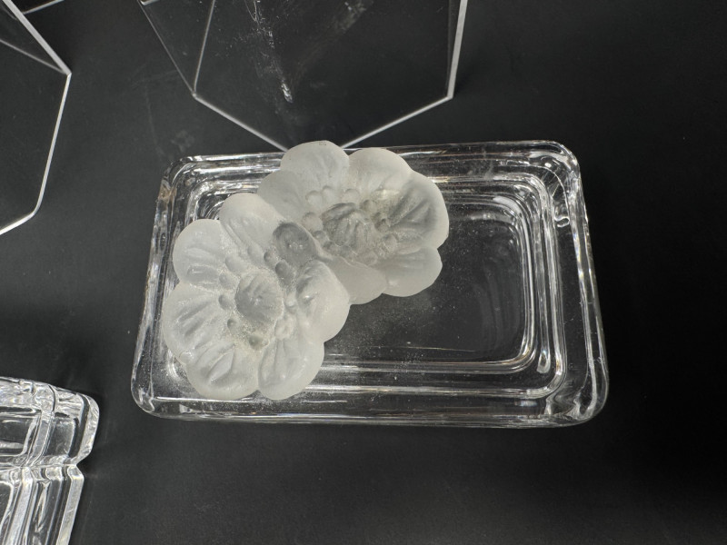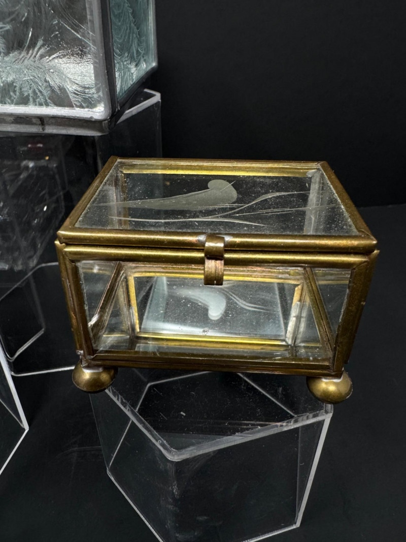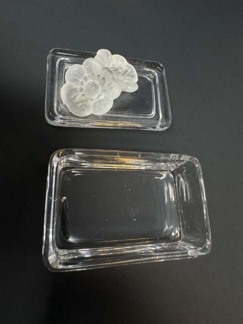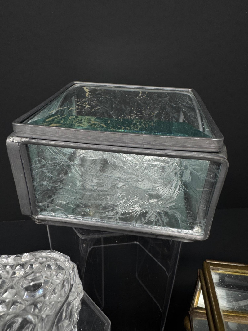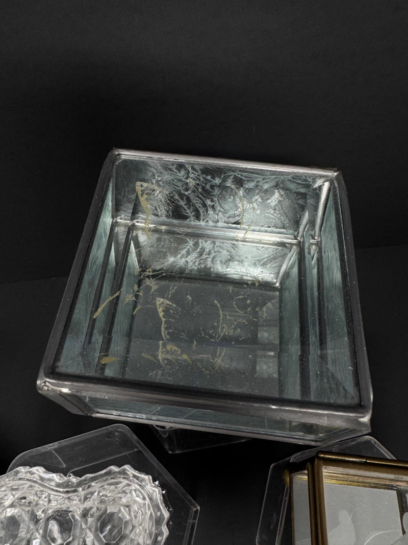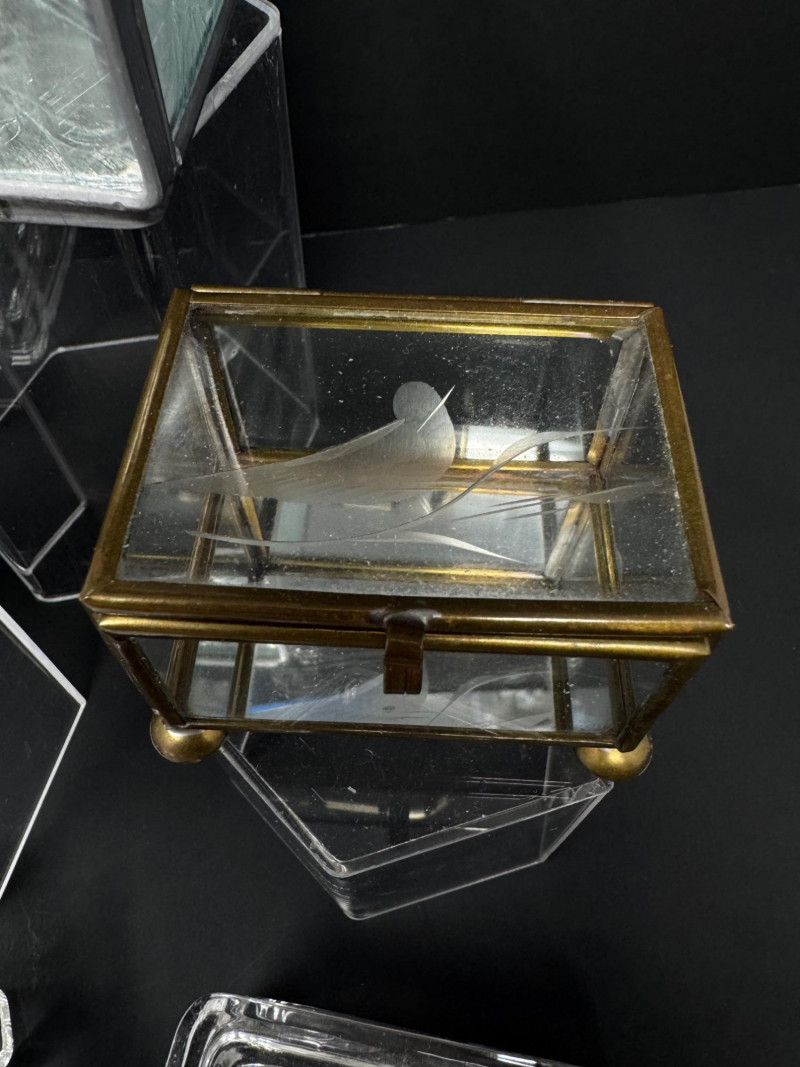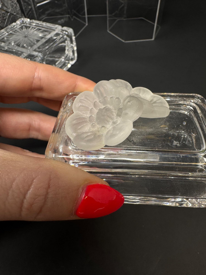Cut Glass Bell & 5 Glass/Crystal Trinket Boxes – Frosted & Clear. 2.5-3.5”
