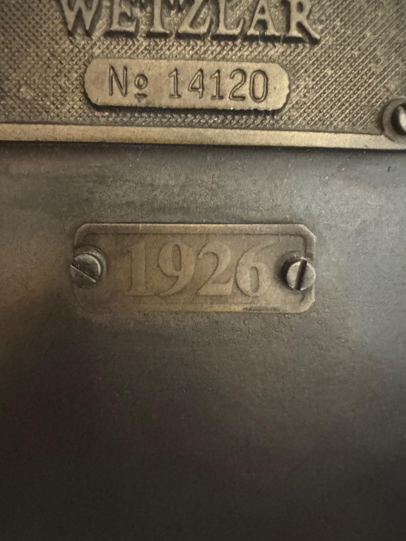 1926 Schenck & Bruder Wetzlar Bar Cabinet – Heavy Metal. Bidding on this lot is an agreement that: (1.) You will have at least 2 capable, able bodied persons to lift and load at a minimum. (2.) You will bring a hand truck and/or any other tools needed to remove this item. If these steps are not followed your item will be forfeit and no refund given.