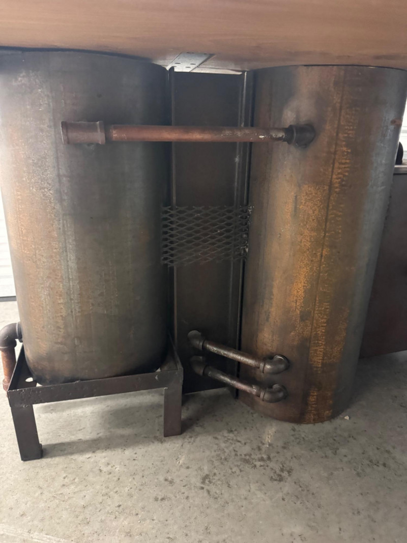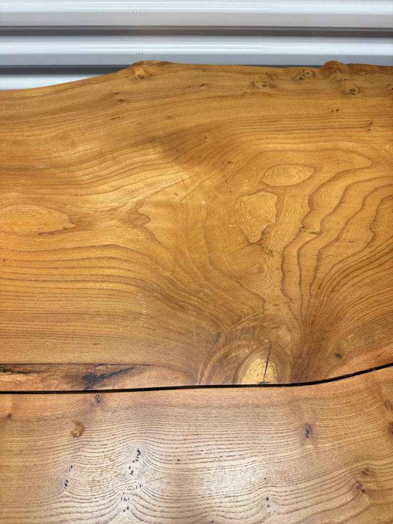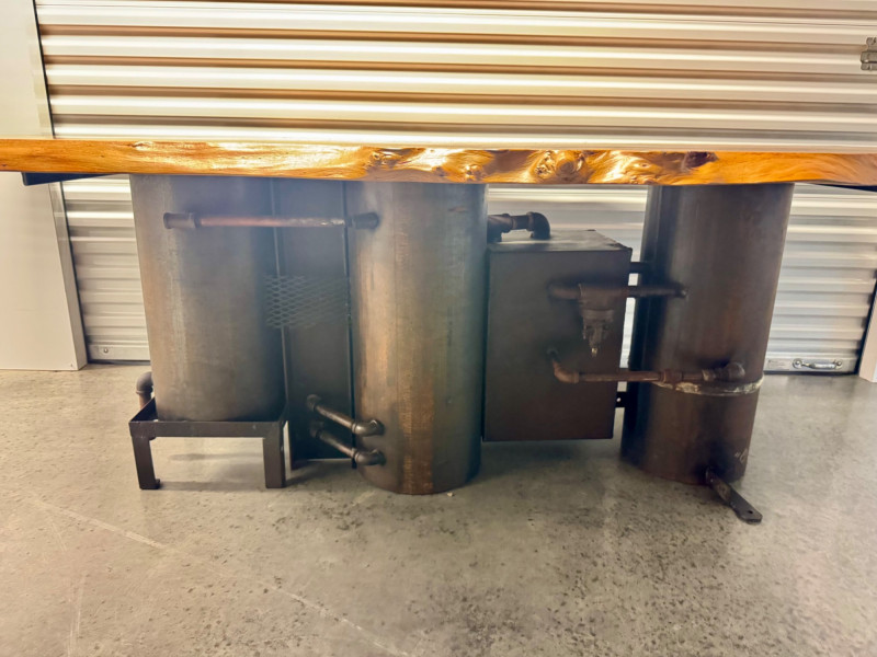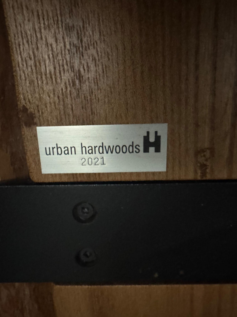 Urban Hardwoods 2021 Live Edge Dining Table w/ Industrial Steel Base. Bidding on this lot is an agreement that: (1.) You will have at least 2 capable, able bodied persons to lift and load at a minimum. (2.) You will bring a hand truck and/or any other tools needed to remove this item. If these steps are not followed your item will be forfeit and no refund given.