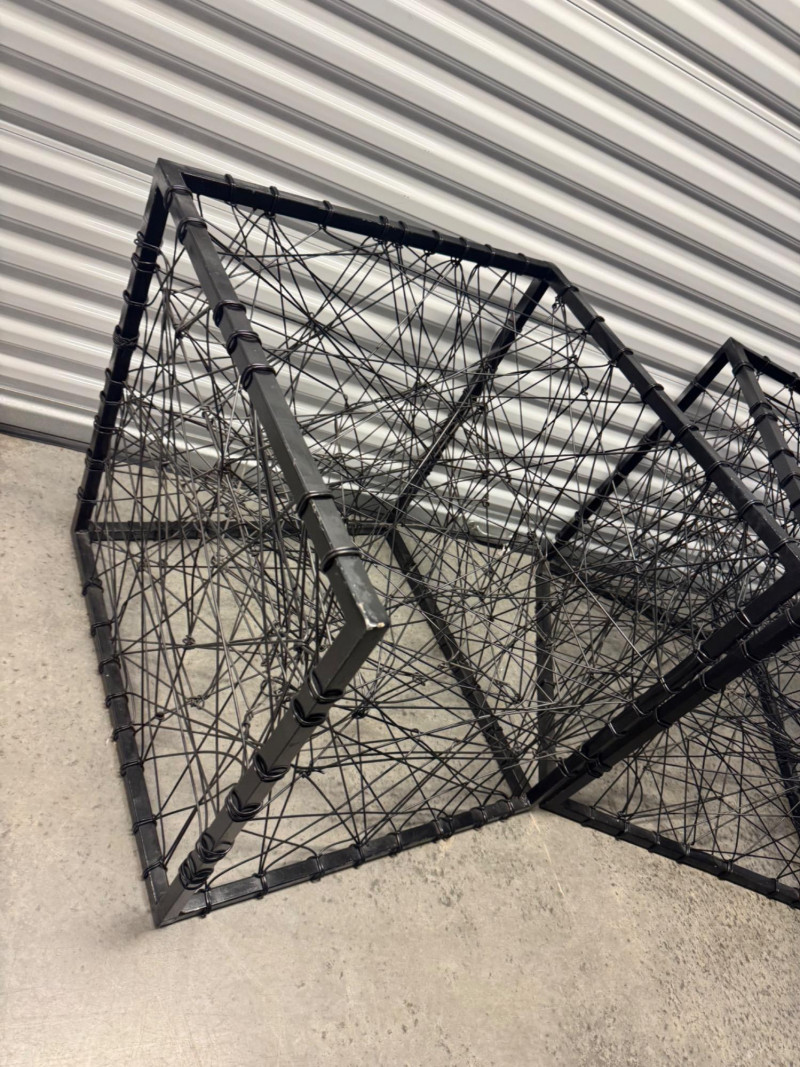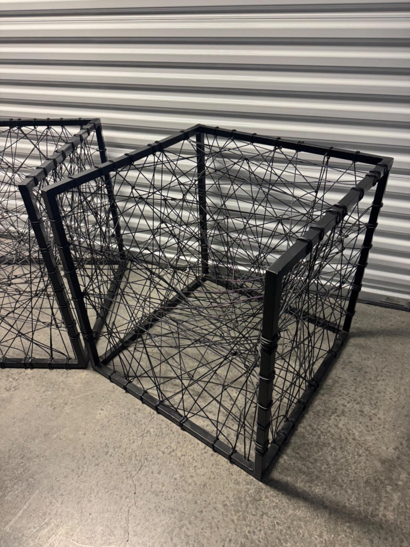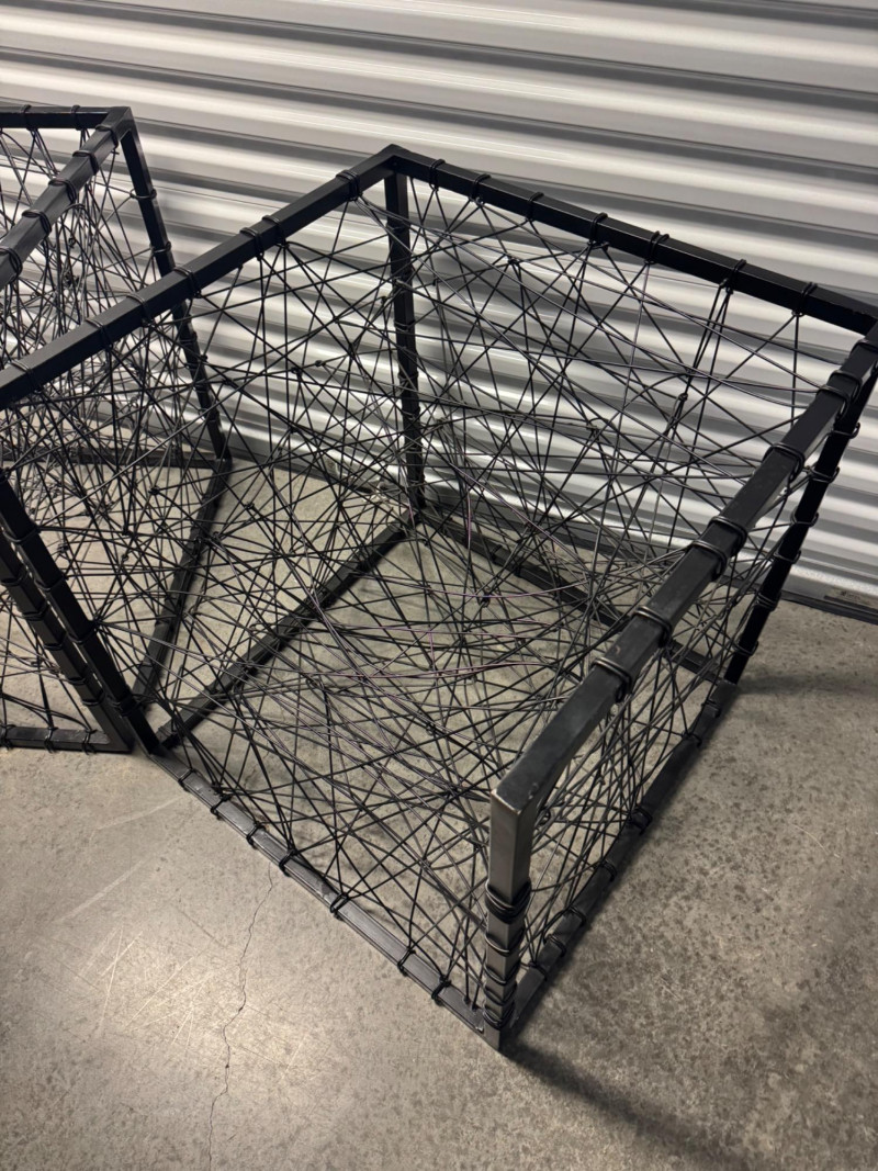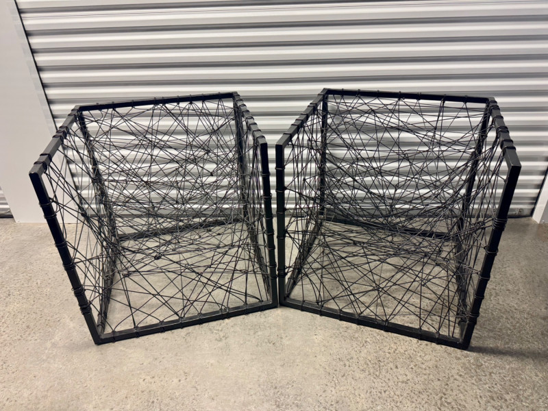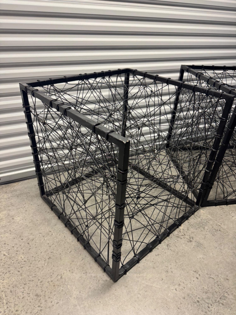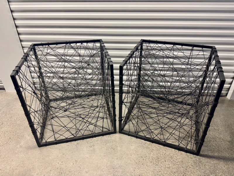 Pair of Lounge Chairs – Likely Phillips Collection “Entropy” Design. Strong resemblance to the “Entropy” Chair by Phillips Collection. Retail value of authentic examples approx. $2,000 each. Dimensions: 29.5″ deep × 30″ tall × 29″ wide