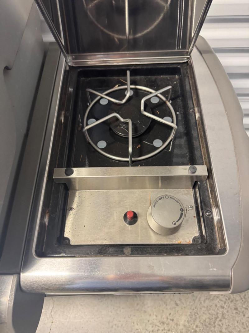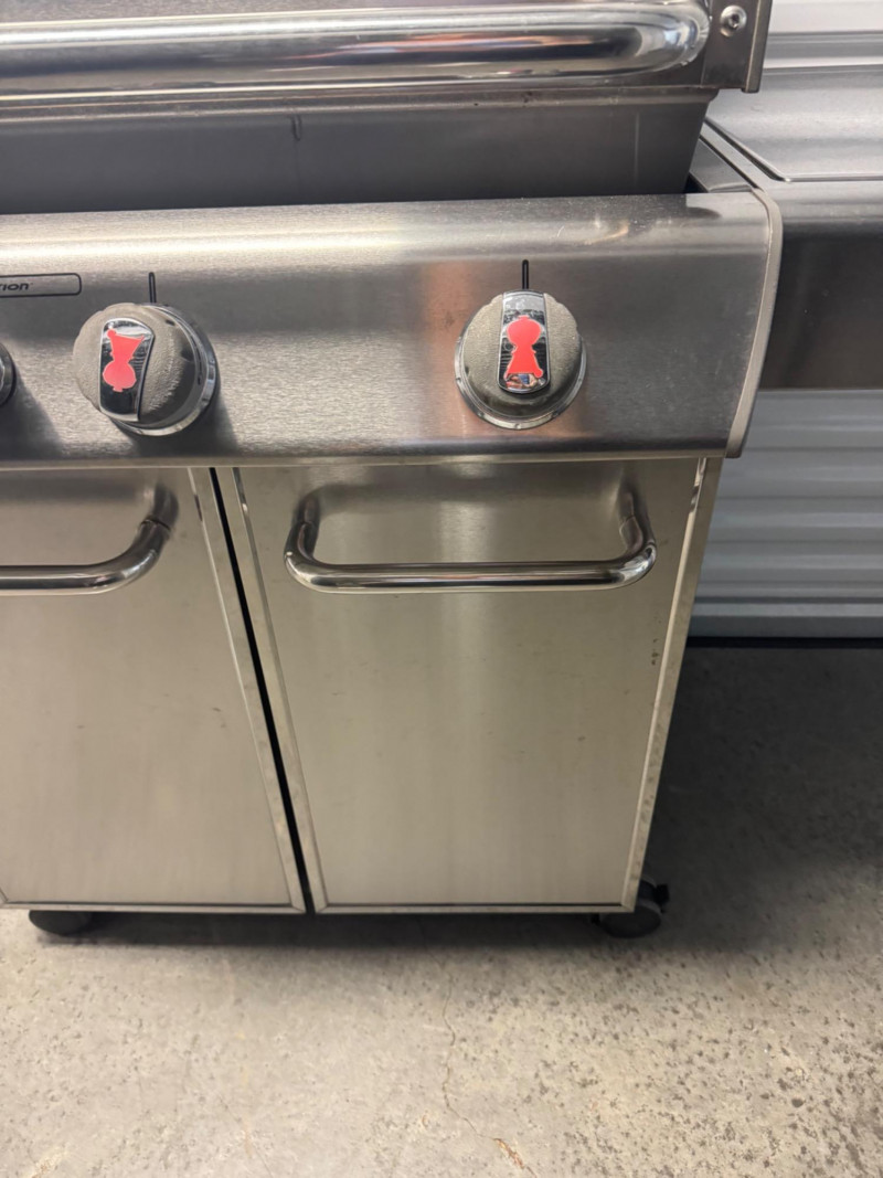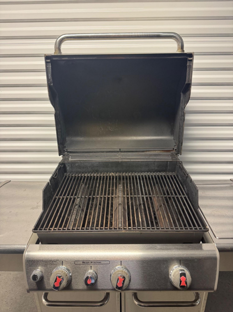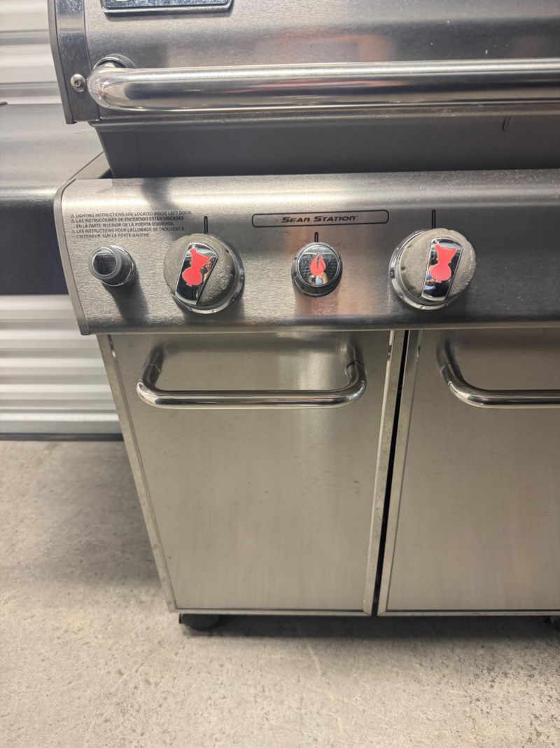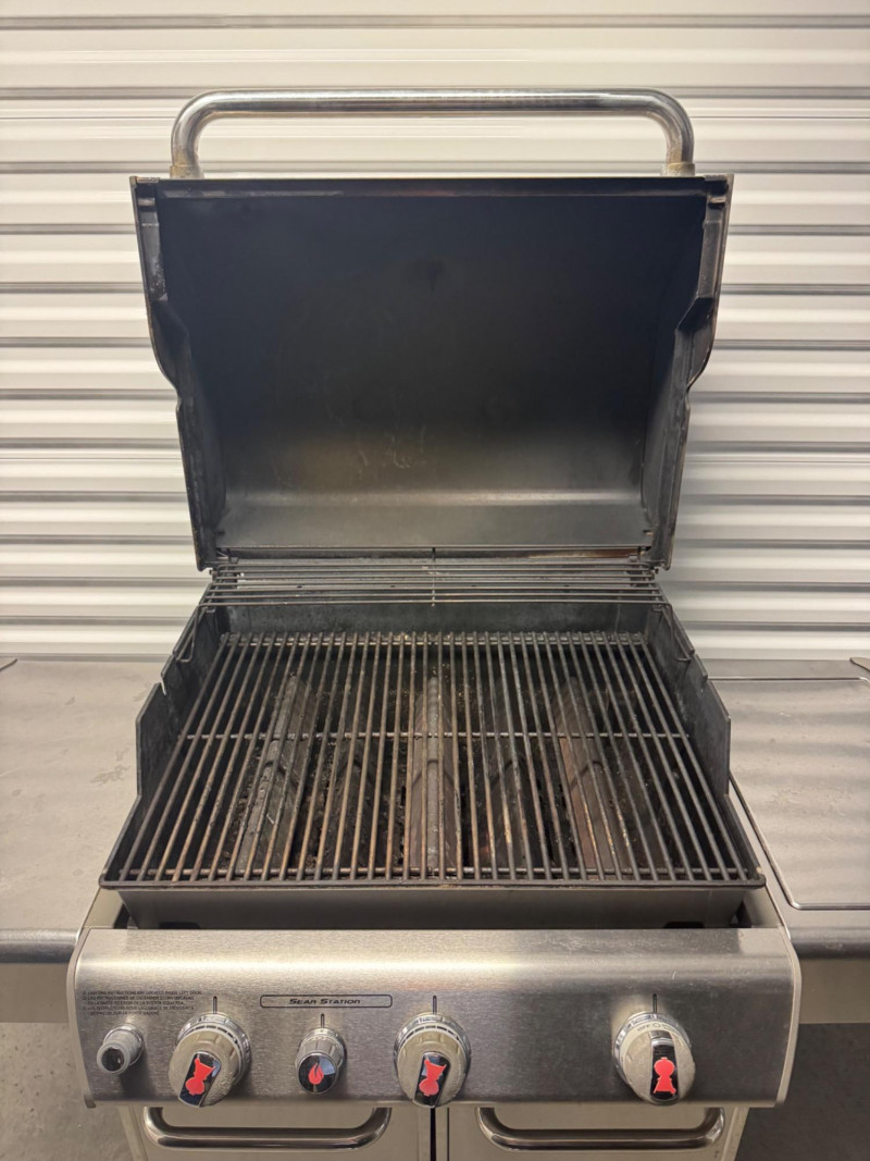 Weber Genesis Stainless Steel 4-Burner Gas Grill w/ Side Burner. This grill requires natural gas hookup. Dimensions: 56” W x 48” H x 21” D