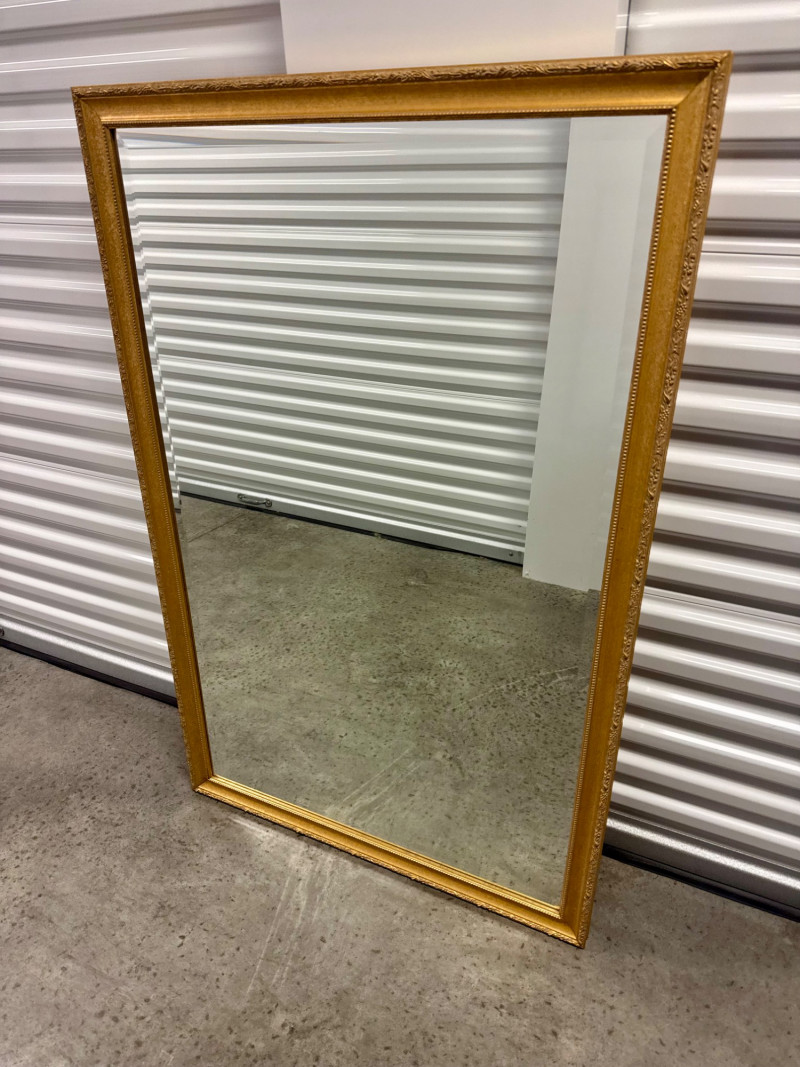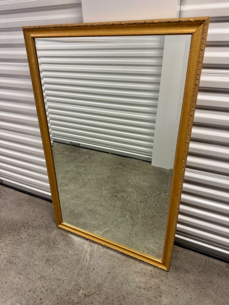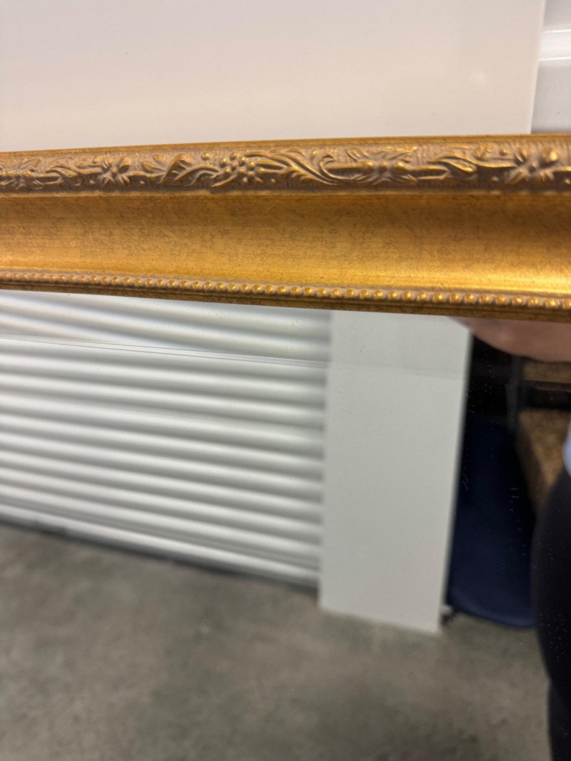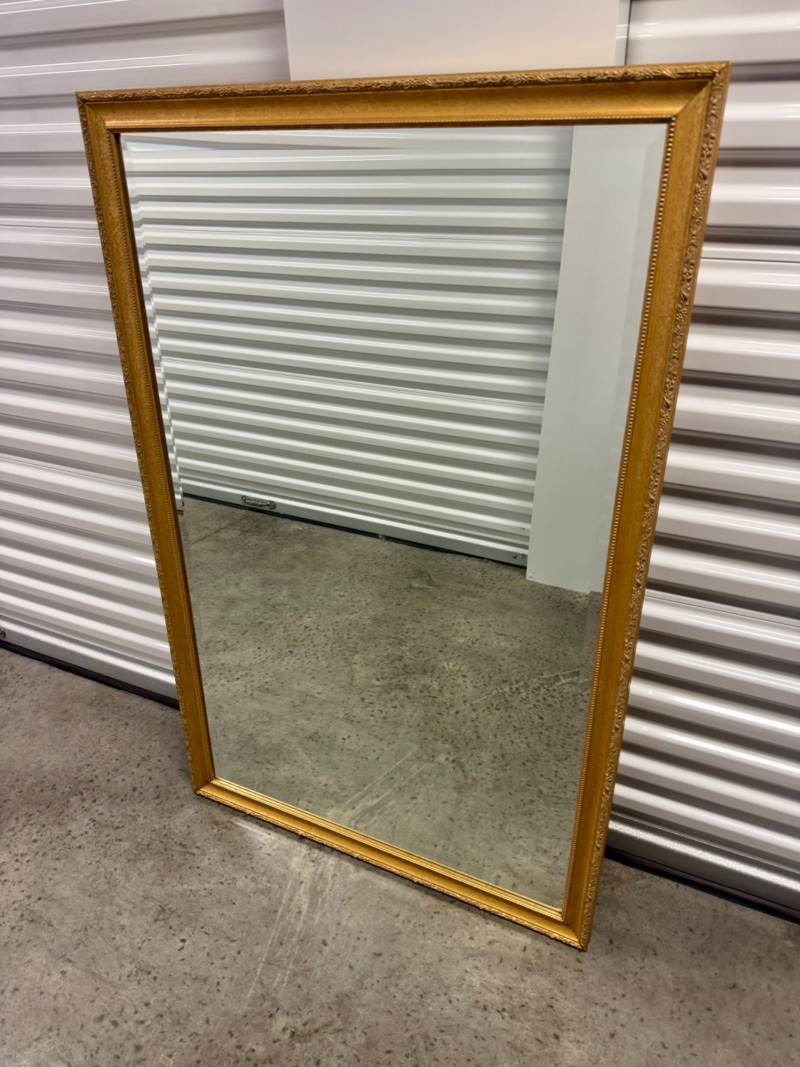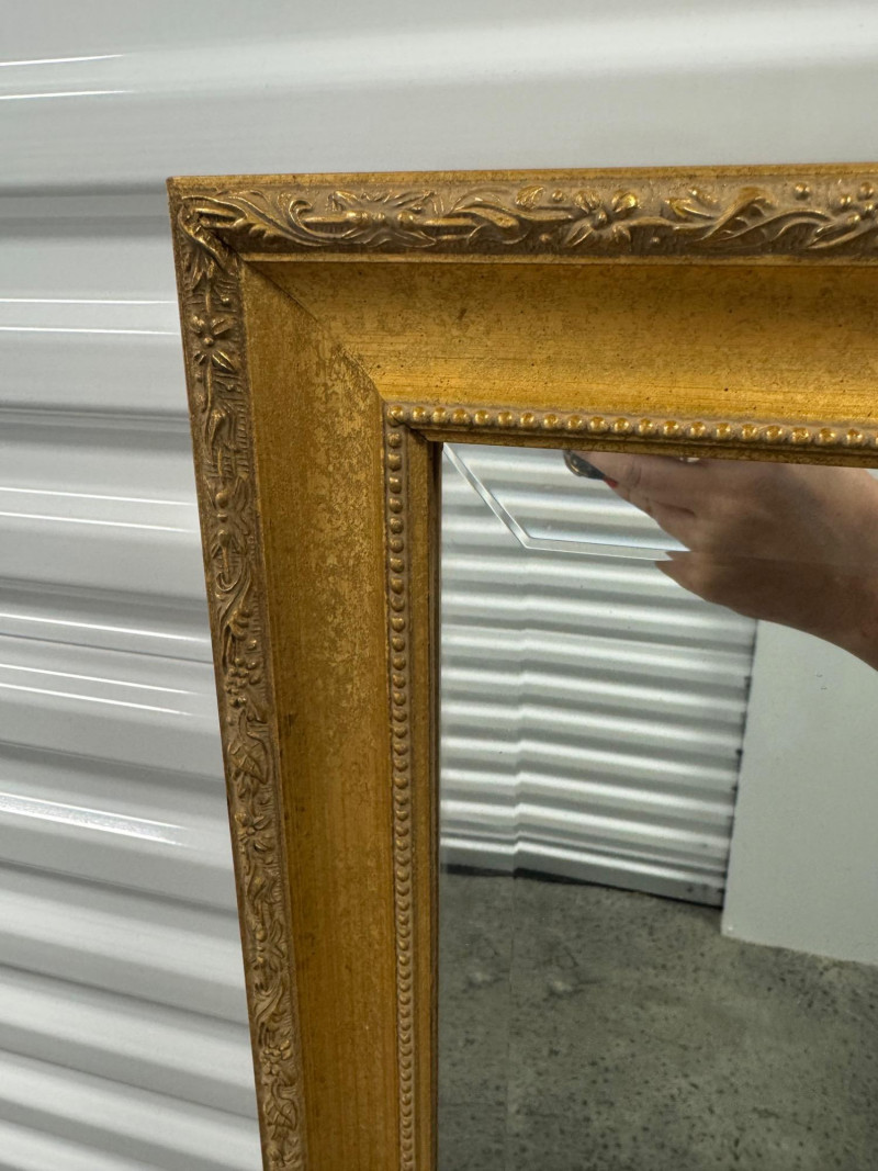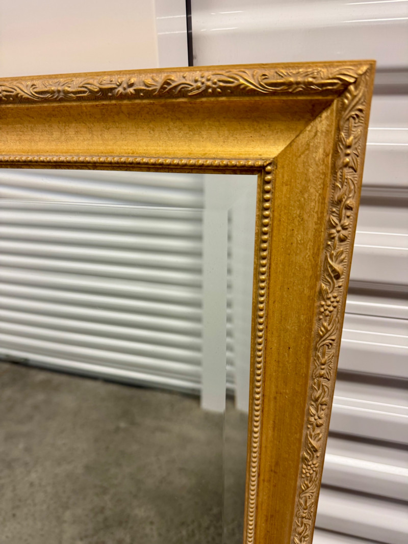 Large Rectangular Gold Wall Mirror – Custom Framed. Dimensions: 34" W x 52" H