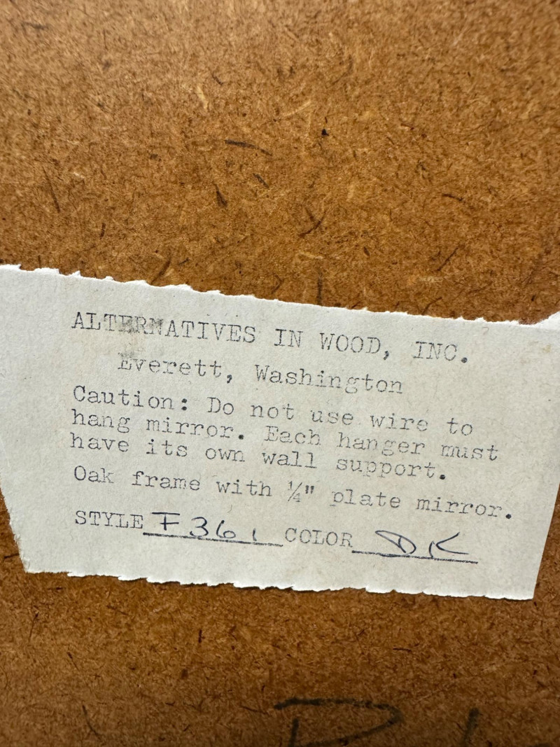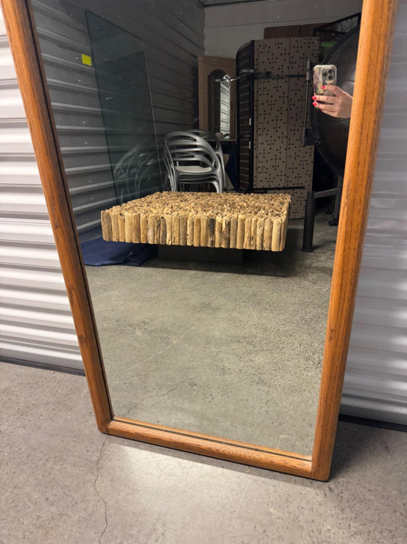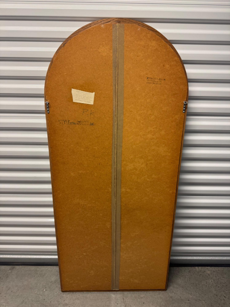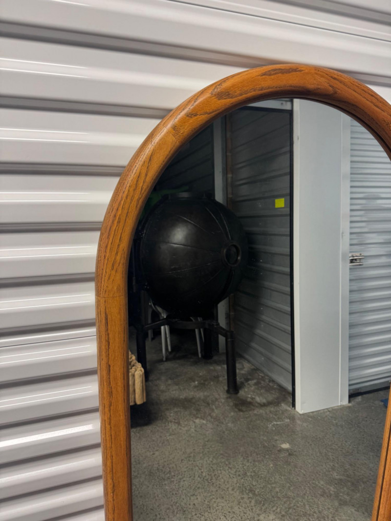 Tall Arched Wall Mirror W/ Solid Oak Frame. Dimensions: 61.5” tall x 27” wide