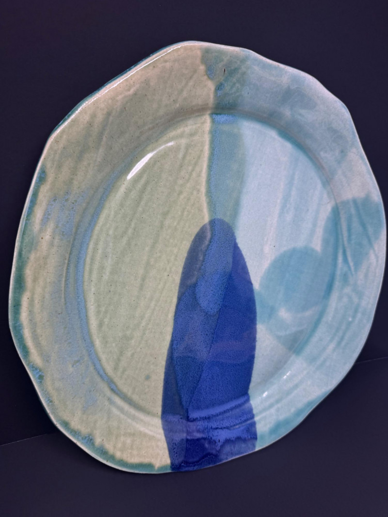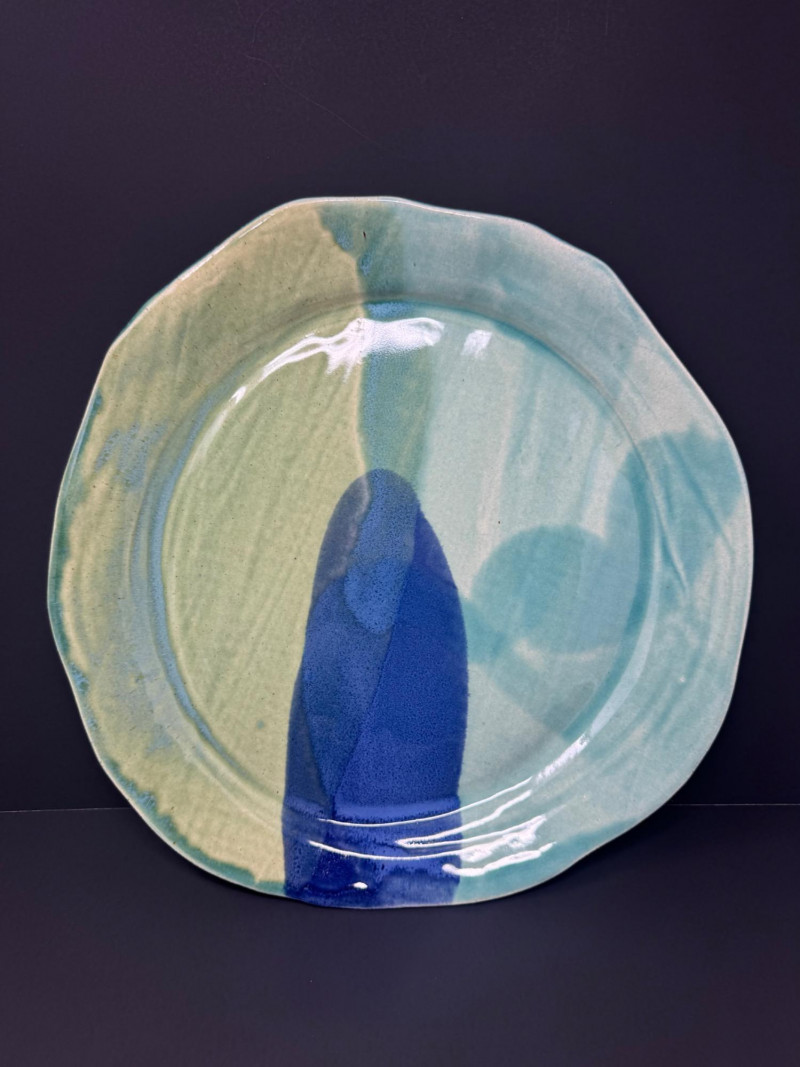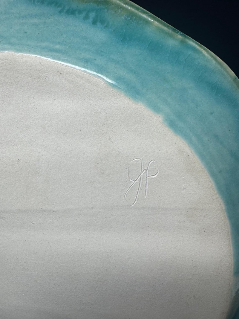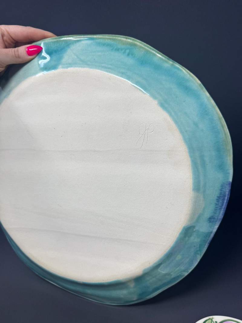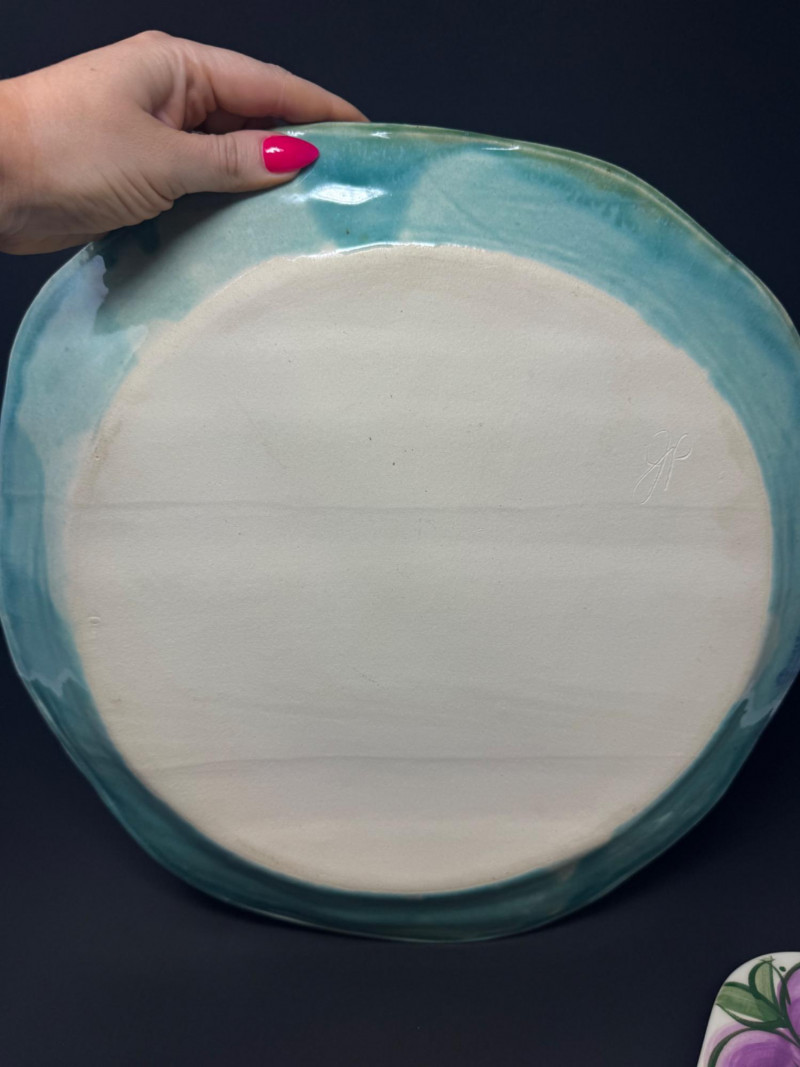 Lot # 70 - Signed Teal Pottery Plate & Renee at Play Floral Plate Lot