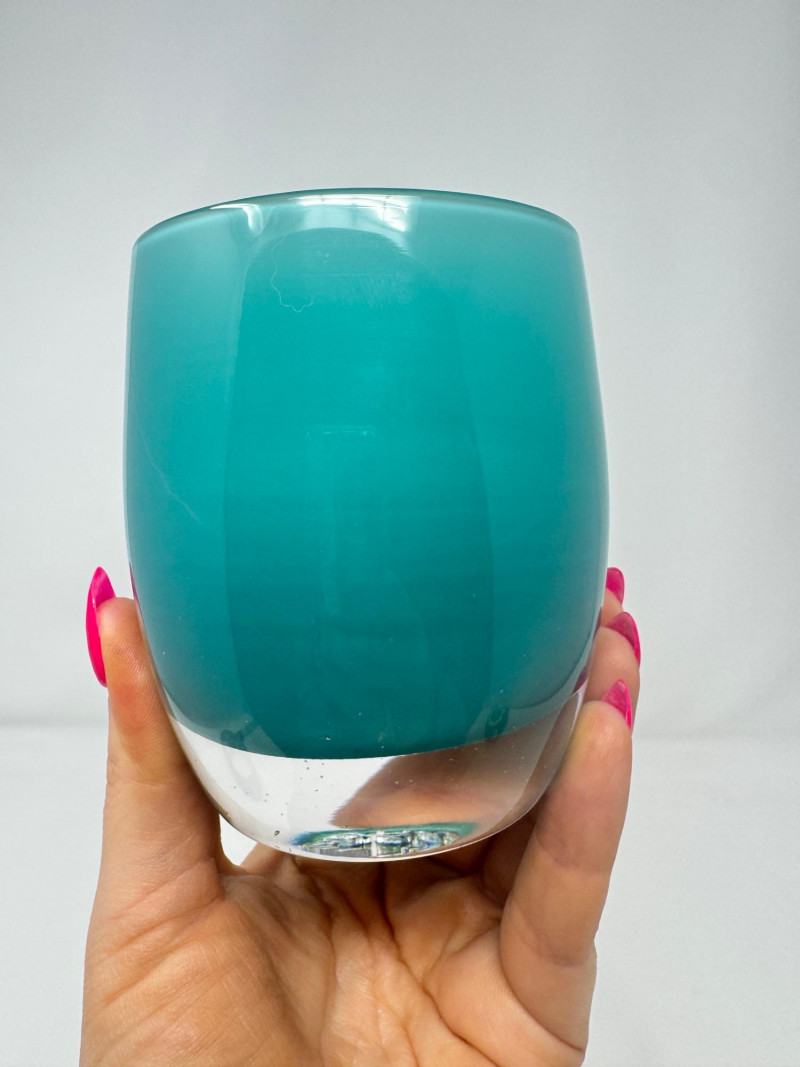 GlassyBaby Aqua Verde Votive – 4" Retired Pre-Triskelion.
